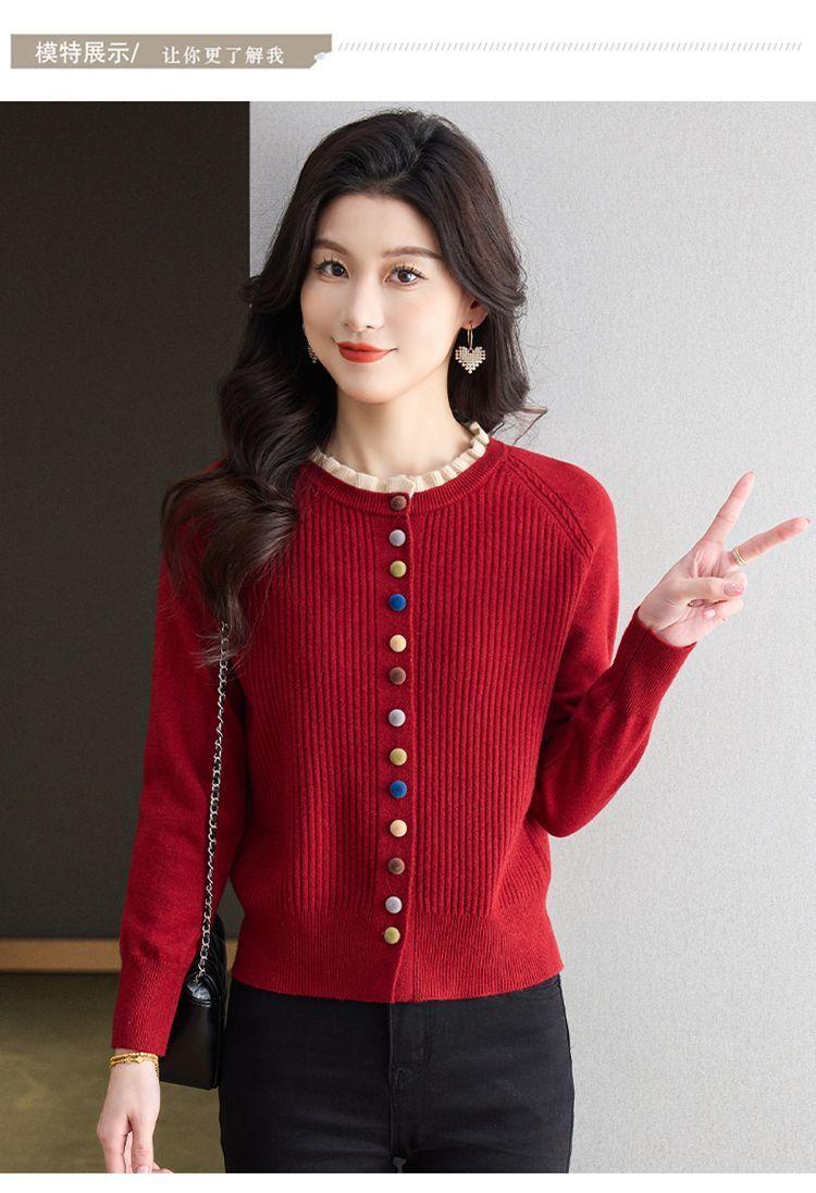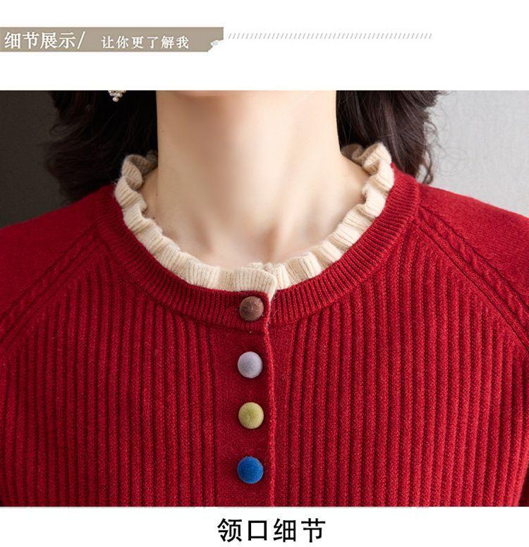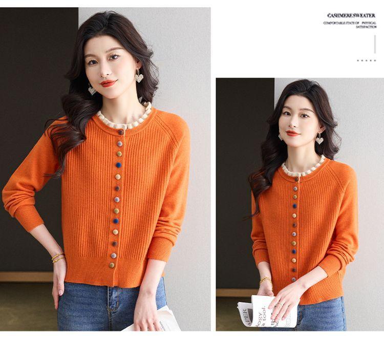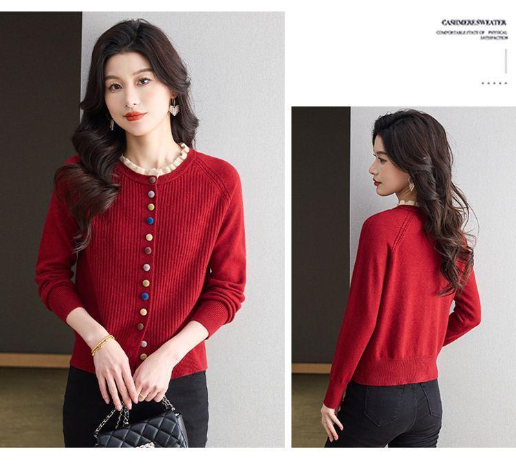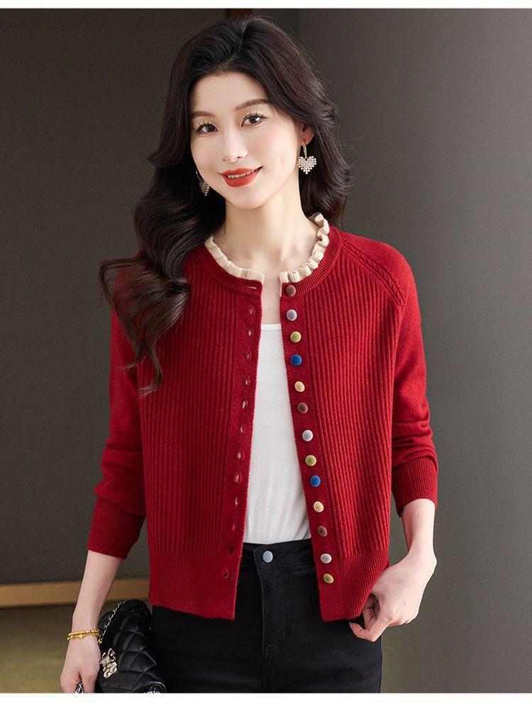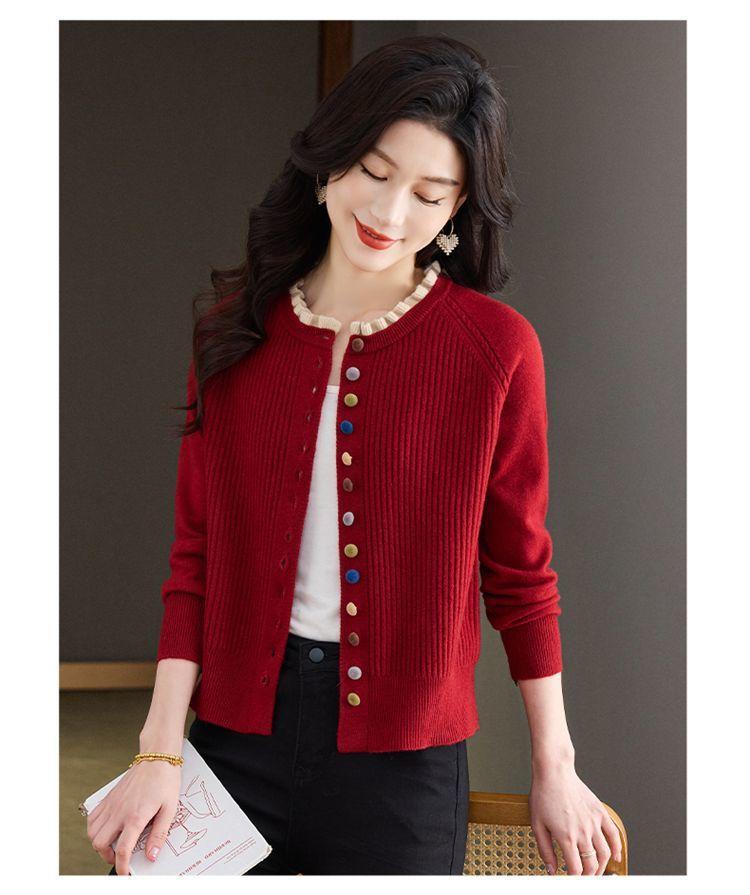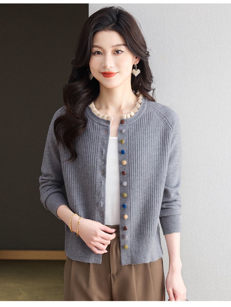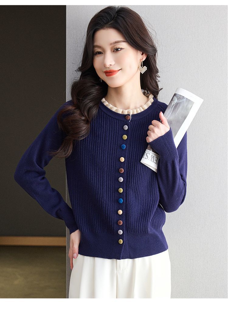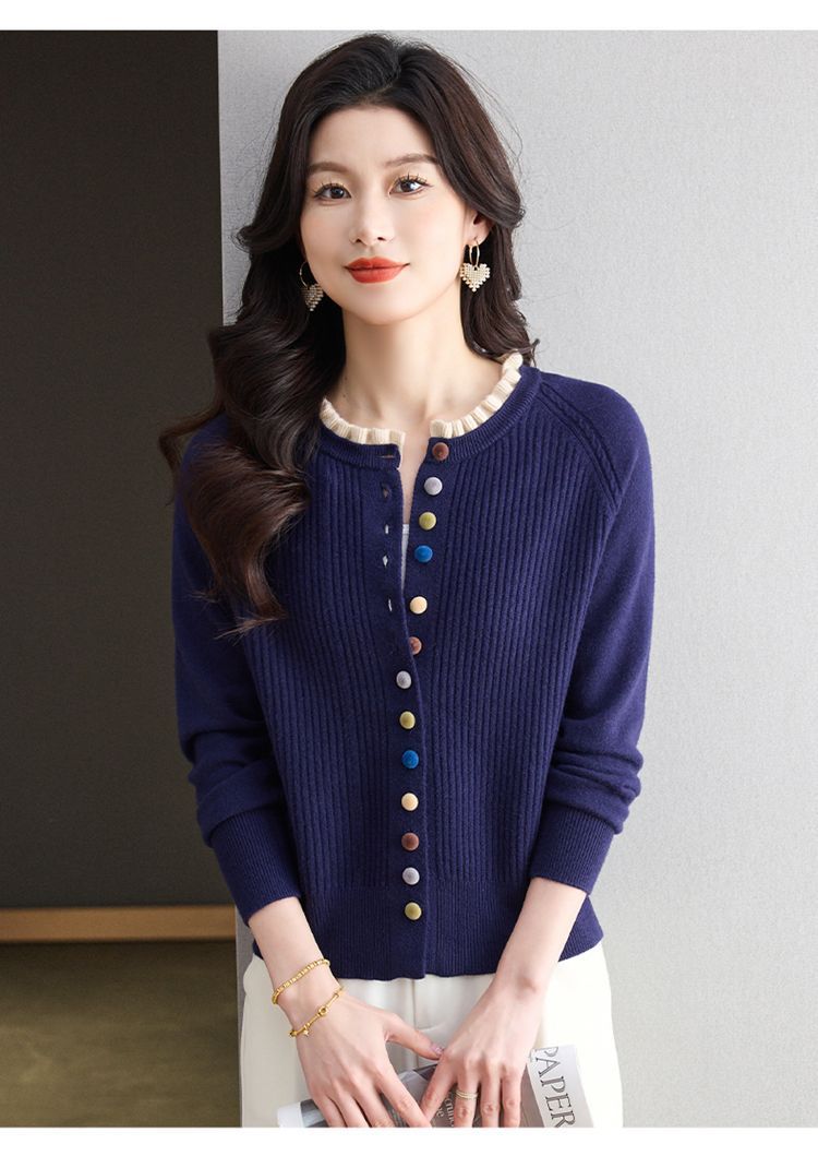 Cárdigan Suéter Abrigo Nuevo Estilo Otoño/Invierno 2025 Botones Coloridos Moda Holgado Adelgazante Cuello Redondo Conjunto Joven Madre Mujer