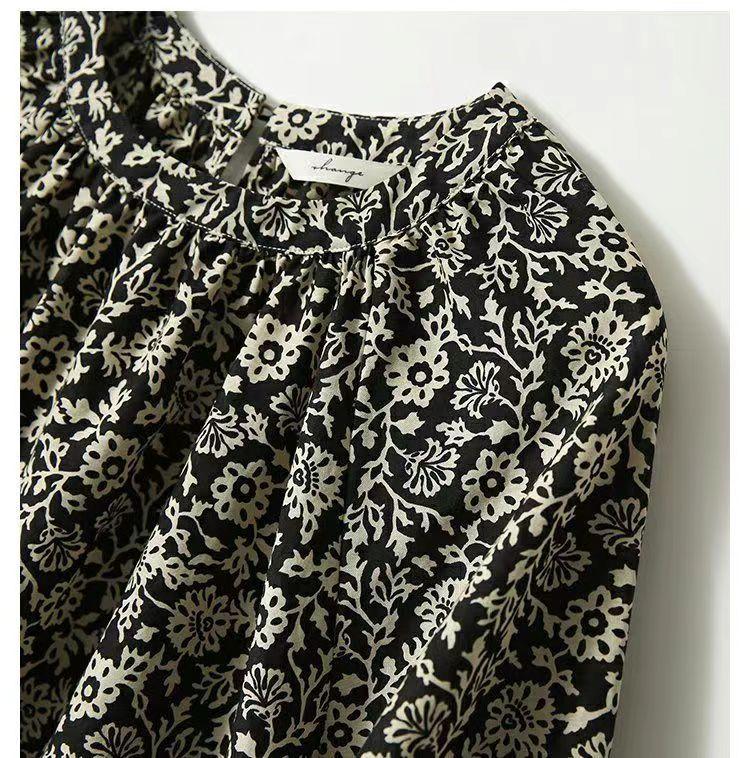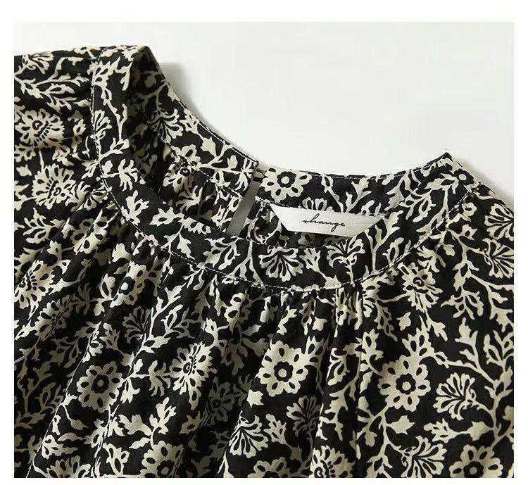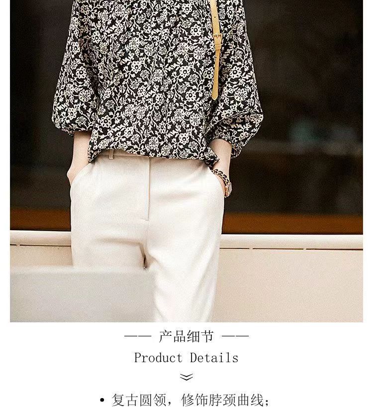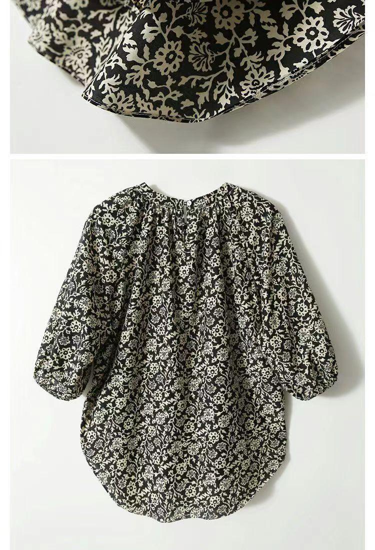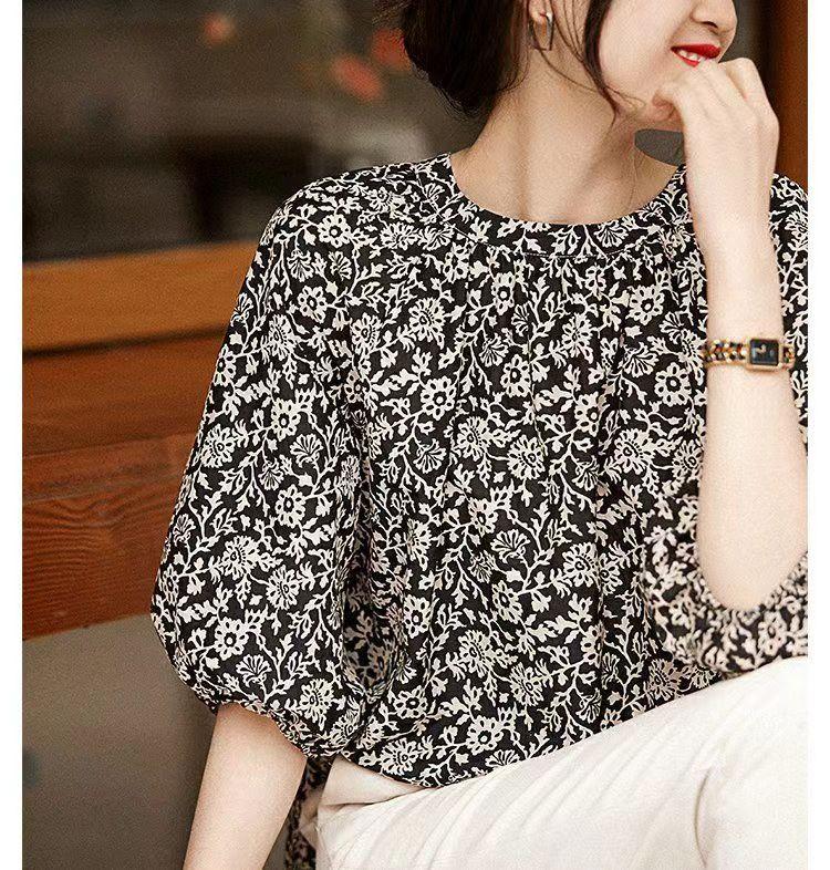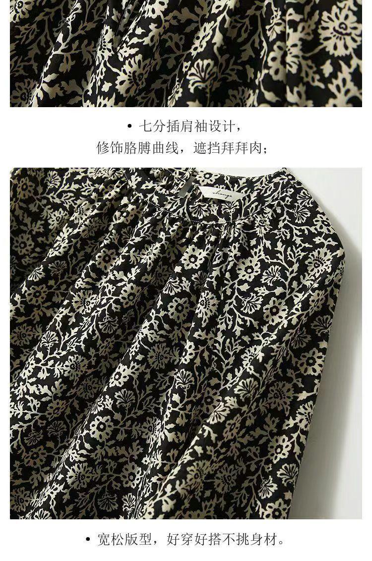 Estilo Étnico 2023 Primavera Nueva Llegada Manga Siete Octavos Floral Suave Holgado Adelgazante Cuello Redondo Suéter Camiseta Top para Mujer