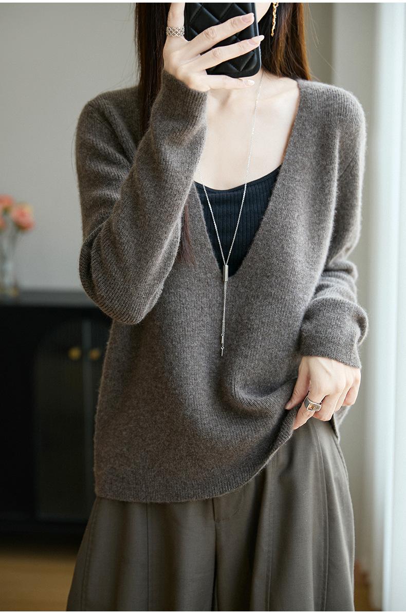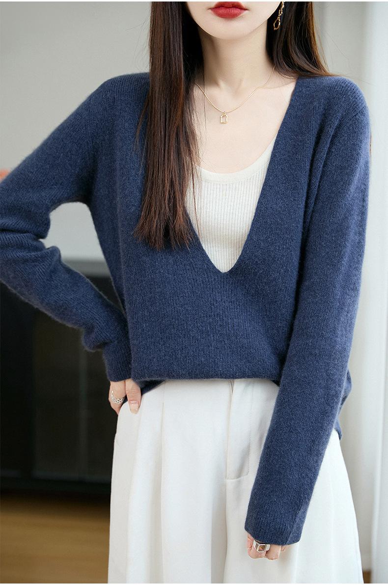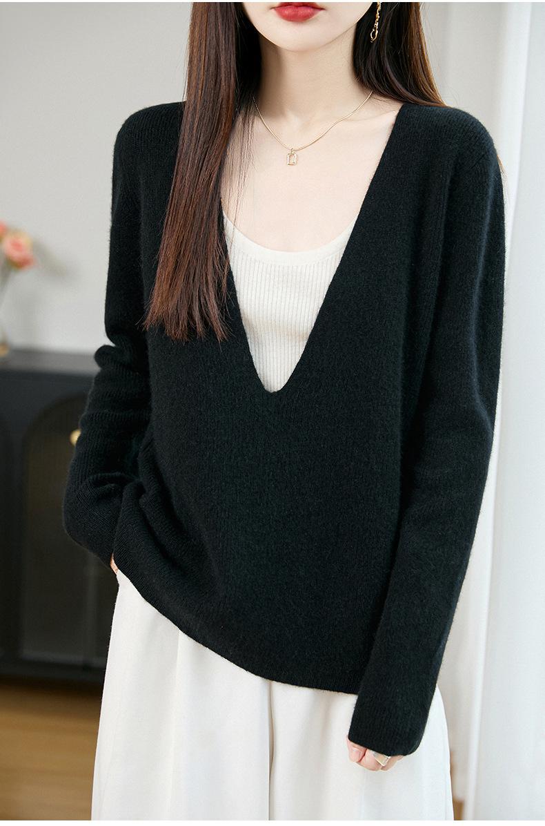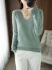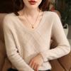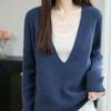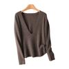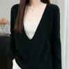Nuevo Otoño/Invierno Suéter de Mujer 100% Lana Cuello en V Profundo Adelgazante Manga Larga Jersey Base Cachemira Camisa Base
