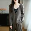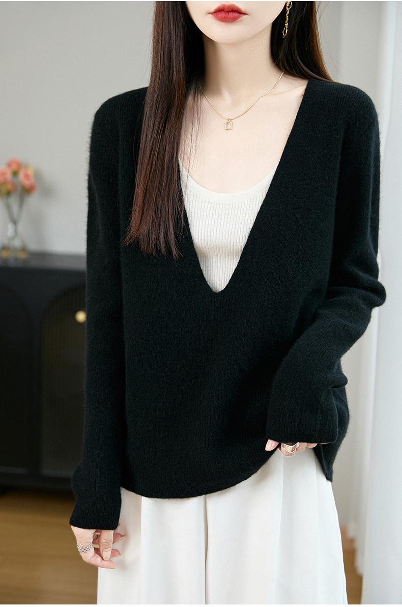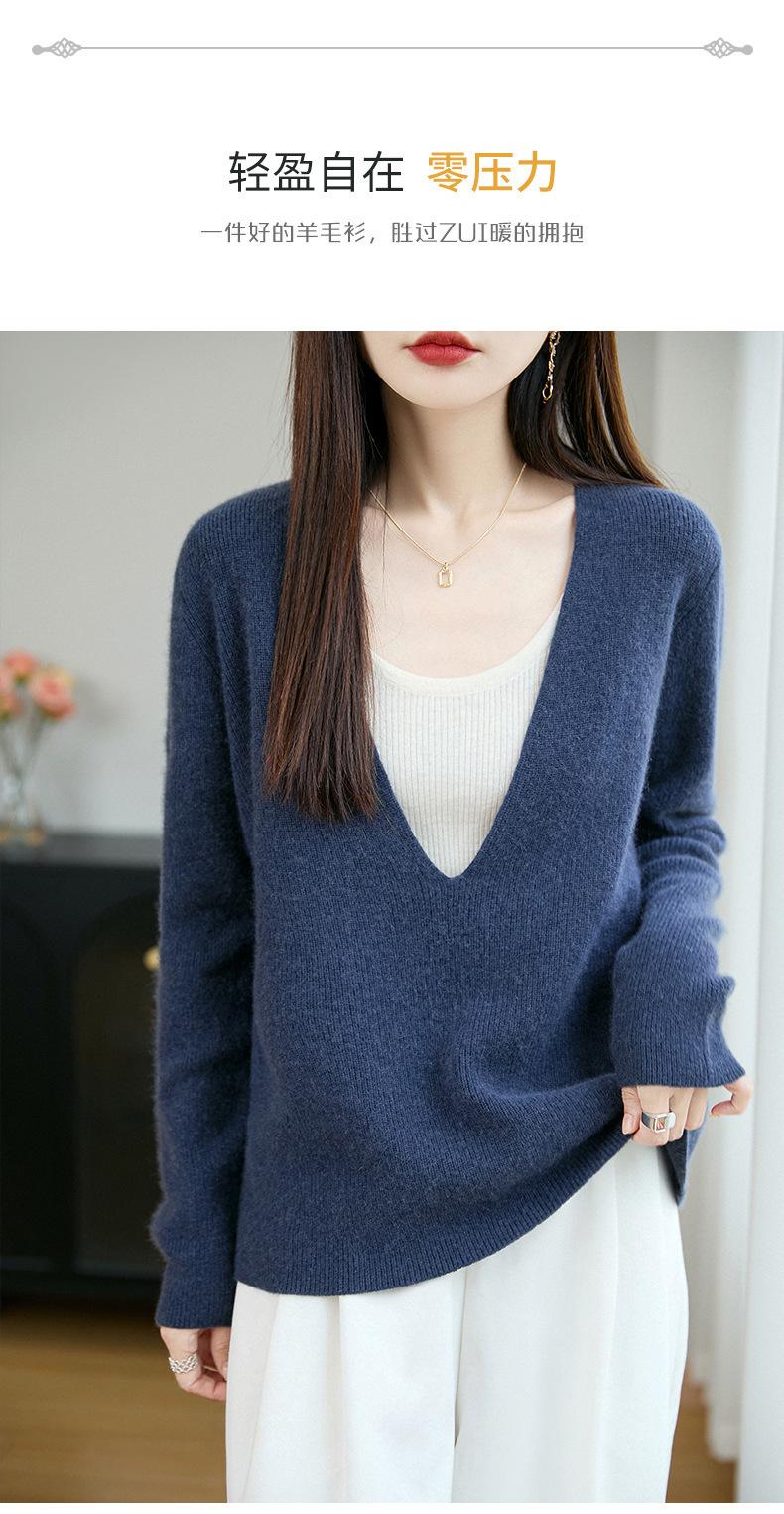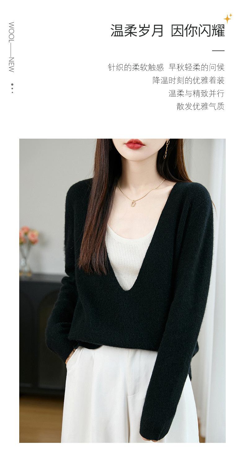 Nuevo Otoño/Invierno Suéter de Mujer 100% Lana Cuello en V Profundo Adelgazante Manga Larga Jersey Base Cachemira Camisa Base