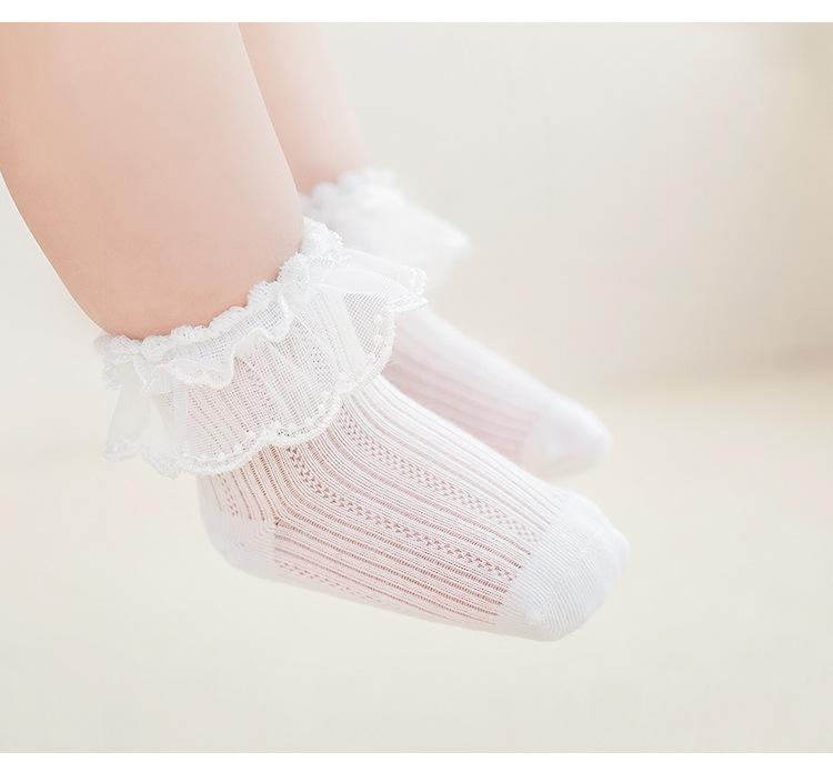 Calcetines de Niña Primavera y Otoño Calcetines de Algodón Calcetines de Encaje Transpirables para Niña Calcetines de Princesa Coreanos de Color Sólido Calcetines Medianos sin Costuras
