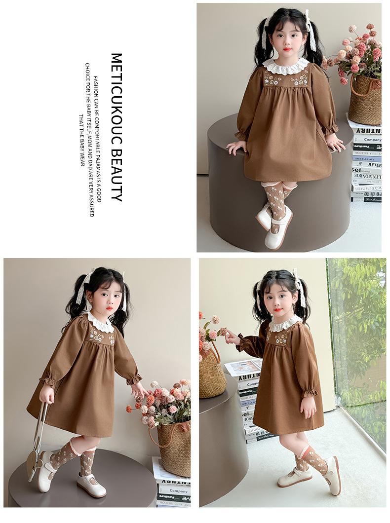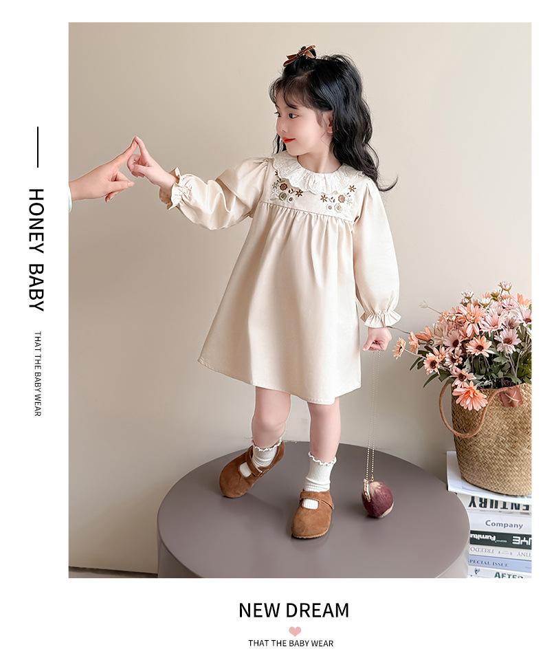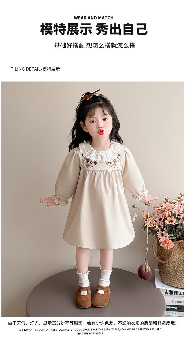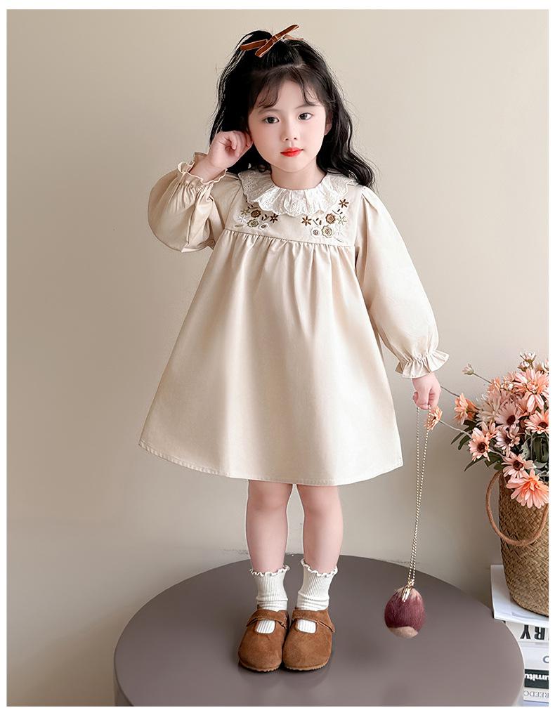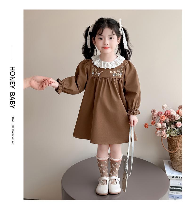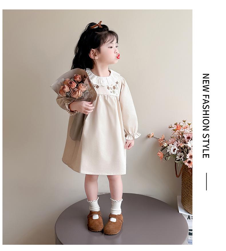 Vestido Bordado con Cuello de Encaje para Niñas Estilo Primavera y Otoño Moda Coreana Infantil Niña Pequeña Vestido de Princesa Elegante Niños Pequeños y Medianos