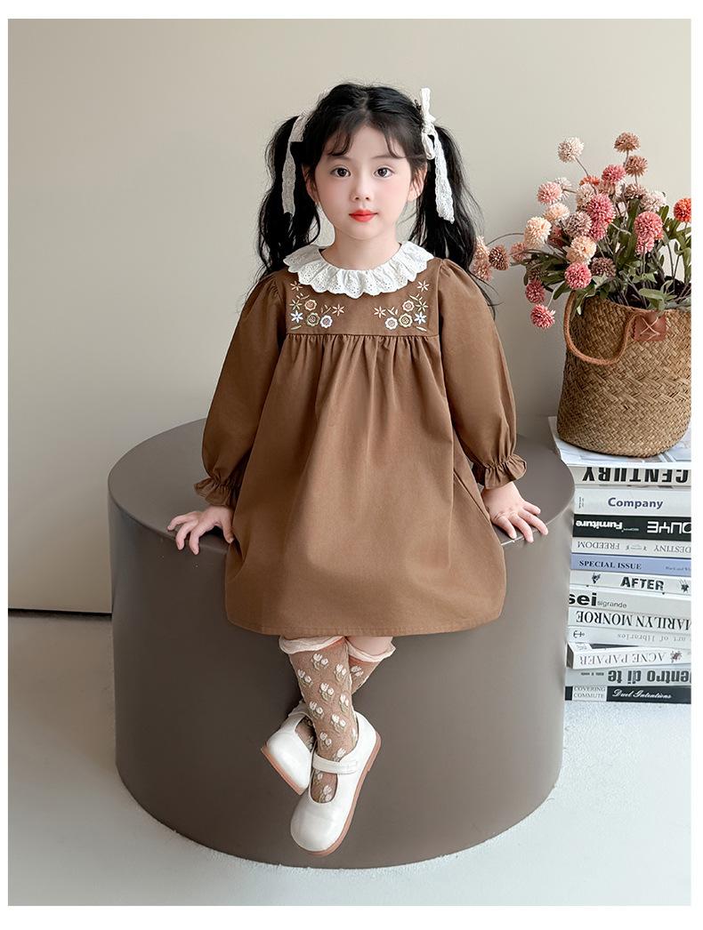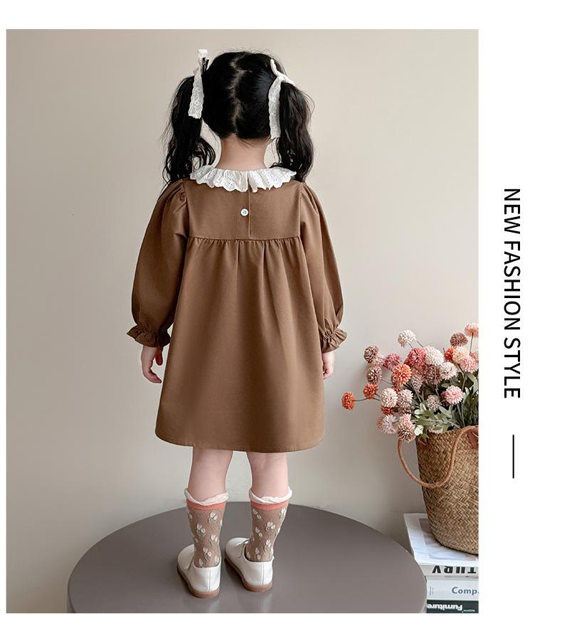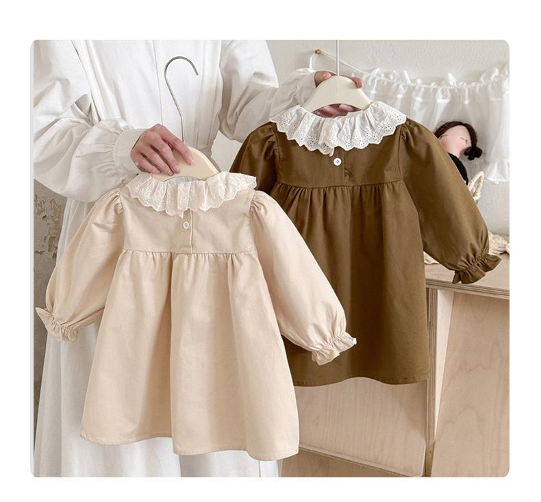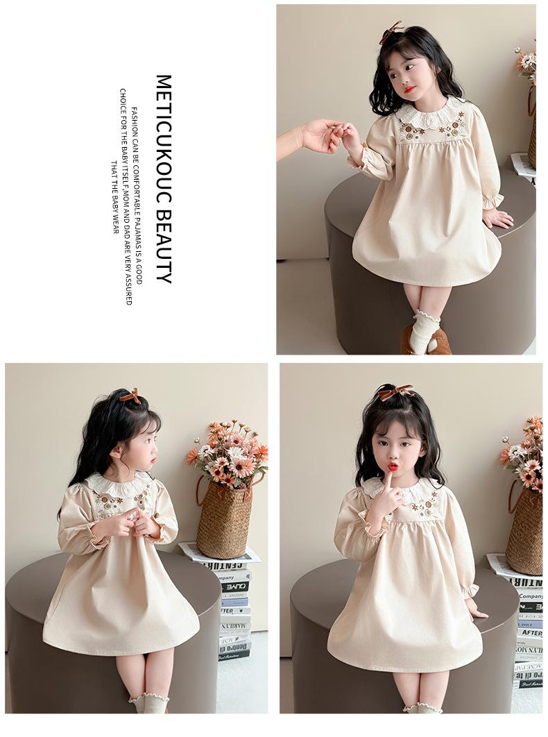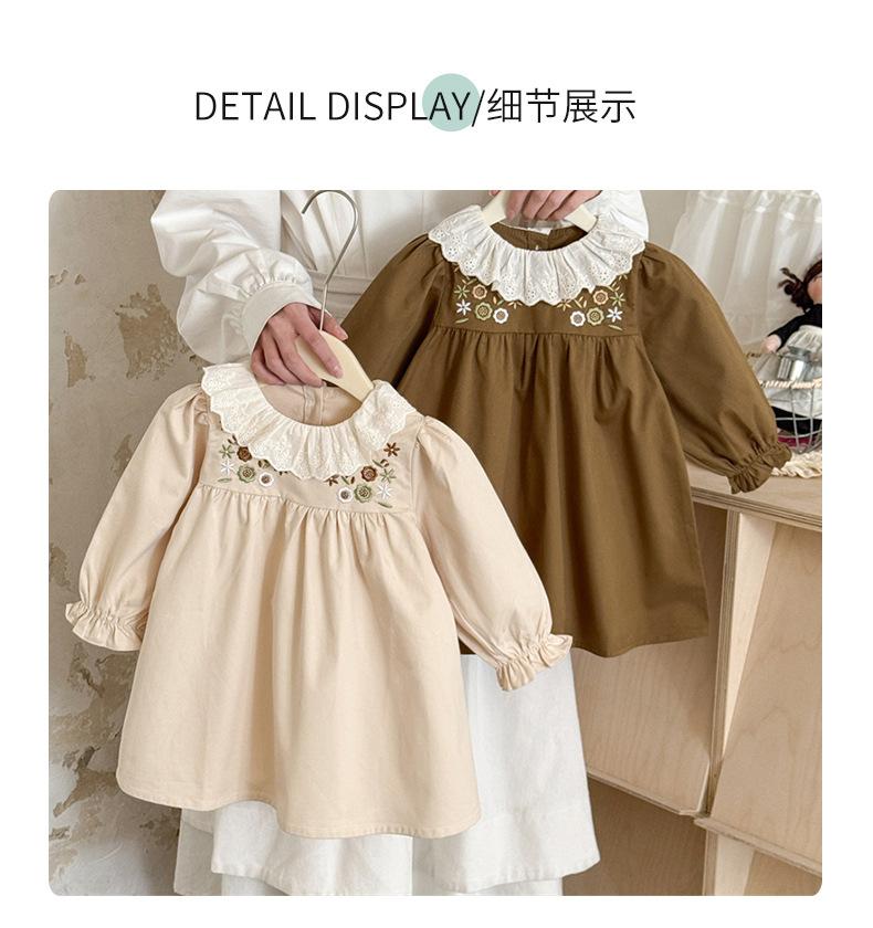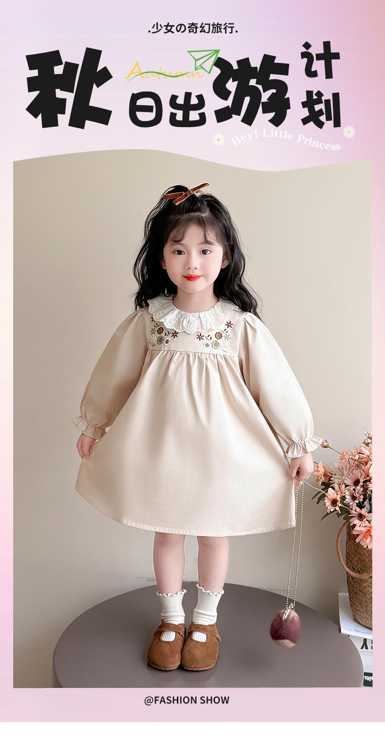 Vestido Bordado con Cuello de Encaje para Niñas Estilo Primavera y Otoño Moda Coreana Infantil Niña Pequeña Vestido de Princesa Elegante Niños Pequeños y Medianos