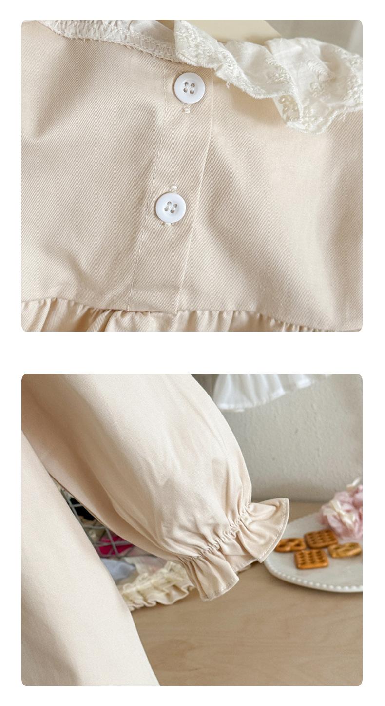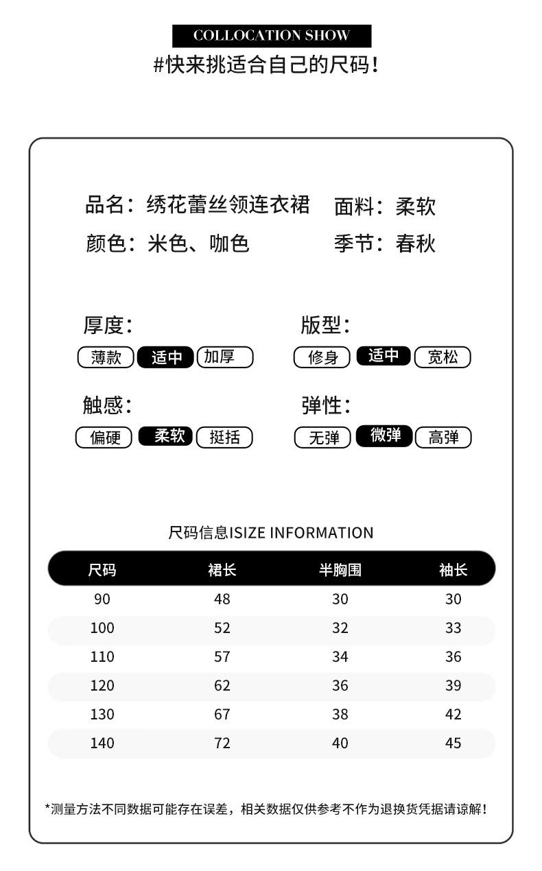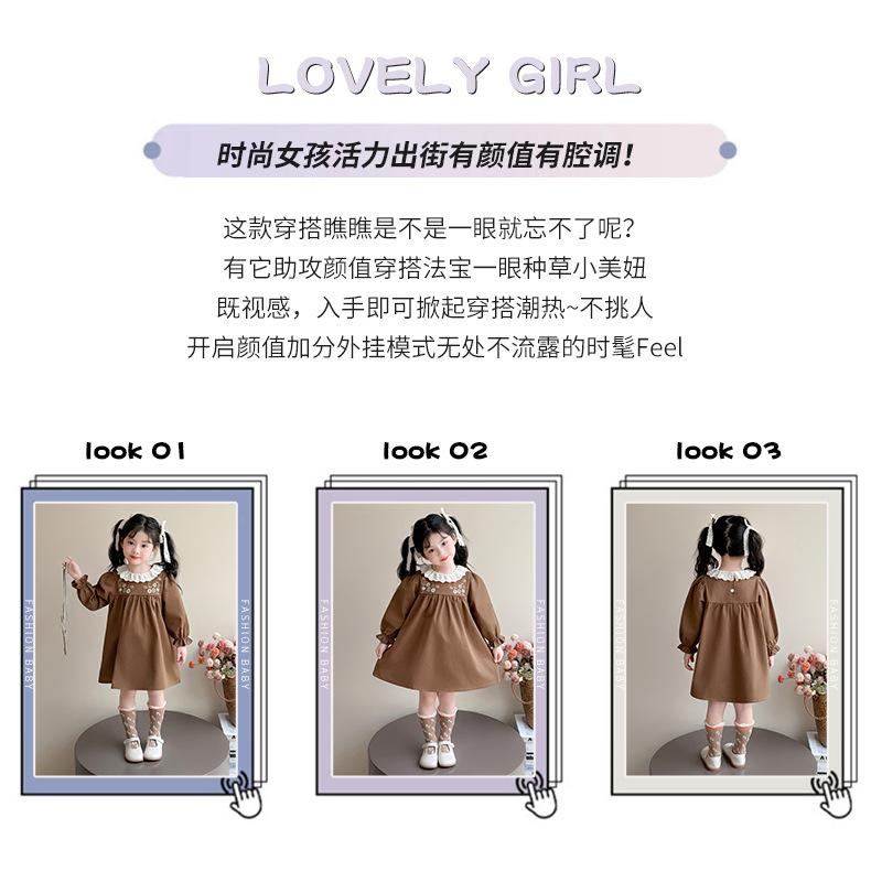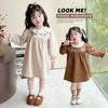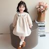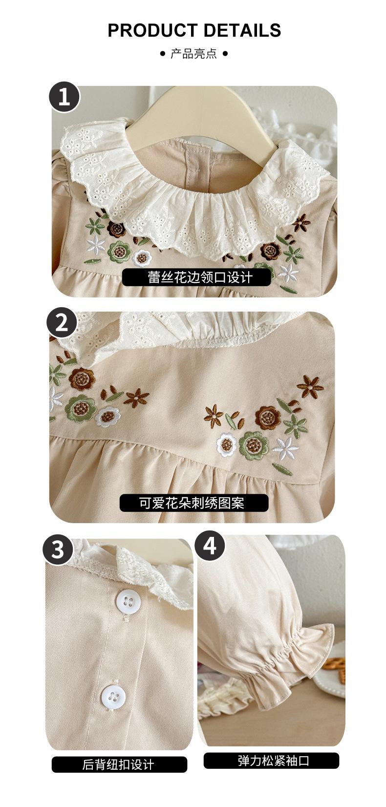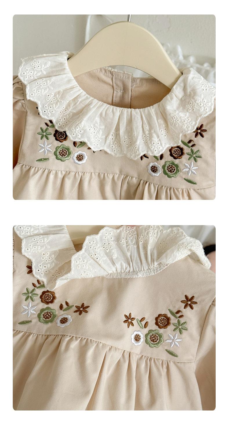 Vestido Bordado con Cuello de Encaje para Niñas Estilo Primavera y Otoño Moda Coreana Infantil Niña Pequeña Vestido de Princesa Elegante Niños Pequeños y Medianos