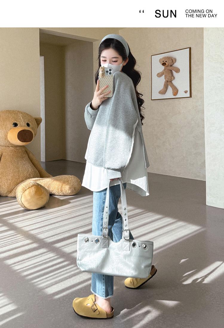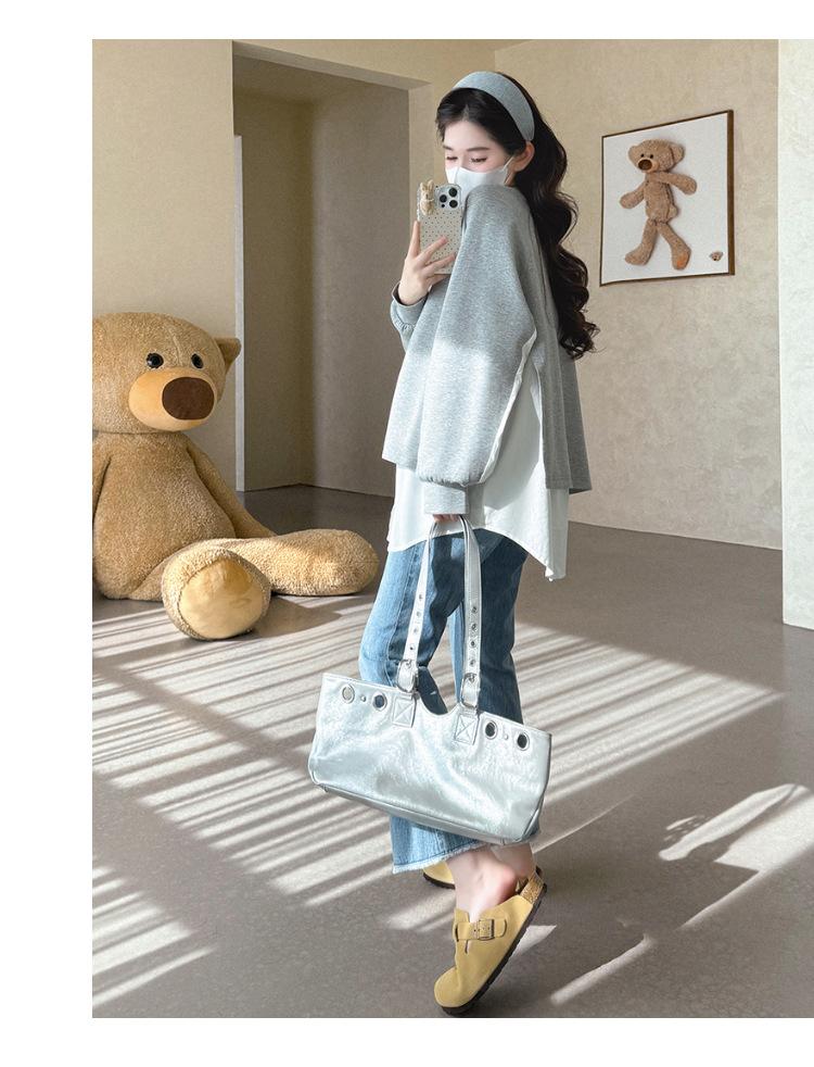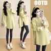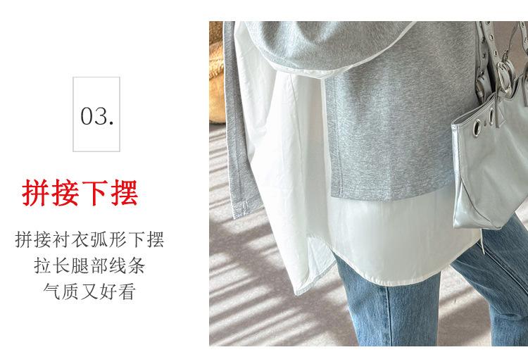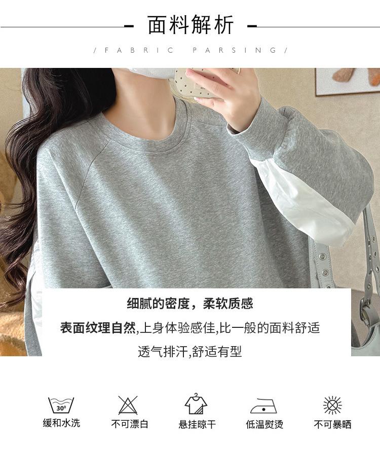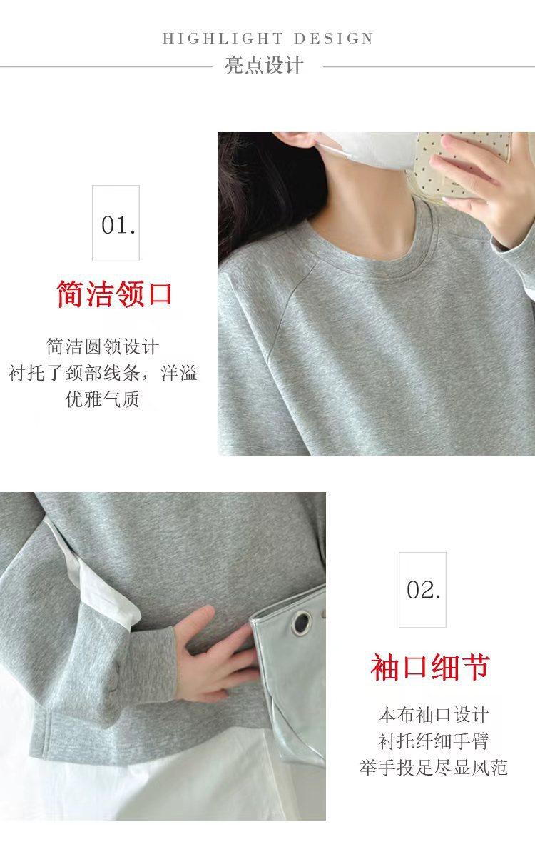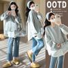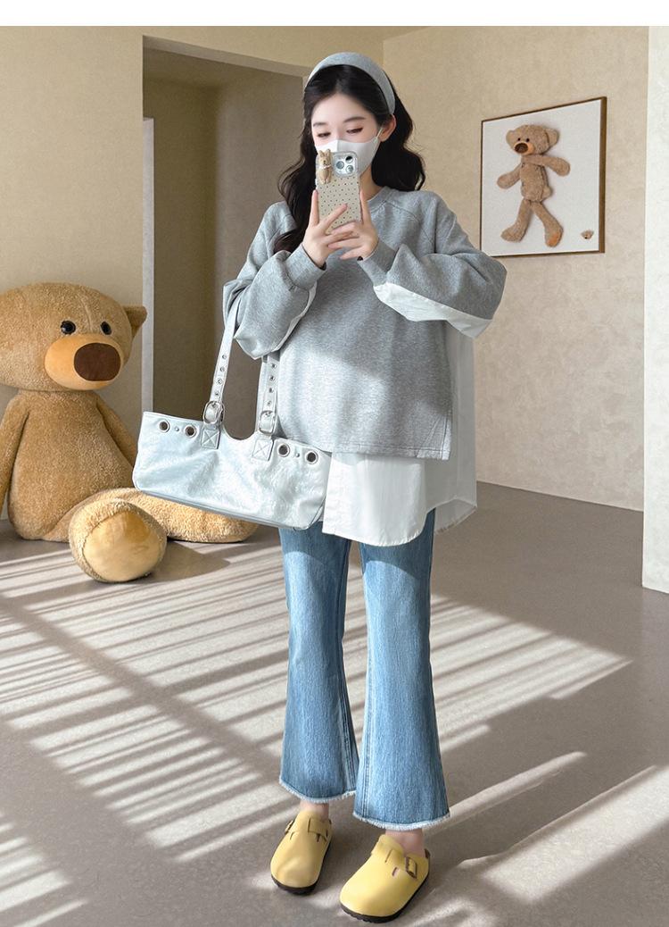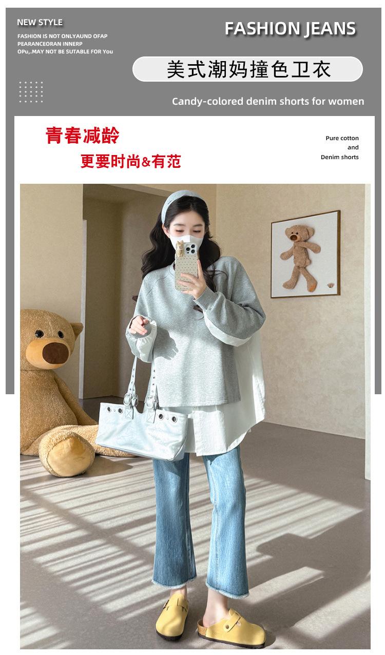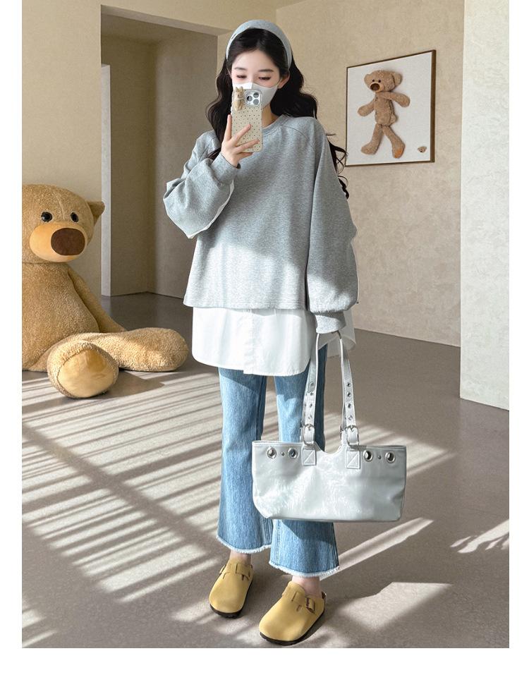 Sudadera premamá gris americano otoño holgada casual falsa de dos piezas top suelto que cubre la cadera