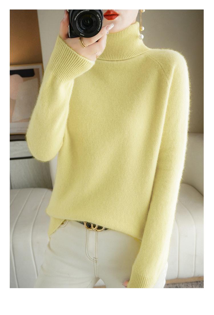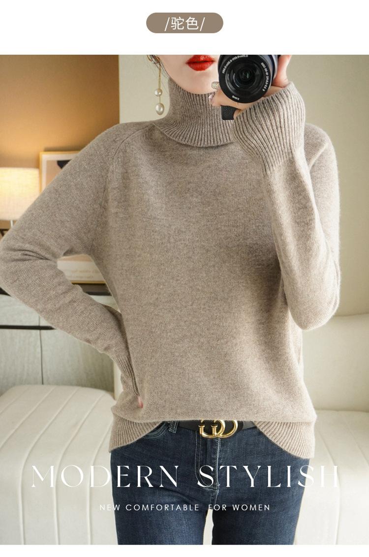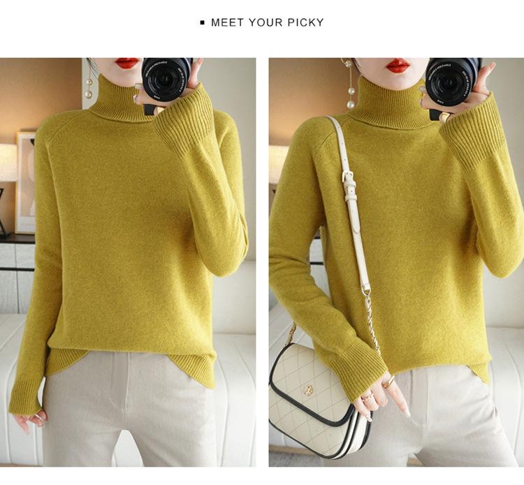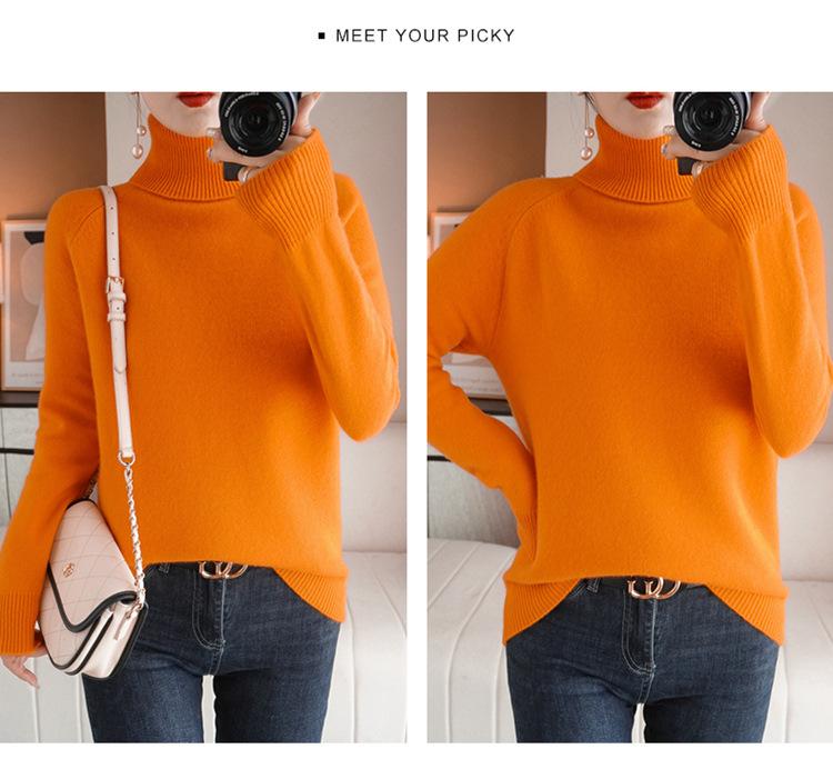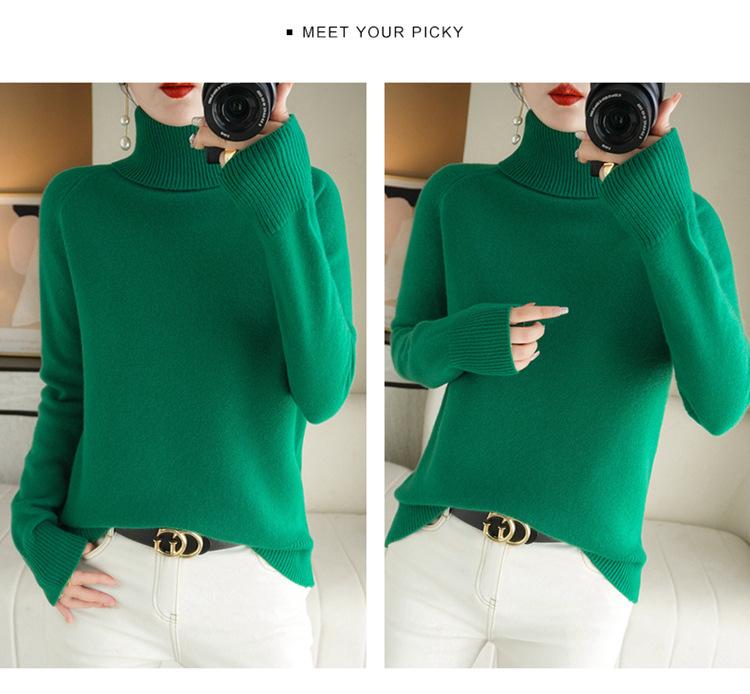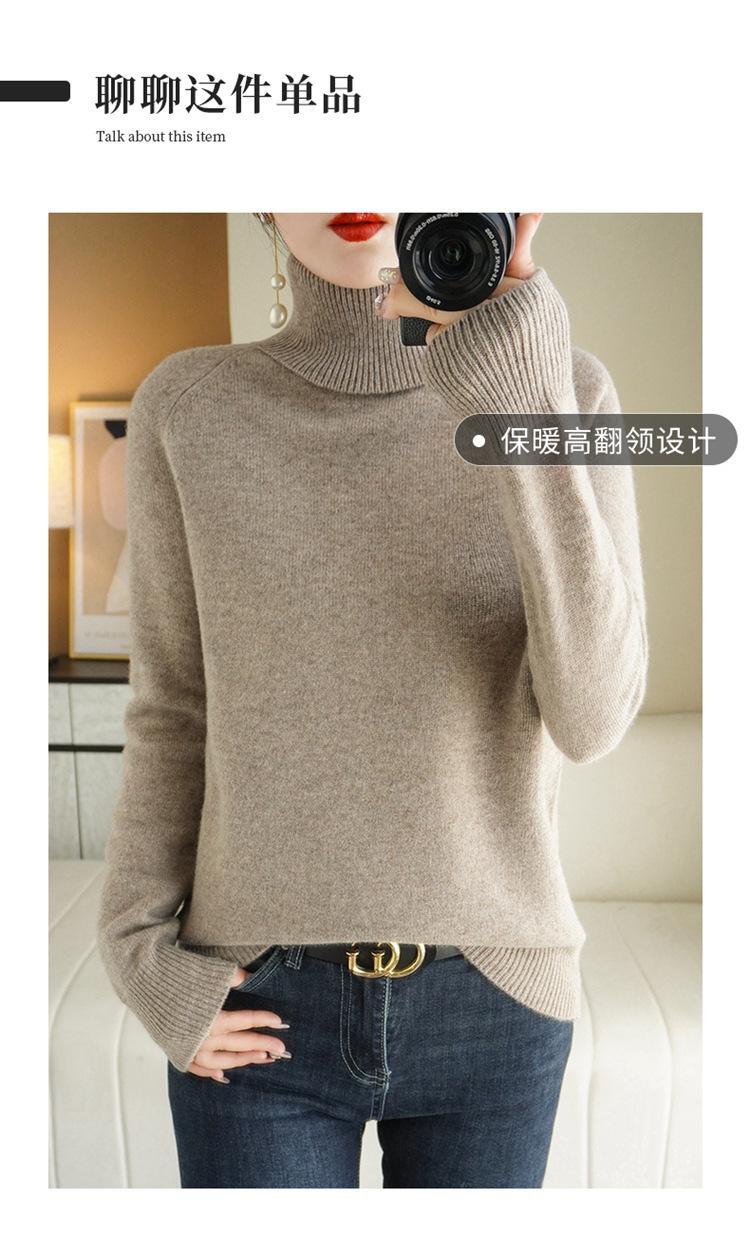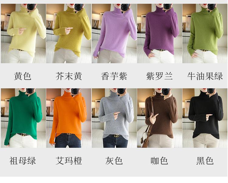 Mayoreo 24 otoño e invierno nuevo suéter de manga raglán femenino versión coreana de cuello alto suelto camisa base color sólido suéter interior