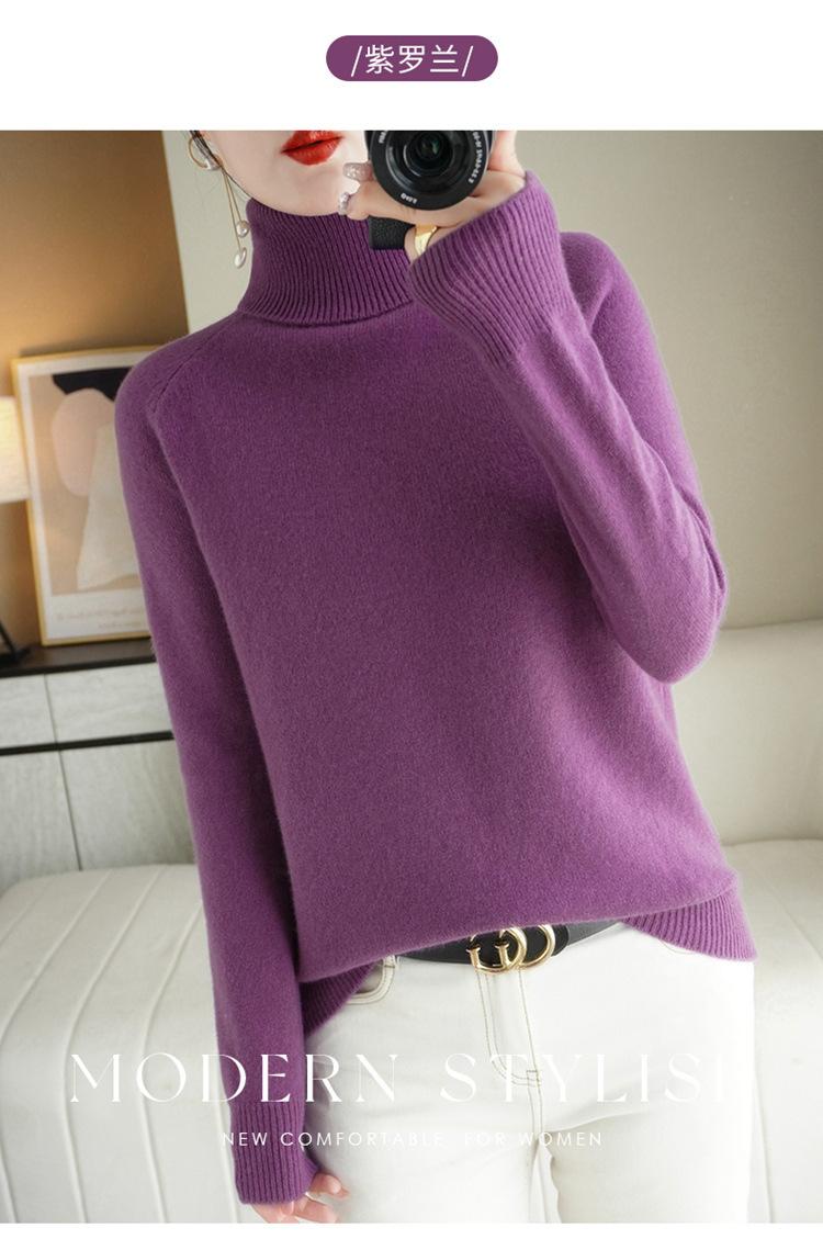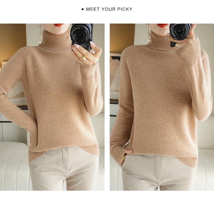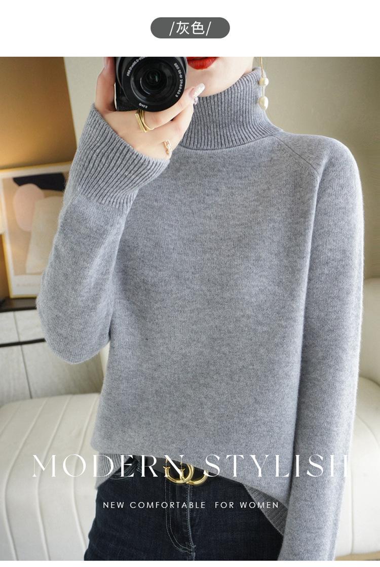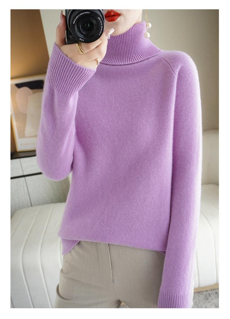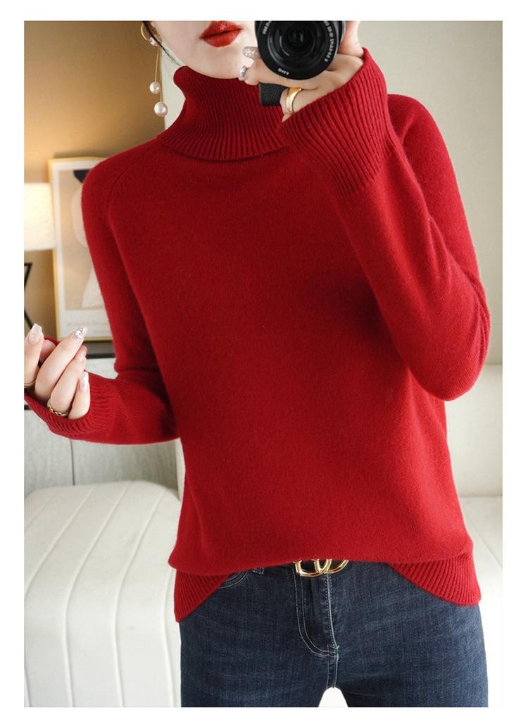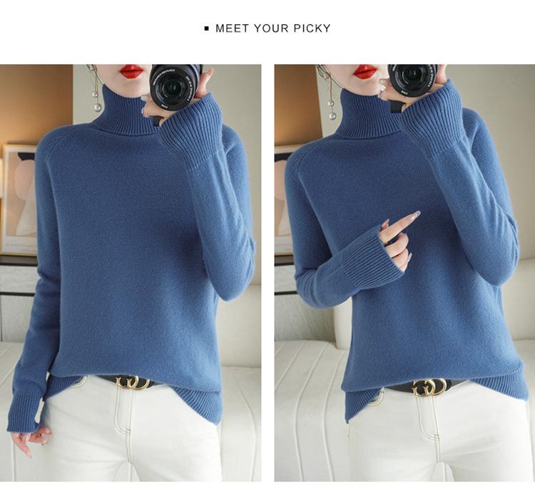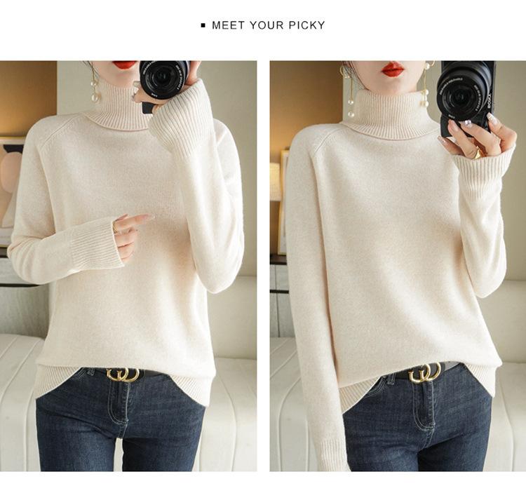 Mayoreo 24 otoño e invierno nuevo suéter de manga raglán femenino versión coreana de cuello alto suelto camisa base color sólido suéter interior