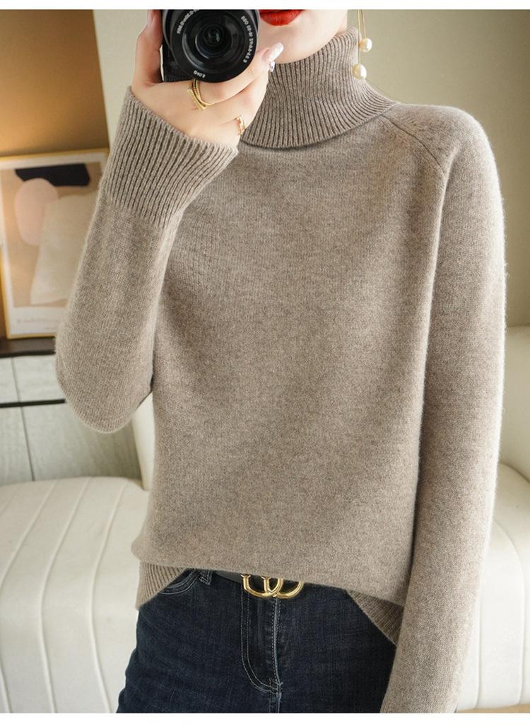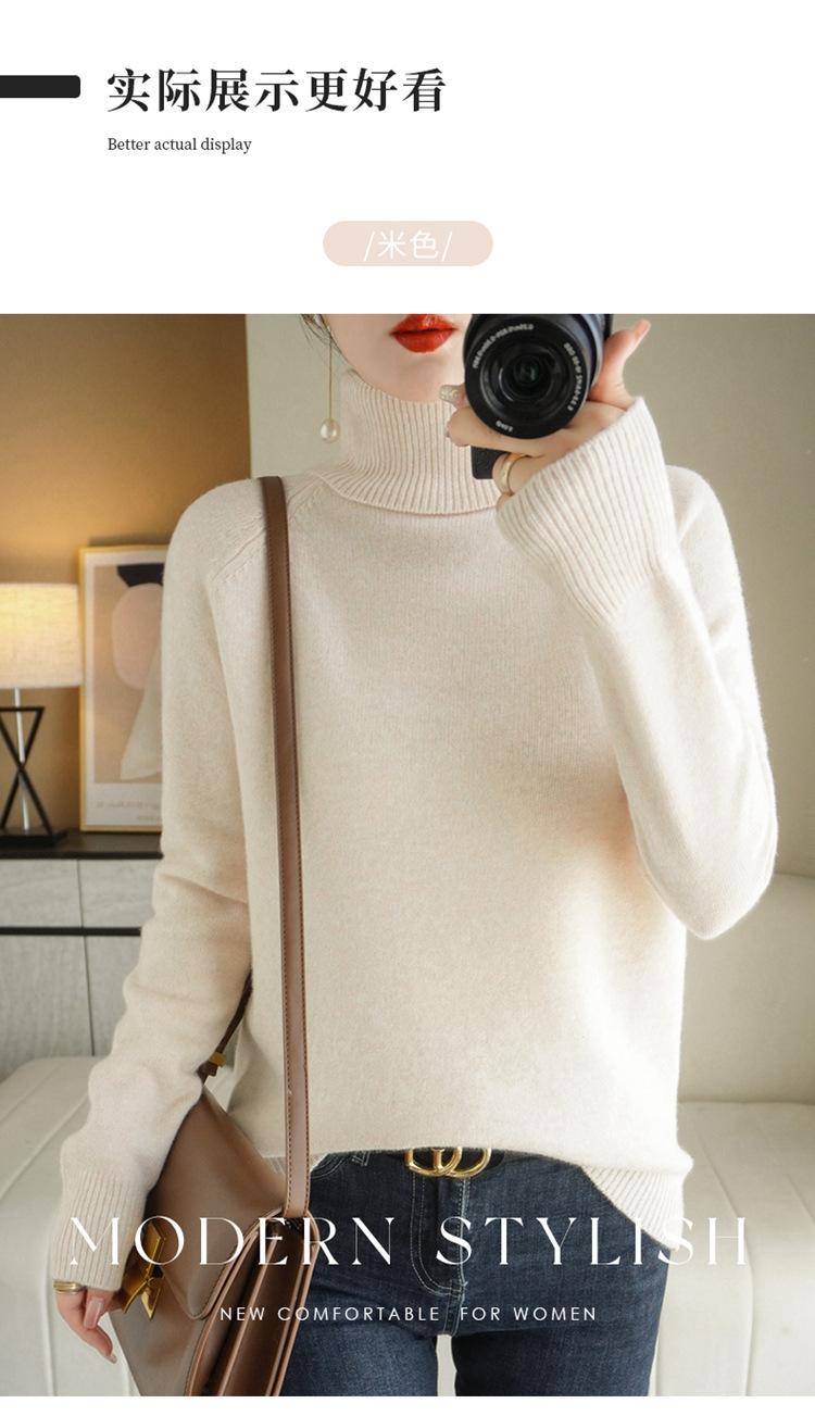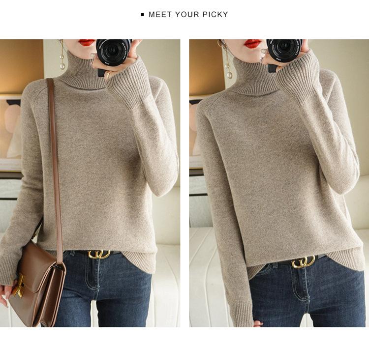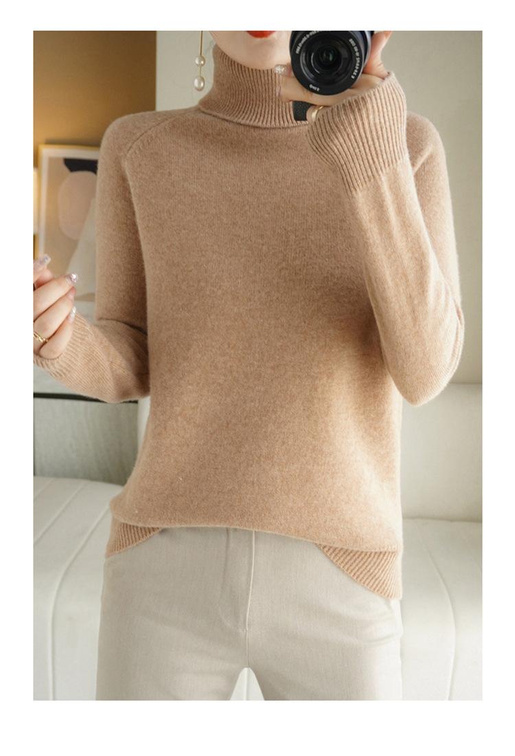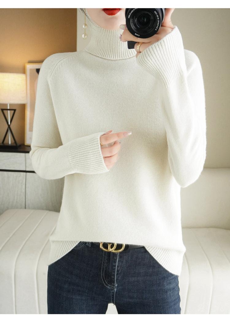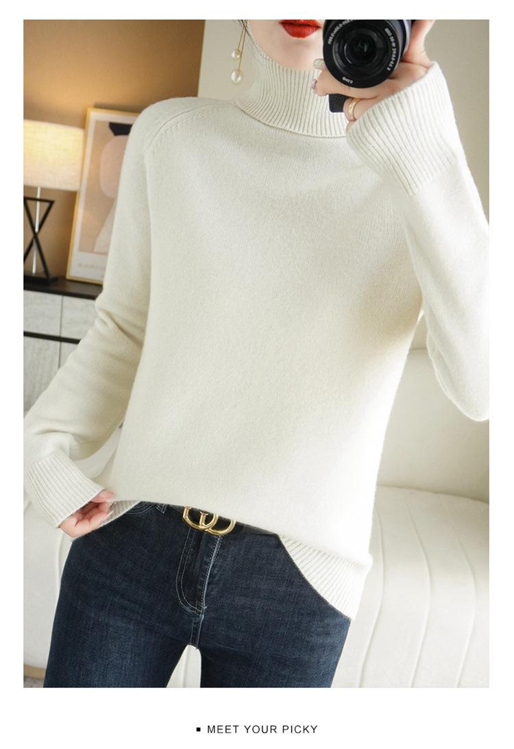 Mayoreo 24 otoño e invierno nuevo suéter de manga raglán femenino versión coreana de cuello alto suelto camisa base color sólido suéter interior