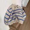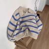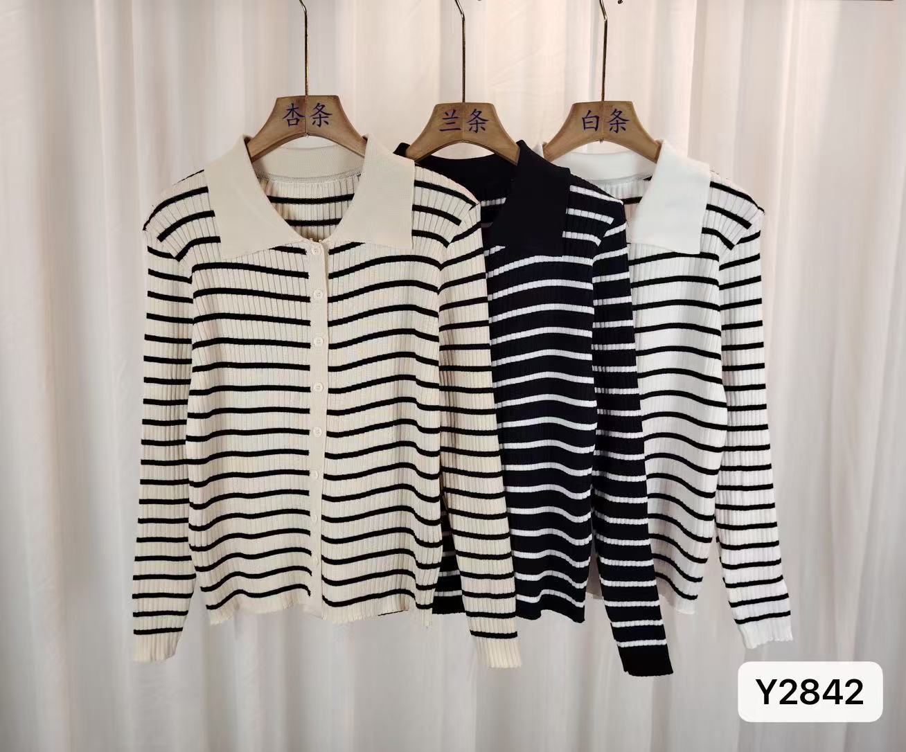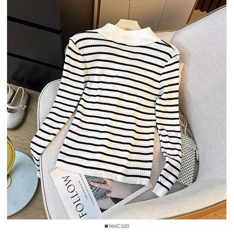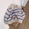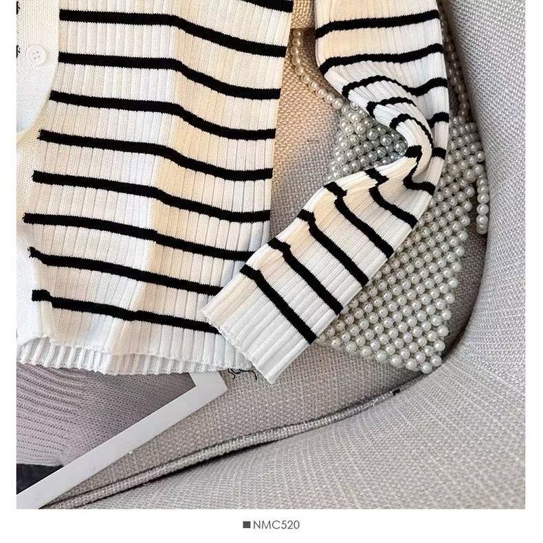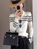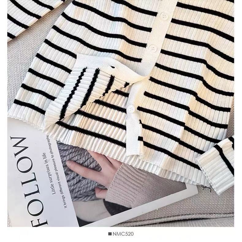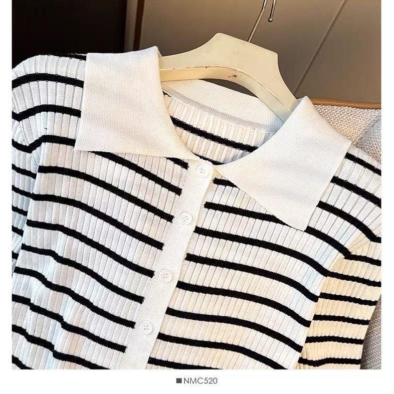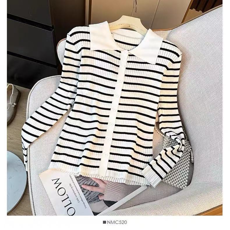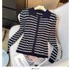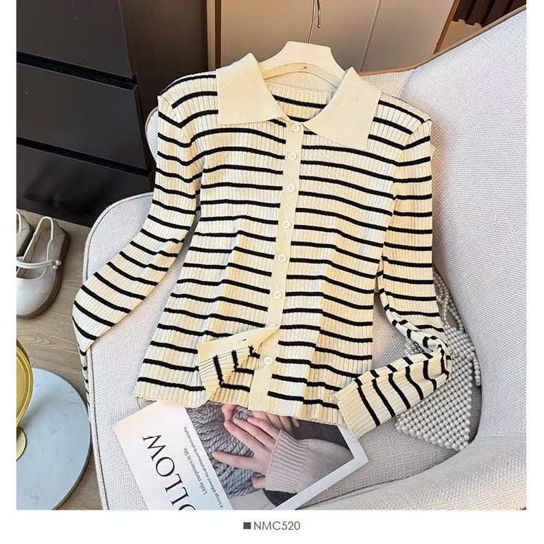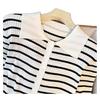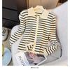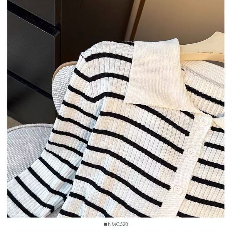 Cárdigan Corto Rayado Suéter Cuello Polo Nuevo Otoño Suéter Tejido Manga Larga Cárdigan Top Capa Base para Mujer Moderno
