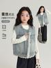 Chaleco para Niños Pudding Haru 2025 Otoño Nuevo Diseño de Encaje Chaleco de Mezclilla para Bebé Niña Estilo Dulce