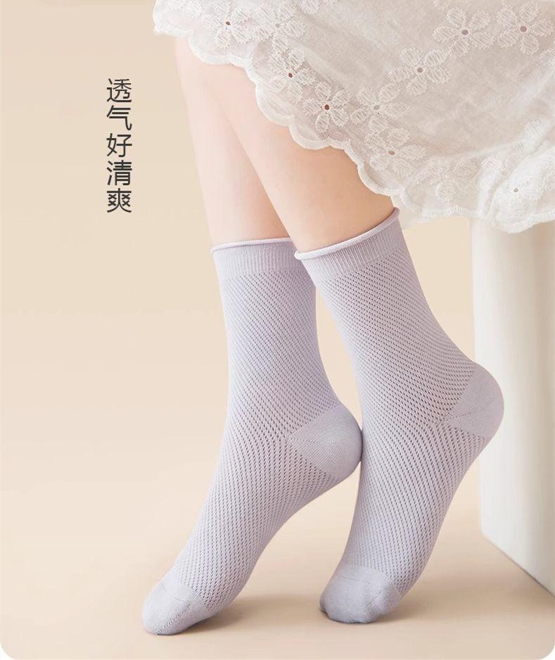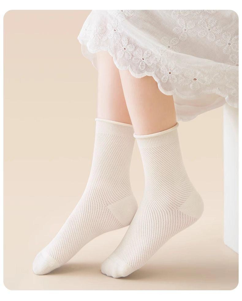 Calcetines para Niñas Primavera Verano Delgados Niños Estudiante Transpirables Color Sólido Malla Niños Grandes Verano Algodón Calcetines Media Pantorrilla
