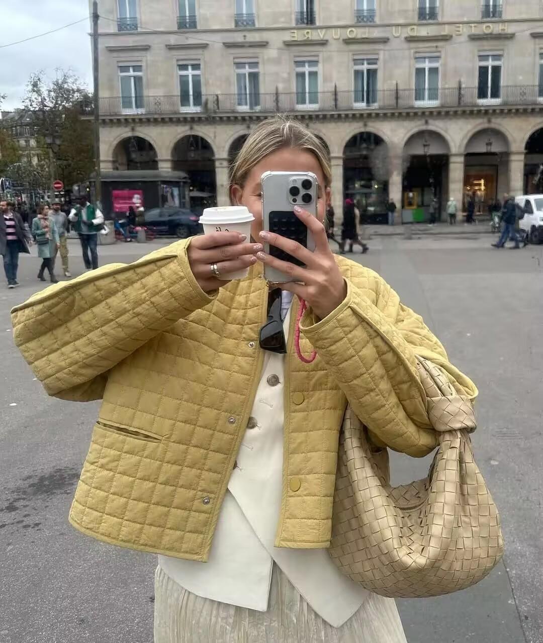 Chaqueta Acolchada de Algodón a Cuadros de Manga Larga y Cuello Redondo de Venta Caliente de Otoño e Invierno Transfronteriza Europea y Americana