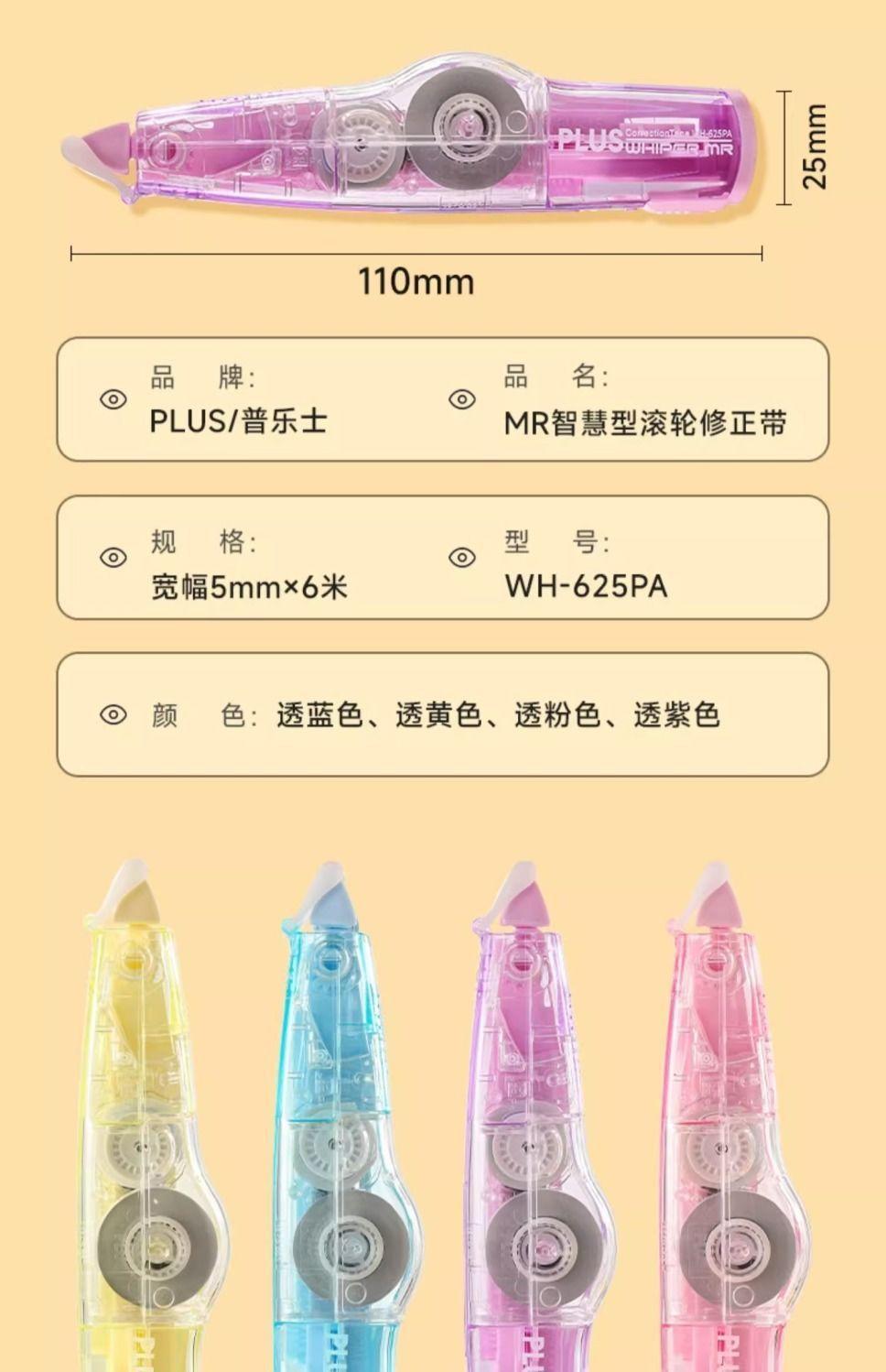 WH-625PA through blue, Prussian WH-625PA correction tape light red and transparent, Purple WH-625PA Correction...
