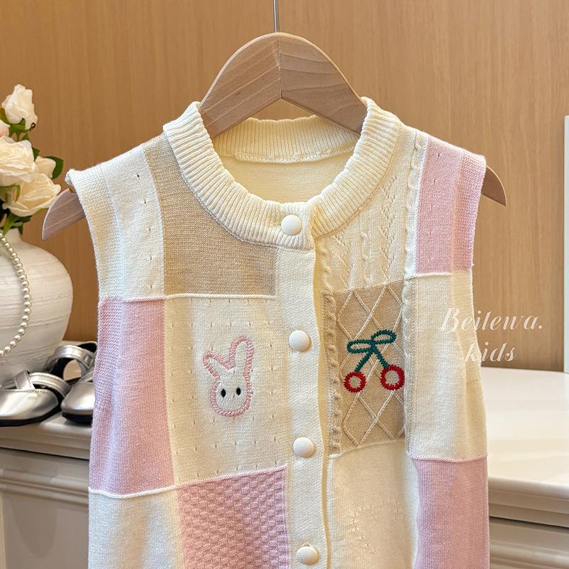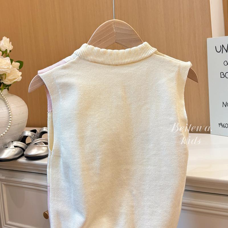 Nuevo Chaleco para Niñas Estilo Coreano Primavera Otoño Moda Chaleco Suéter para Bebé Niña Pequeño Mediano Infantil Cárdigan sin Mangas Chaleco Tejido para Niños