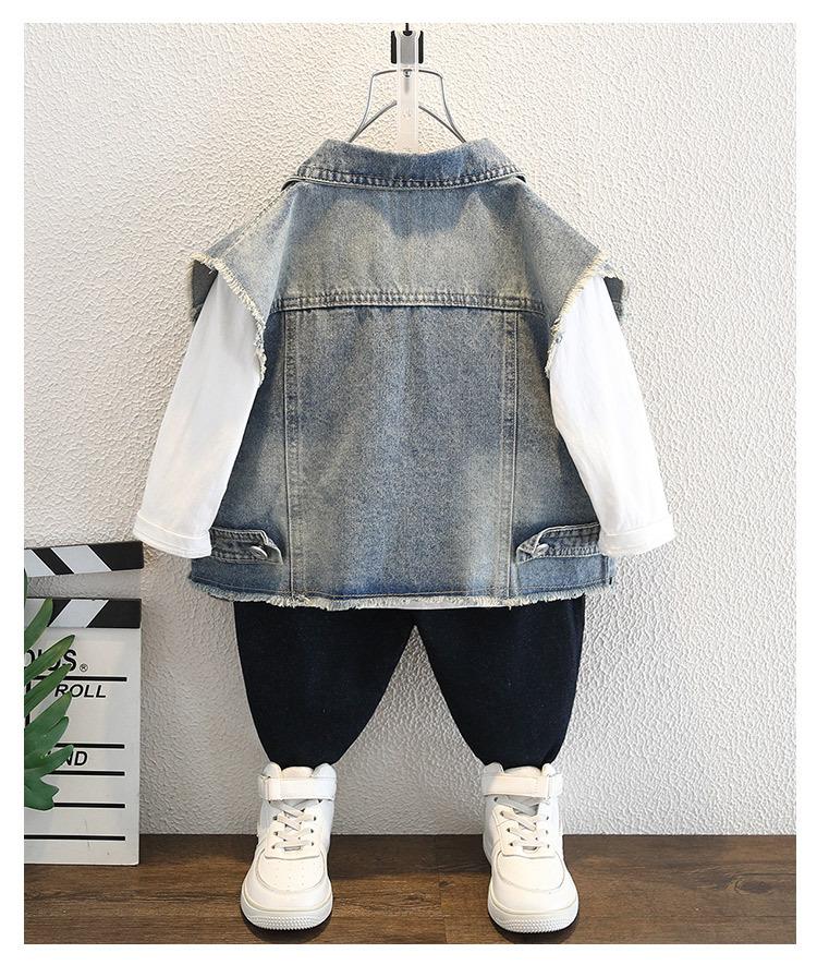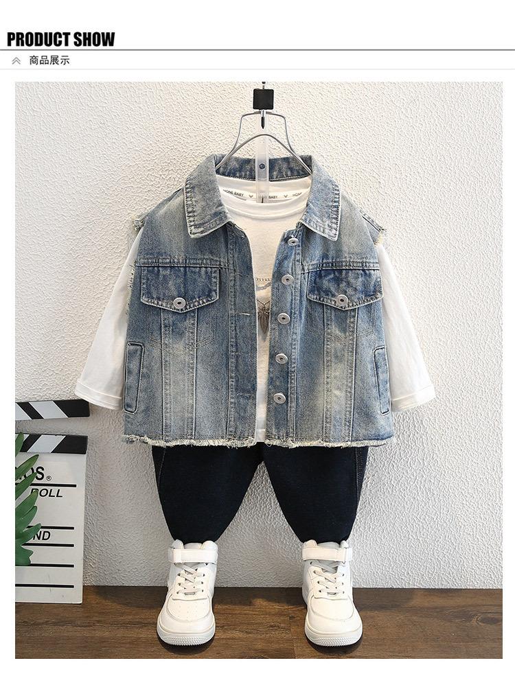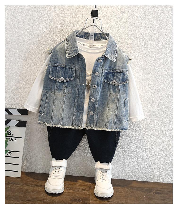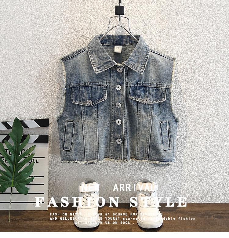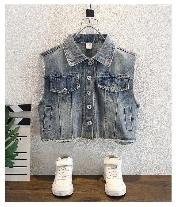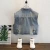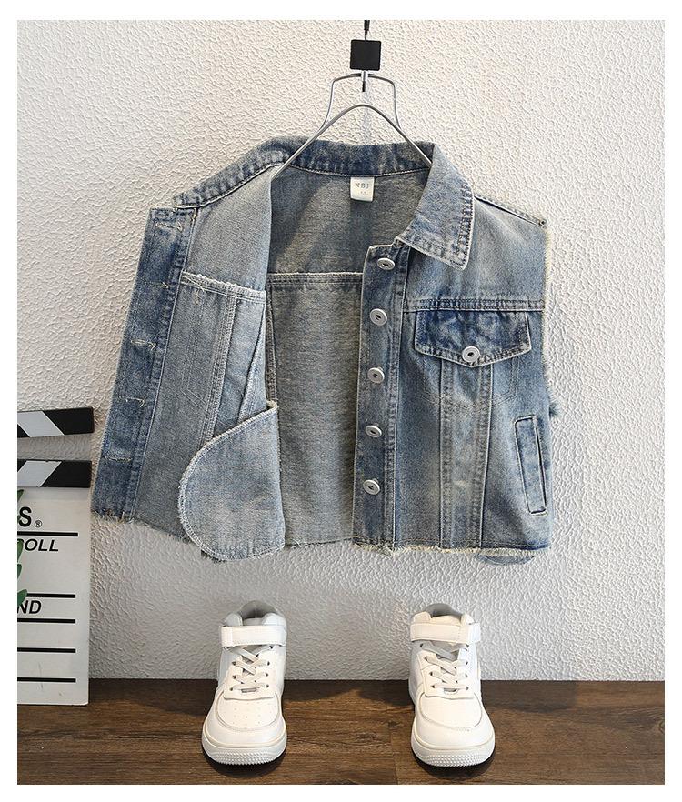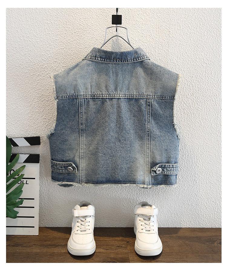 Chaleco de mezclilla deshilachado de primavera y otoño para niños 2025 Otoño Estilo coreano Chaqueta sin mangas moderna y guapa para niños pequeños y medianos