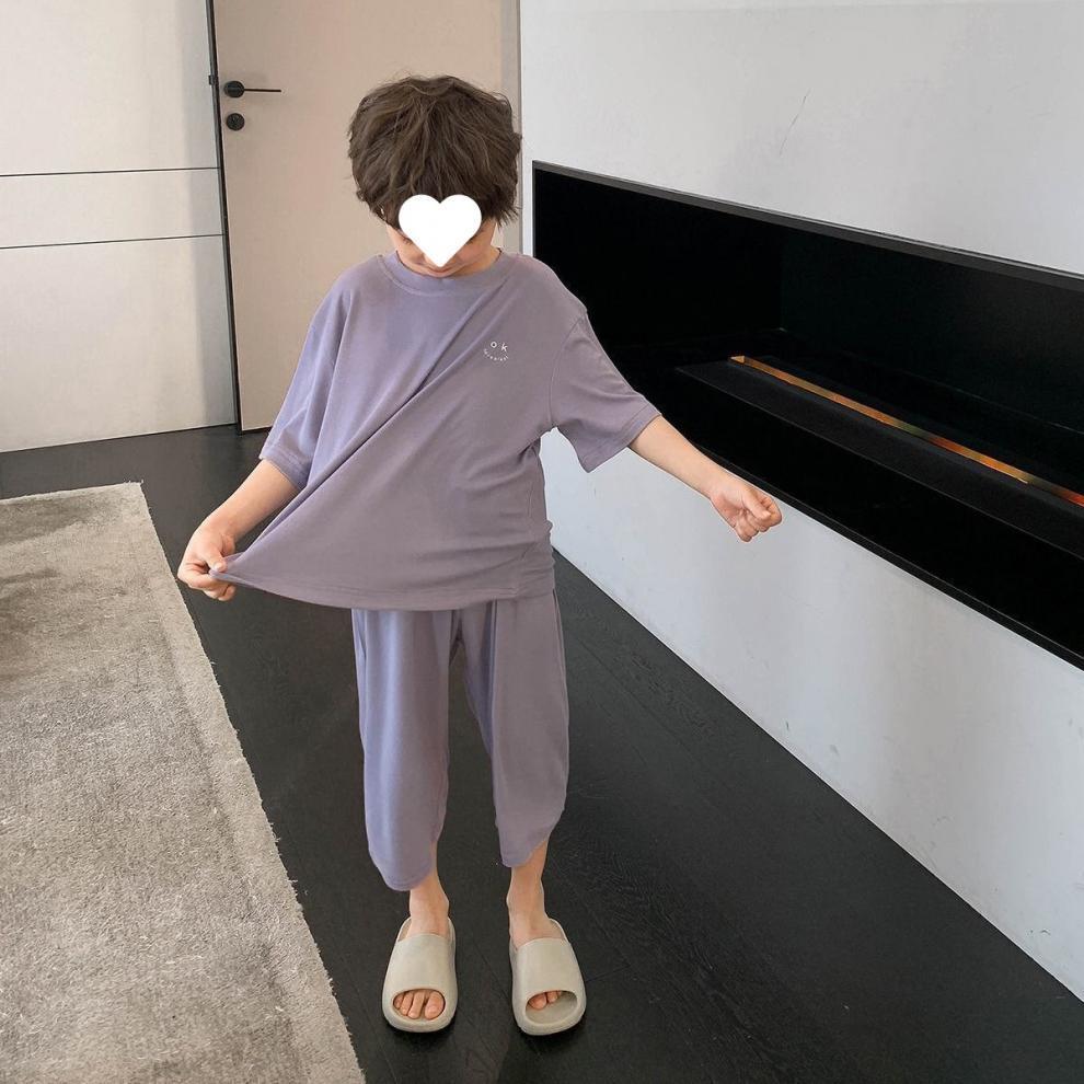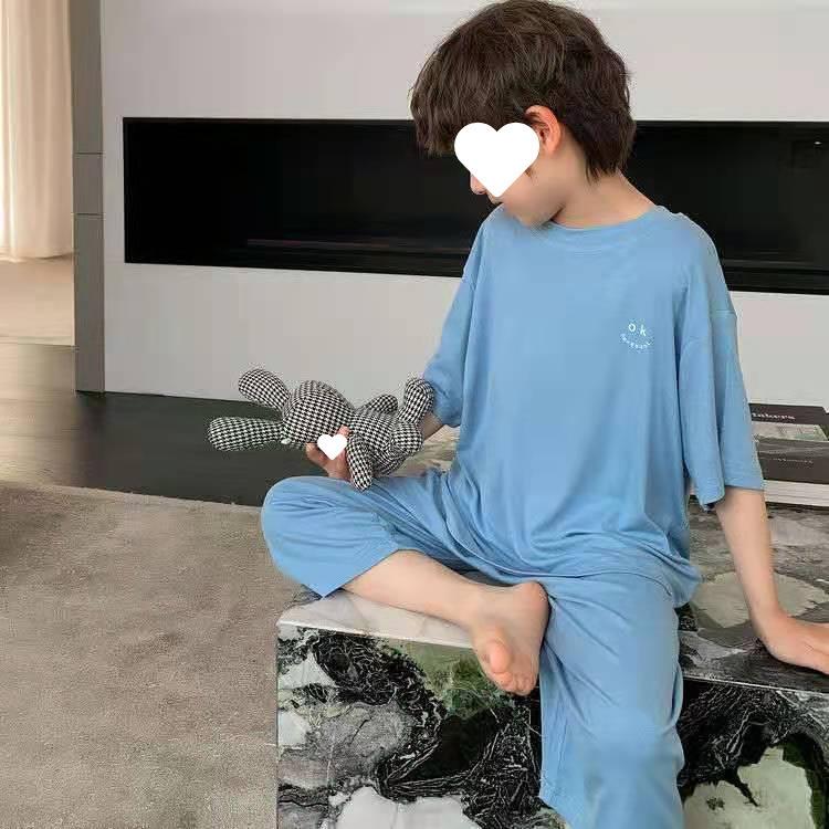 Ropa de verano pijama de niño celebridad de internet niños medianos y grandes niños estudiantes modal seda de hielo habitación con aire acondicionado delgado traje de ropa para el hogar
