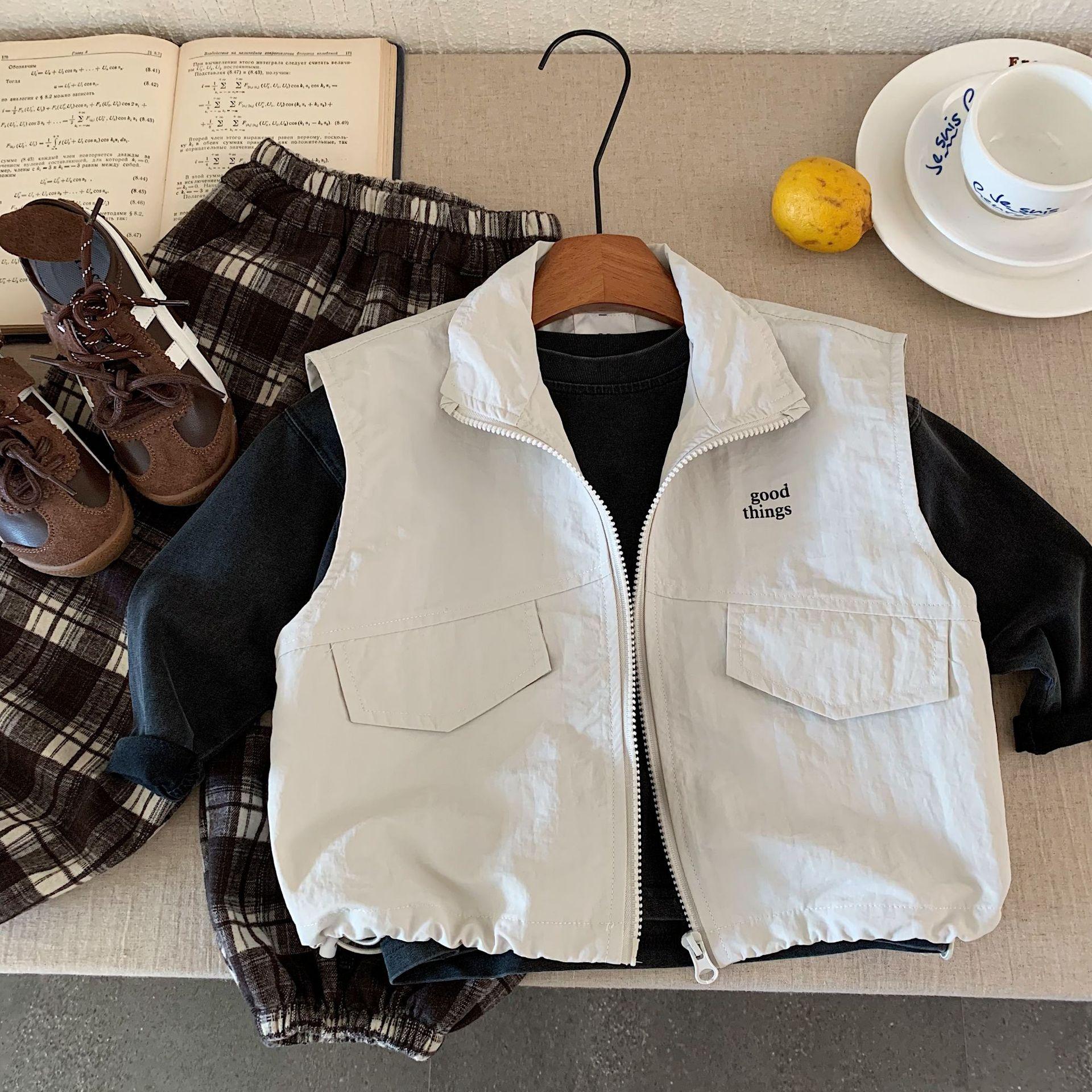 Chaleco para Niños Otoño 2025 Nuevo Estilo Coreano Niños Color Sólido Chaleco de Moda Ropa Exterior Bebé Top sin Mangas Venta al por Mayor