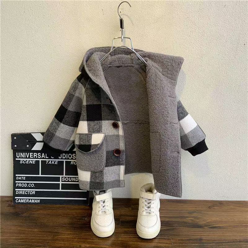 Abrigo de lana cálido y moderno para niños y niñas, nuevo para invierno, para bebé, niños, grueso con terciopelo, largo medio, lana de cordero