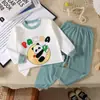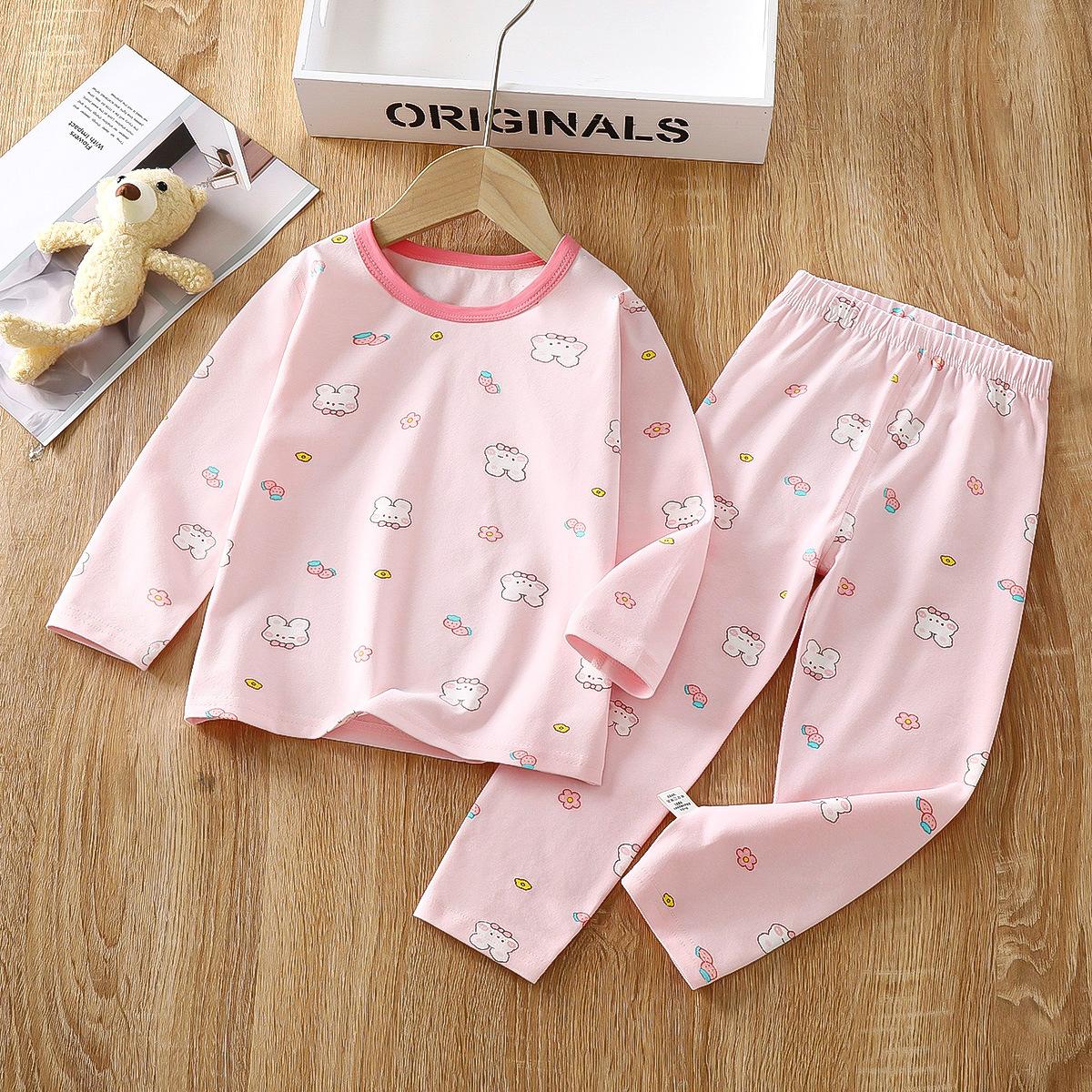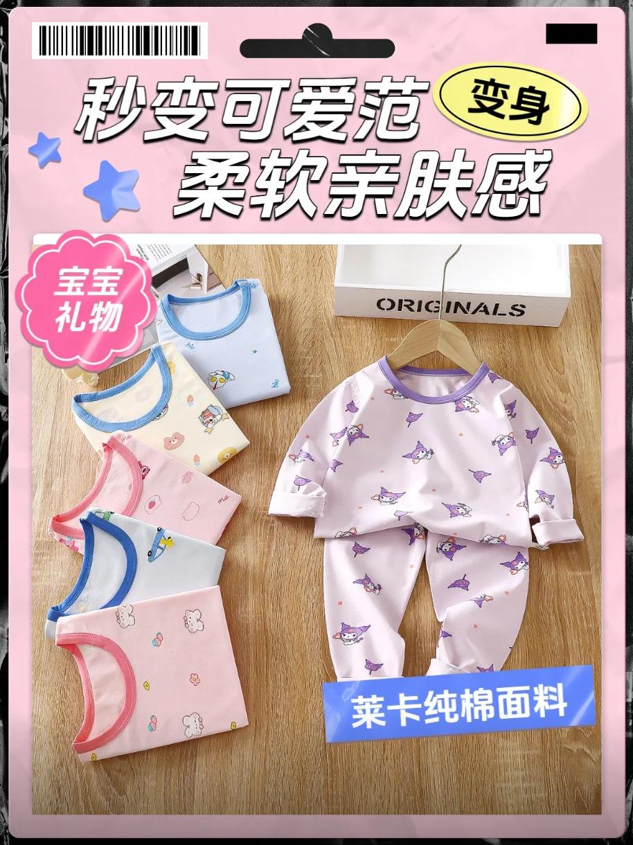 Conjunto de Ropa de Otoño de Algodón Puro Lycra para Niños y Pantalones Largos Niños Niñas Bebé Ropa para el Hogar Pijamas Ropa Interior de Primavera y Otoño Ropa Infantil