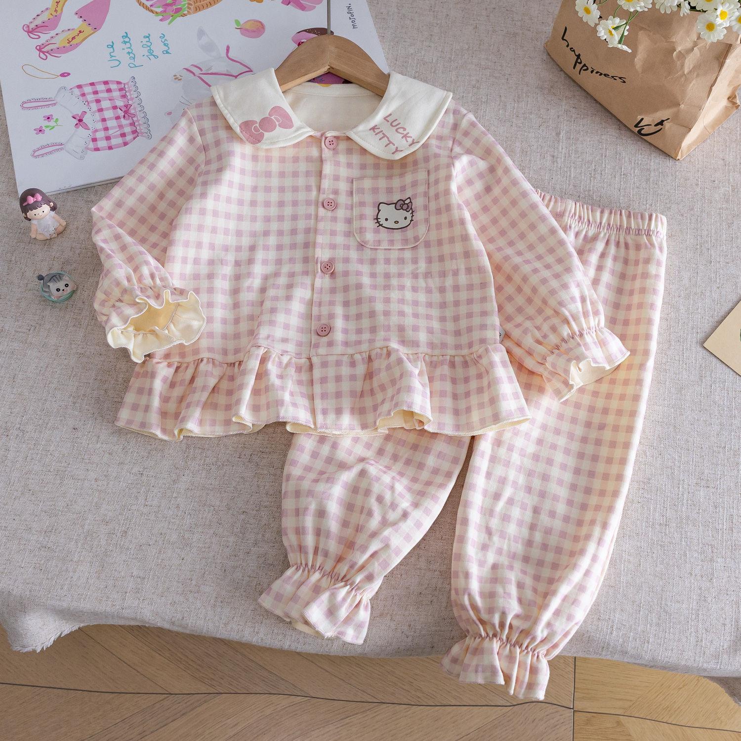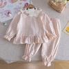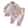 Conjunto de pijama de dos piezas para niña princesa de primavera otoño 2025, estilo coreano de un solo botón, para estar en casa, pijama de bebé con dibujos animados