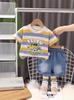 Traje de Verano para Niño 2025 Nuevo Ropa Infantil a Rayas Moda Conjunto de Verano de Dos Piezas de Manga Corta Verano Manga Corta Dibujos Animados Tendencia