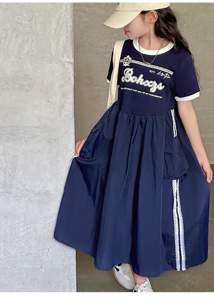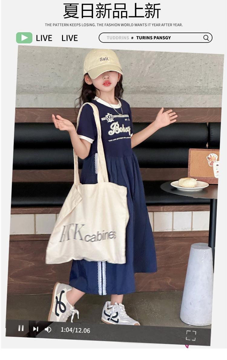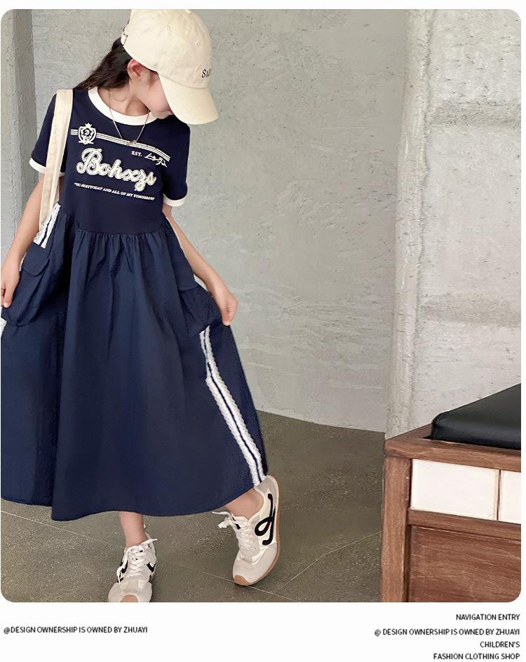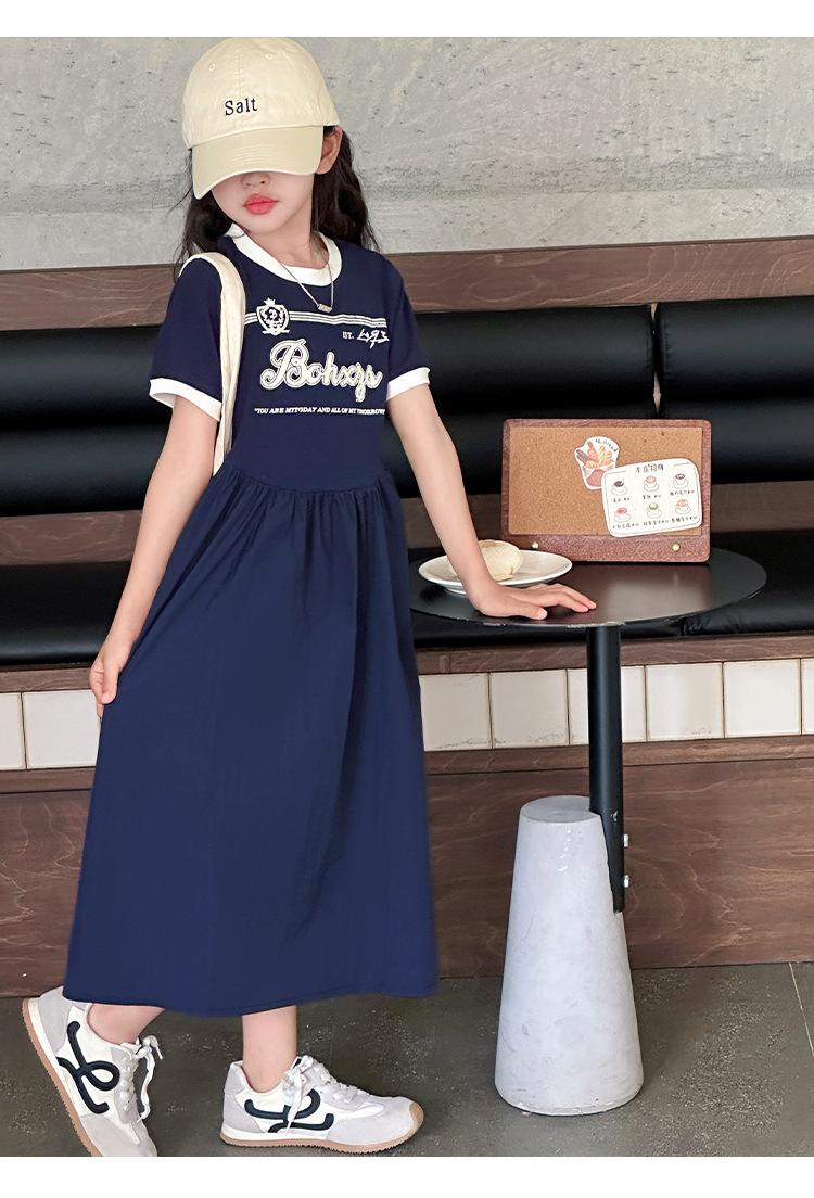 Vestido de Verano para Niñas 2025 Nuevo Estilo Estilo Infantil Mediano y Grande Vestido de Princesa de Manga Corta para Niña Vestido de Verano para Niños