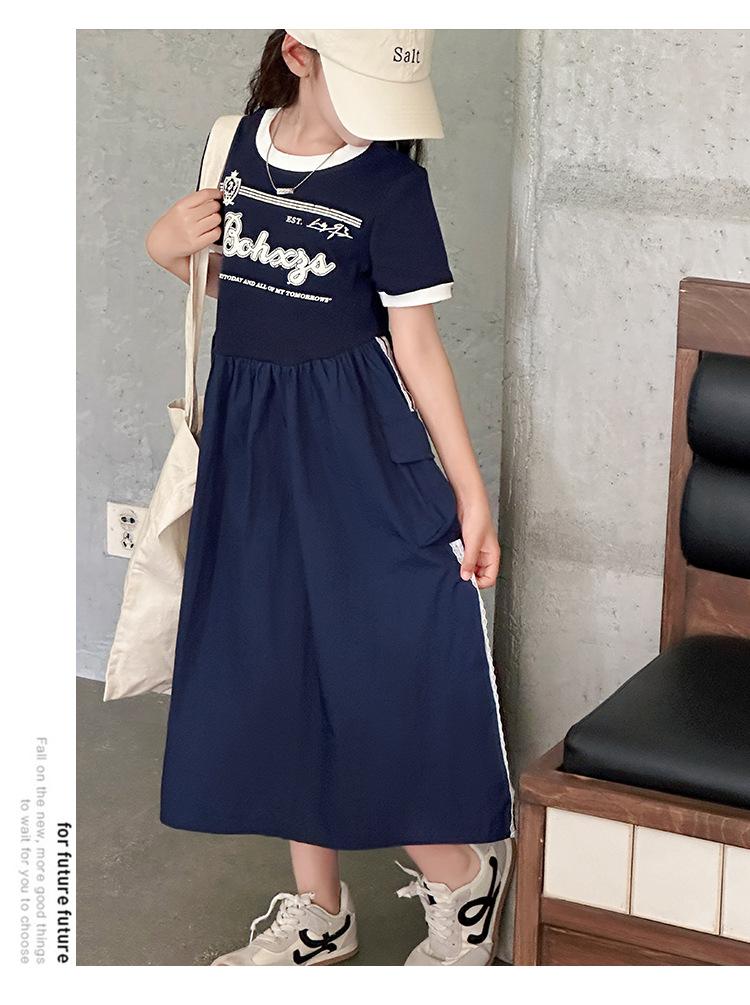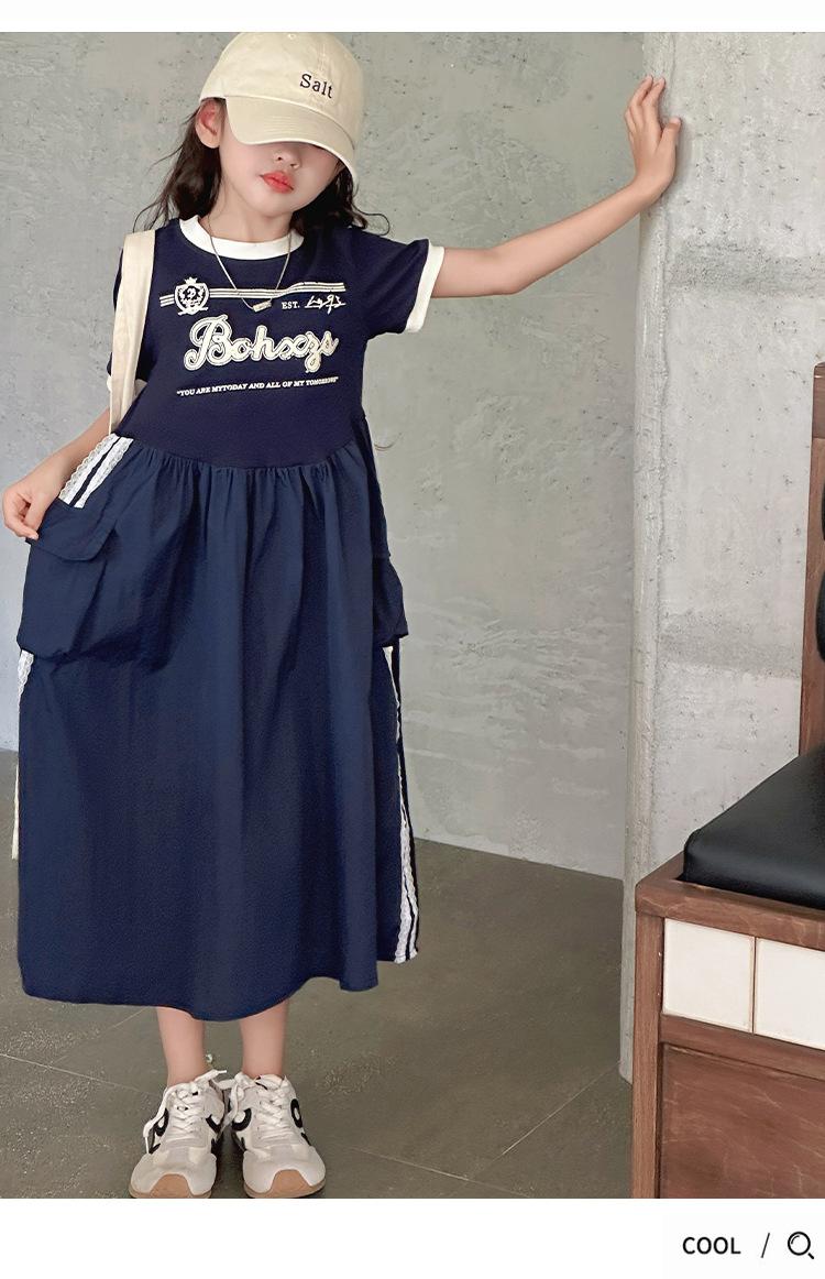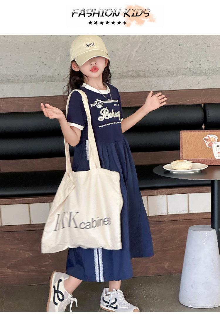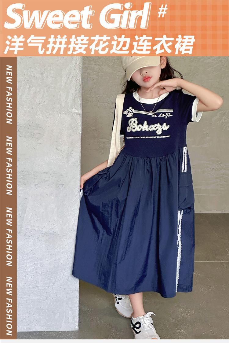 Vestido de Verano para Niñas 2025 Nuevo Estilo Estilo Infantil Mediano y Grande Vestido de Princesa de Manga Corta para Niña Vestido de Verano para Niños