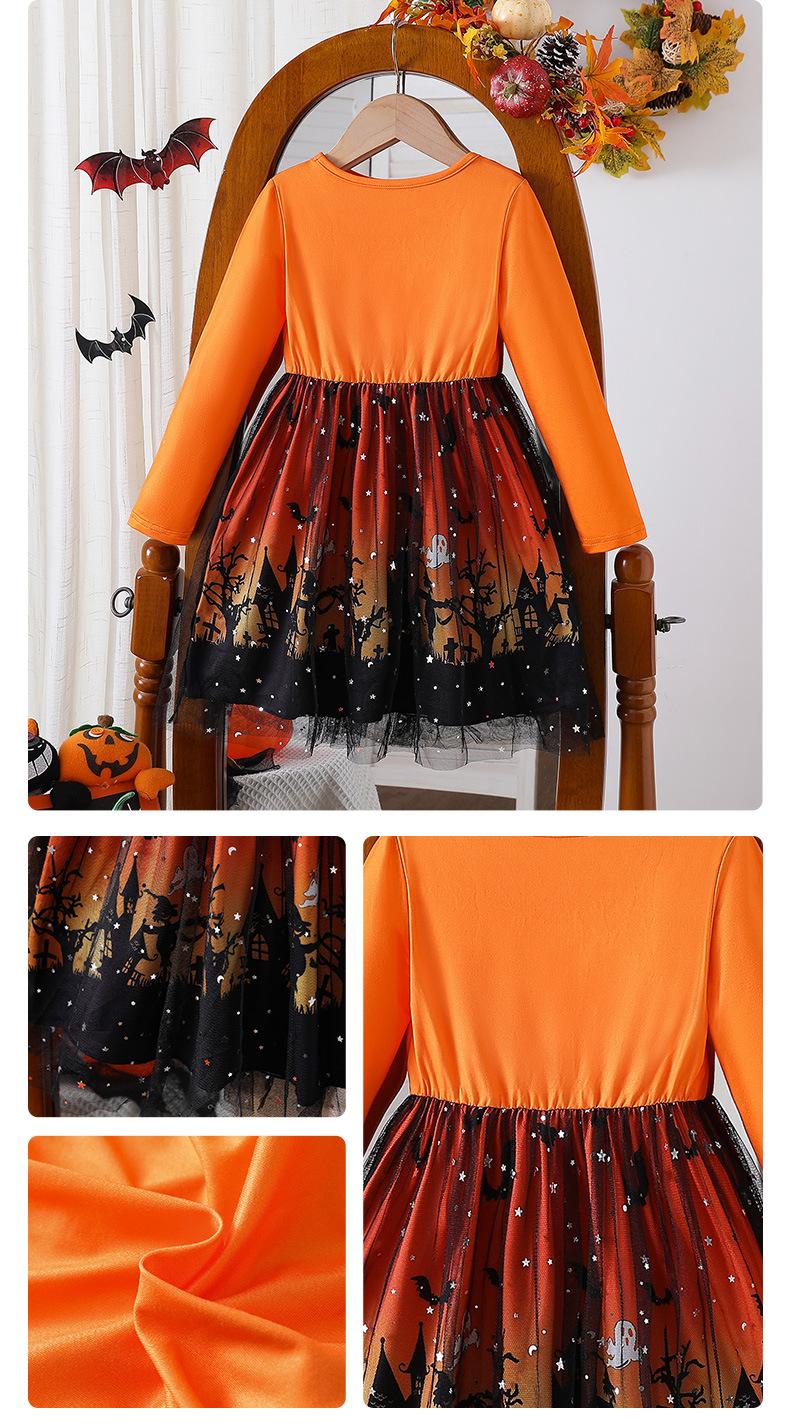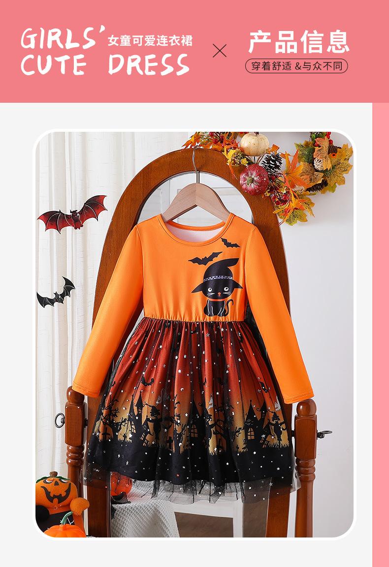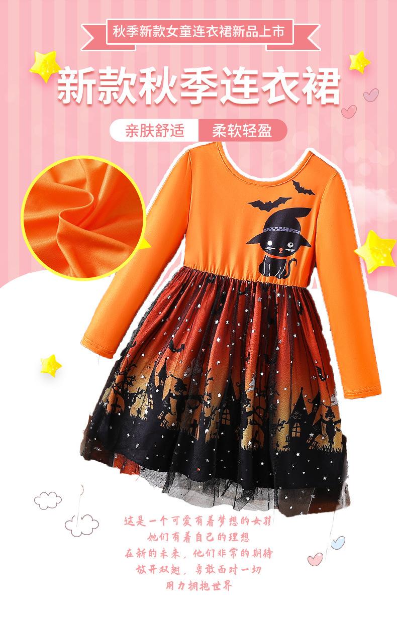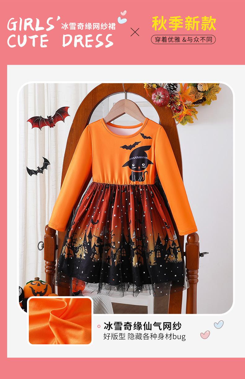 Ropa Infantil Europea y Americana Ropa Infantil Otoño Nuevo Halloween Vestido de Malla de Murciélago de Manga Larga de Estilo Festivo Lindo para Niñas Tendencia