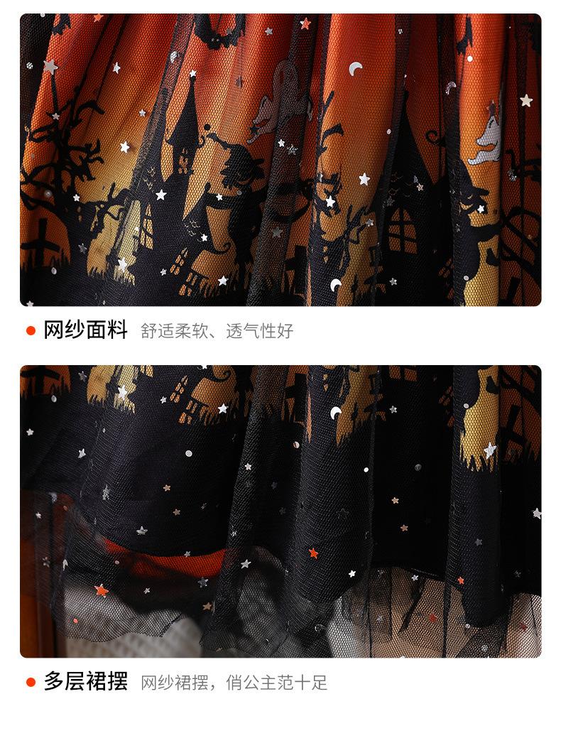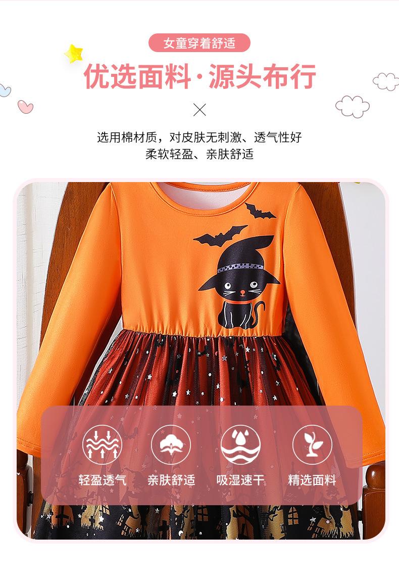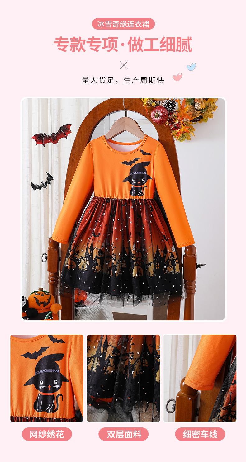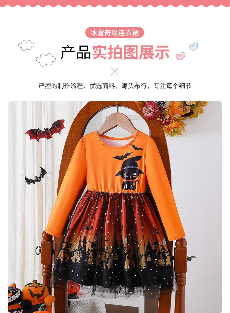 Ropa Infantil Europea y Americana Ropa Infantil Otoño Nuevo Halloween Vestido de Malla de Murciélago de Manga Larga de Estilo Festivo Lindo para Niñas Tendencia