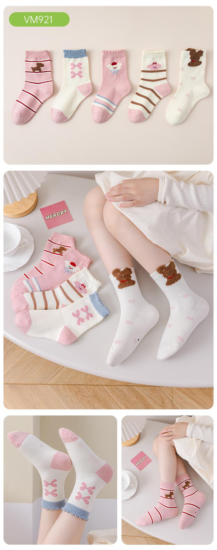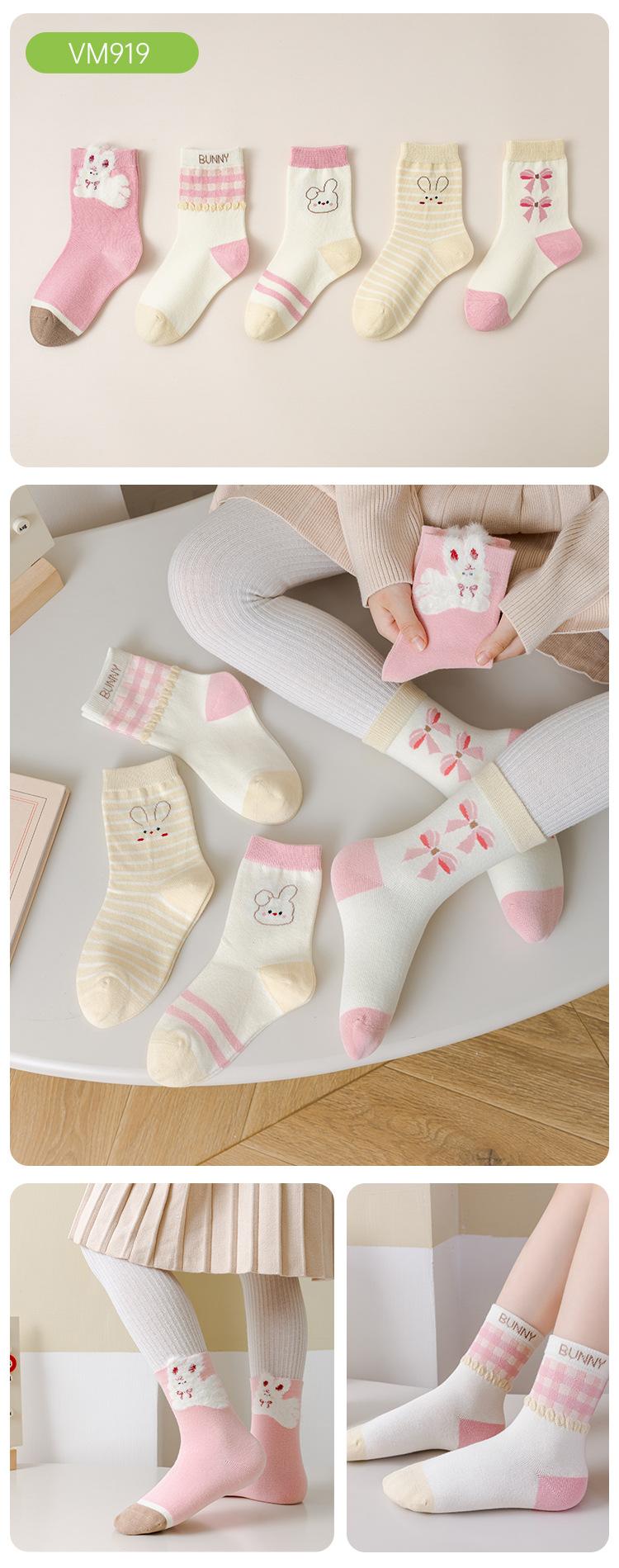 Otoño e invierno nuevos calcetines para niños calcetines de conejito calcetines de dibujos animados para niñas calcetines de algodón peinado sin costuras para estudiantes calcetines de media pantorrilla para niñas de clase A