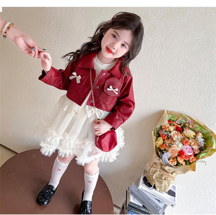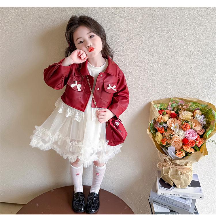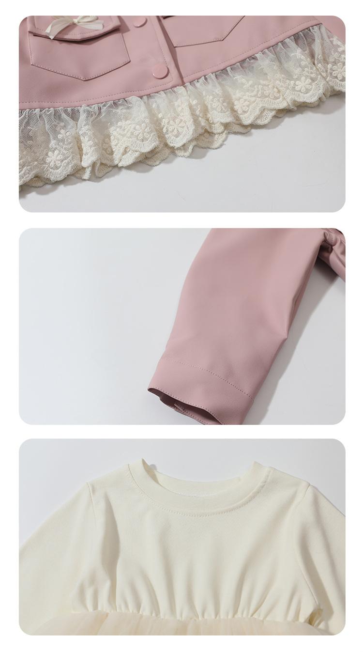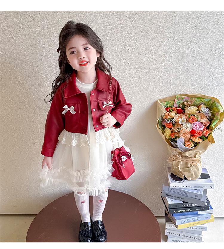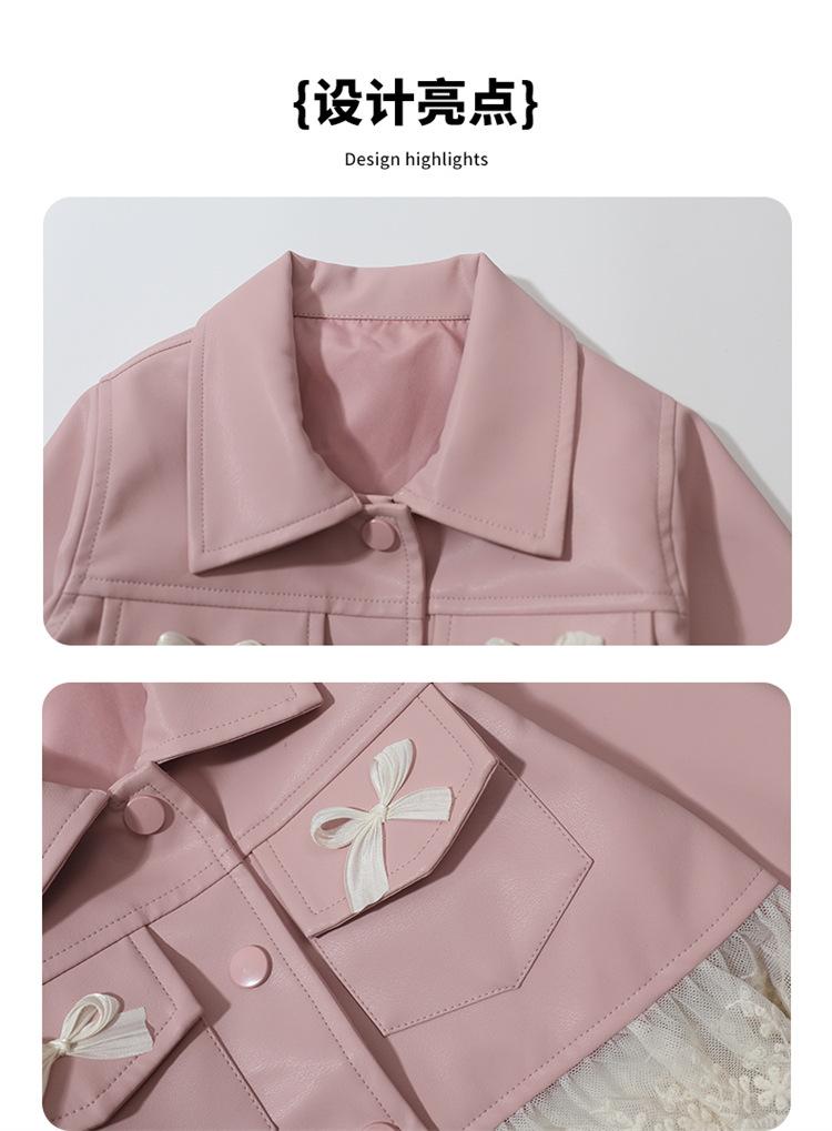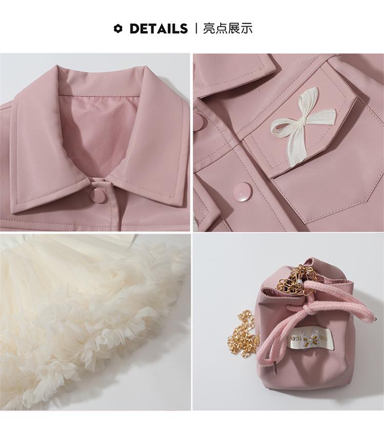 red leather jacket + skirt + bag, Pink leather jacket+skirt+bag