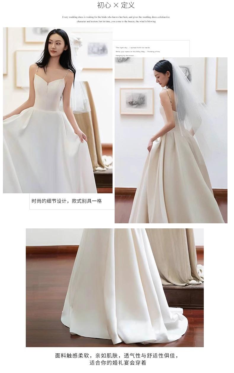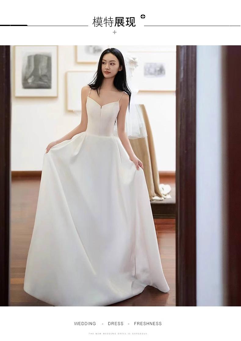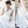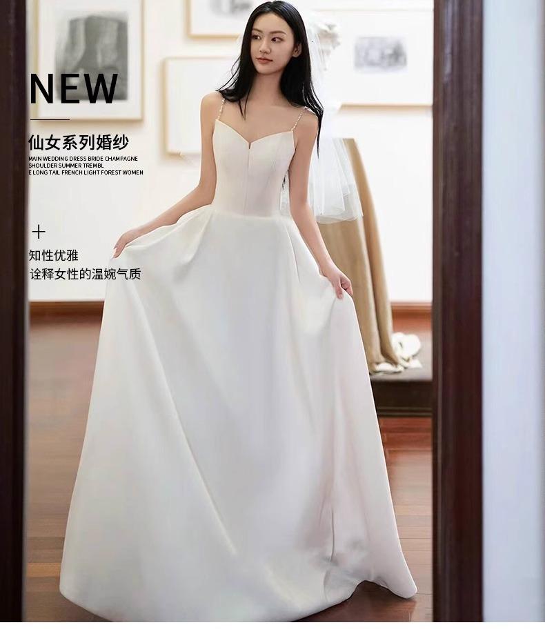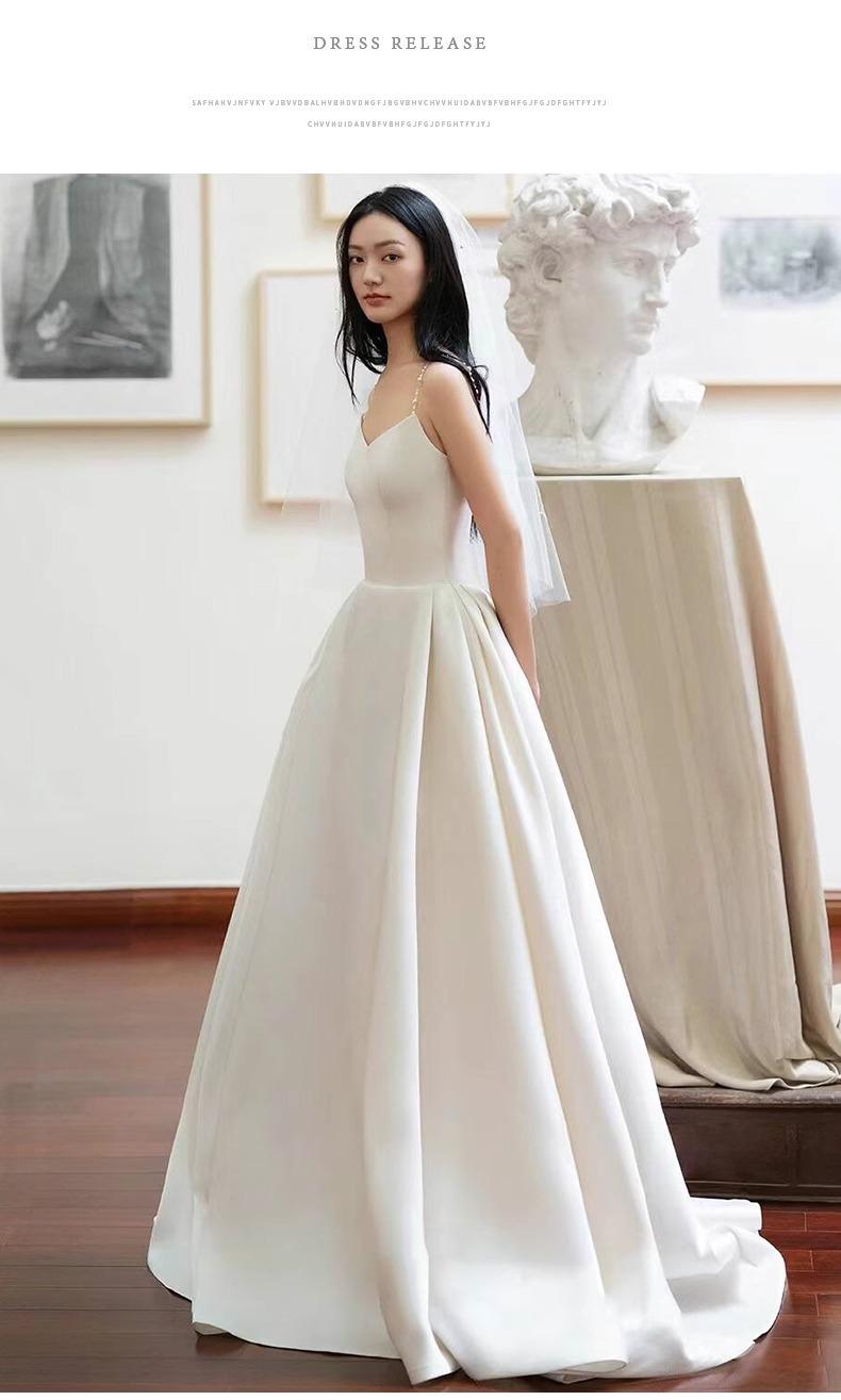 Vestido de Novia Principal de Satén con Cola Larga 2025 Nuevo Césped Fotografía de Viaje Estilo Hada Vestido de Bienvenida con Tirantes para Mujer