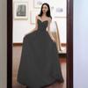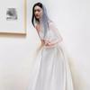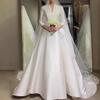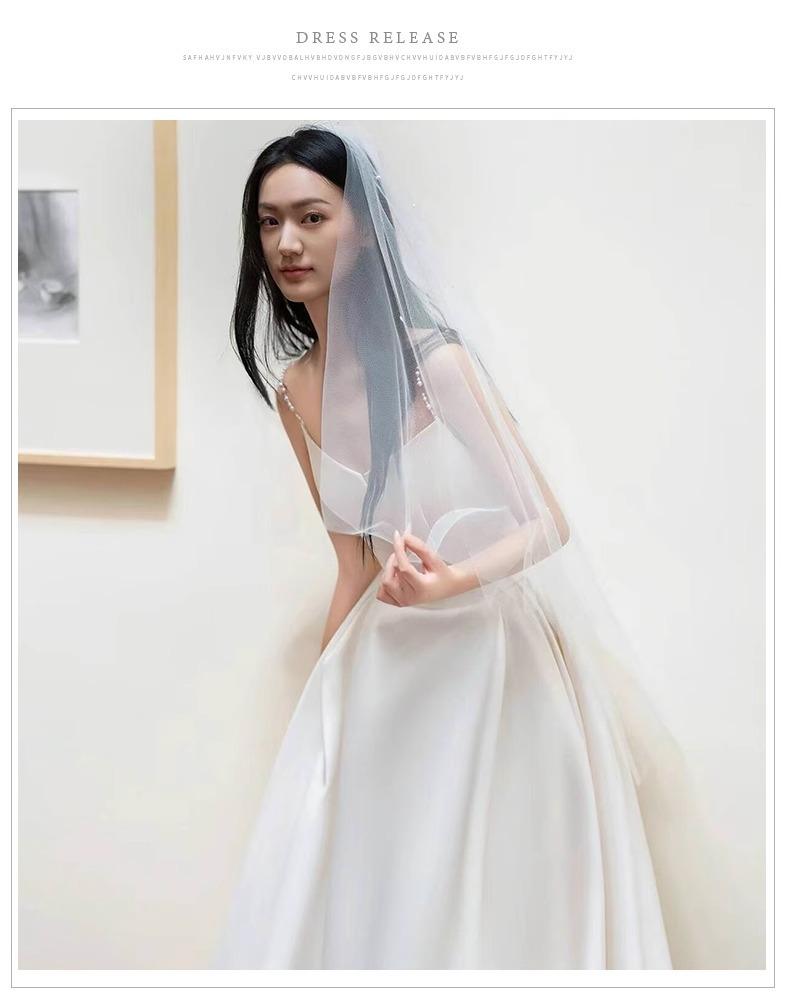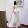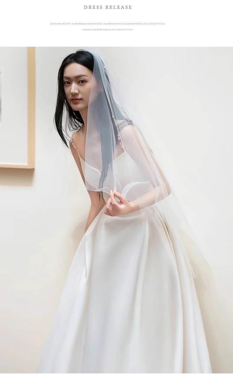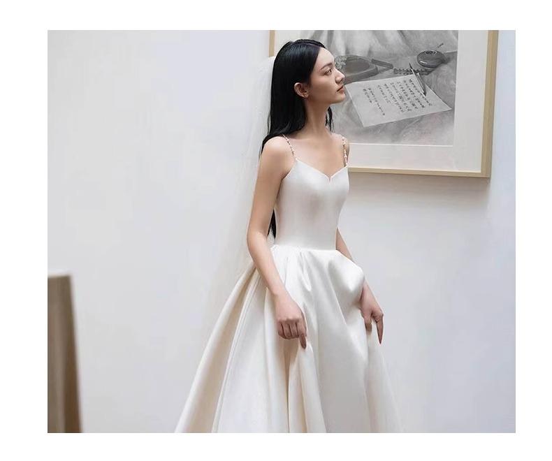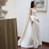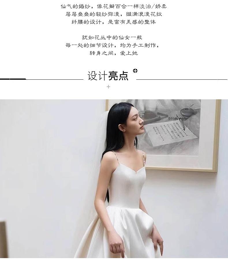 Vestido de Novia Principal de Satén con Cola Larga 2025 Nuevo Césped Fotografía de Viaje Estilo Hada Vestido de Bienvenida con Tirantes para Mujer