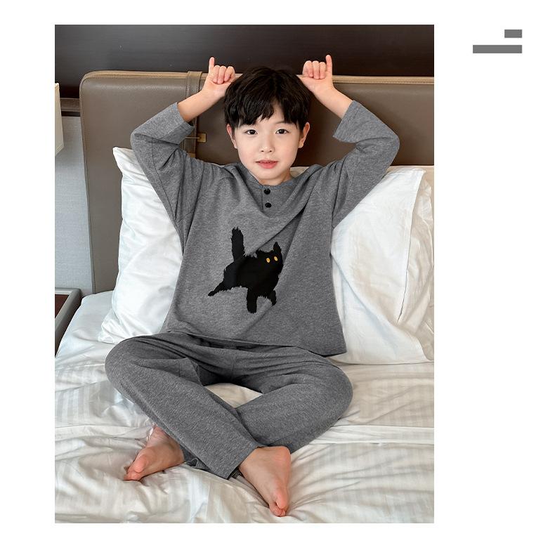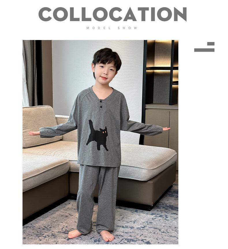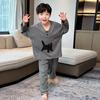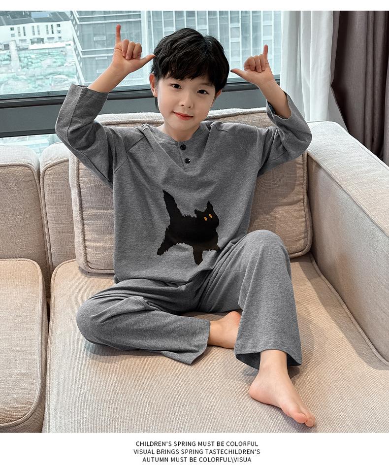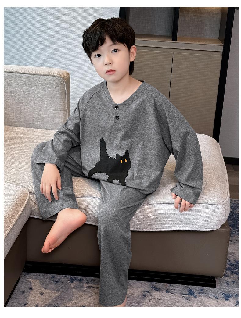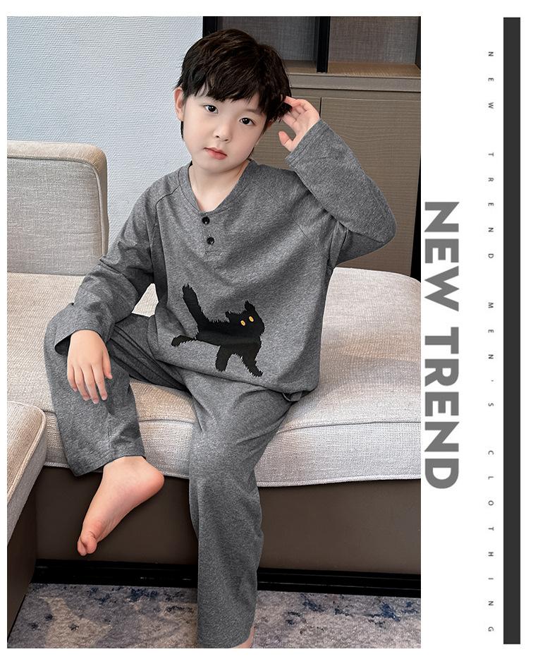 Pijama para niños otoño 2025 de algodón puro de manga larga para niños medianos y grandes, con diseño de panda pequeño, ropa casual infantil para bebé, ropa para estar en casa