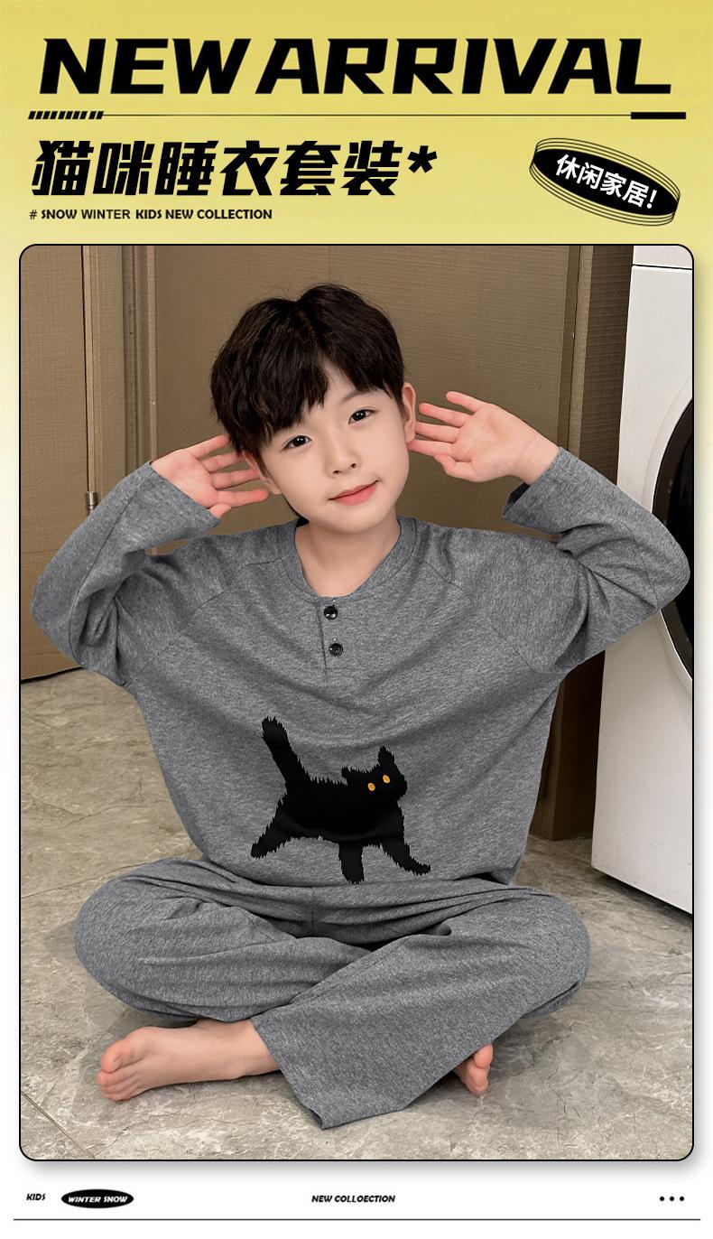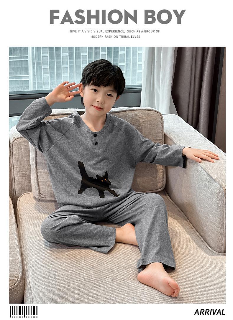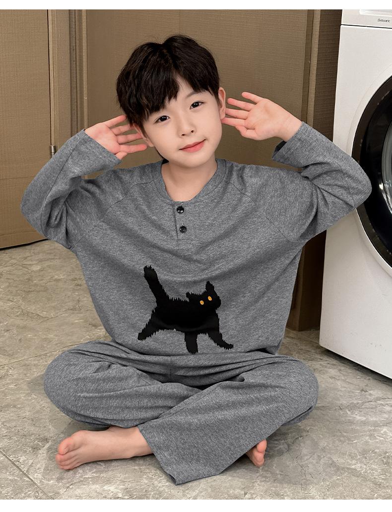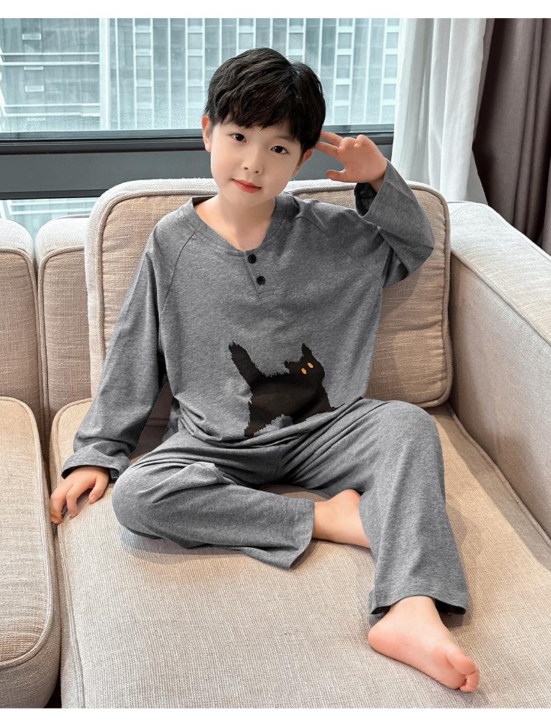 Pijama para niños otoño 2025 de algodón puro de manga larga para niños medianos y grandes, con diseño de panda pequeño, ropa casual infantil para bebé, ropa para estar en casa