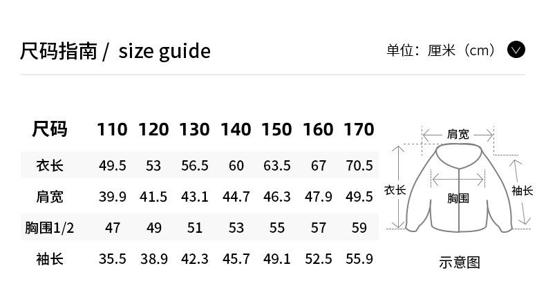 110cm, 120cm, 130cm, 140cm, 150cm, 160cm, 170cm