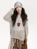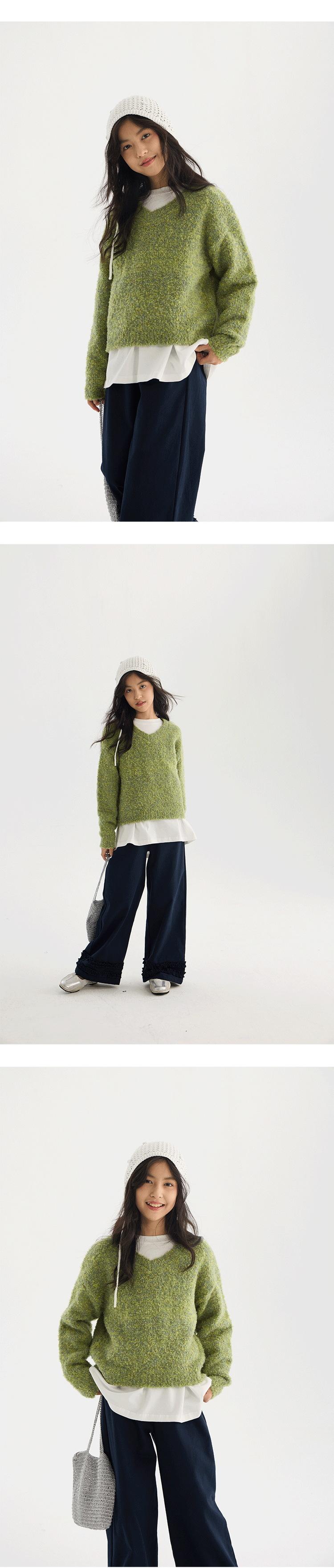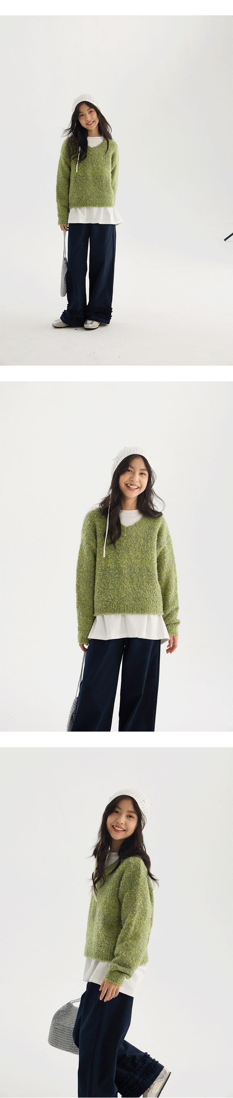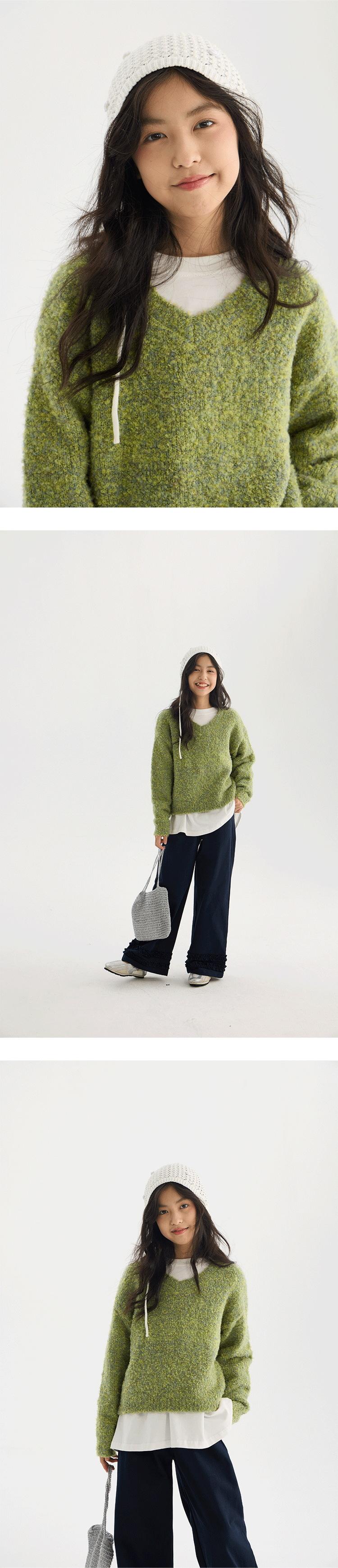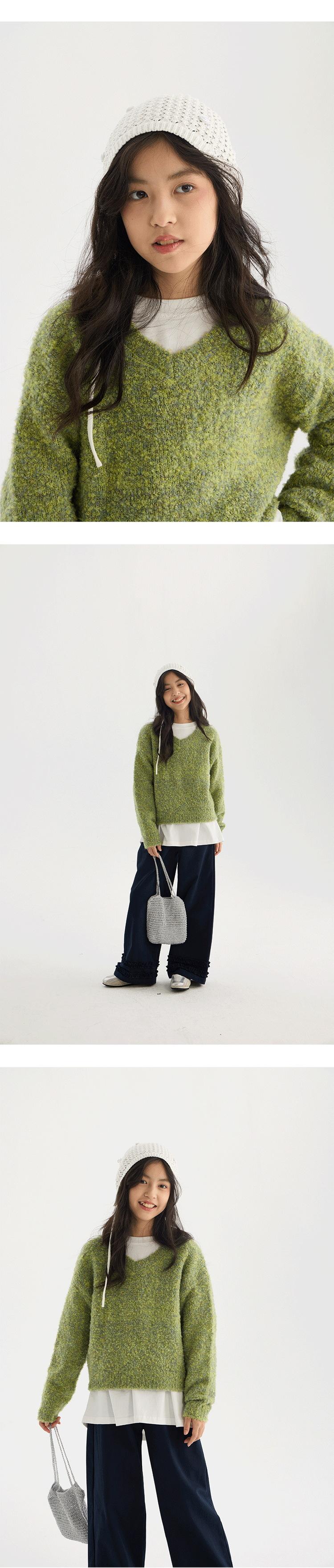 Suéter de Punto con Cuello en V de Hilo Jaspeado para Niñas 2025 Otoño Nuevo Top Corto de Punto Estilo Coreano para Niños Top Retro Holgazán