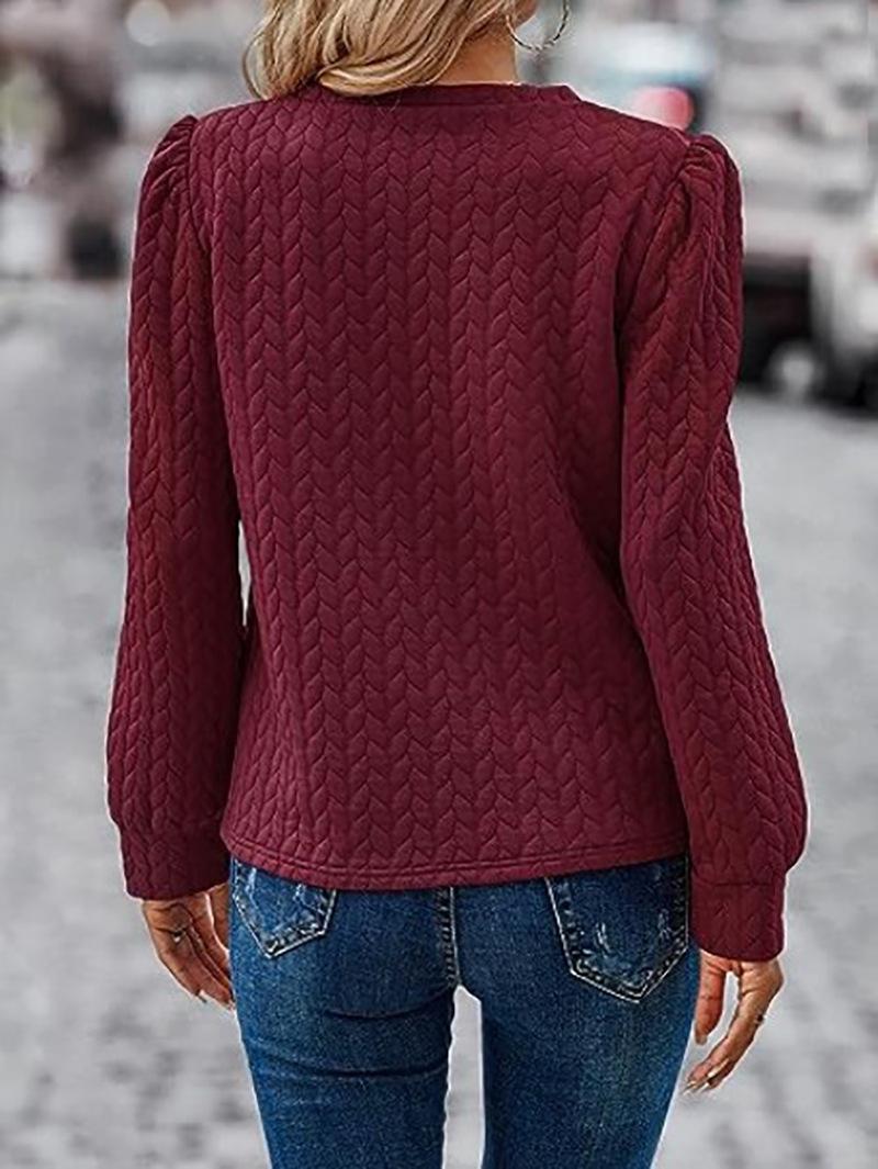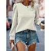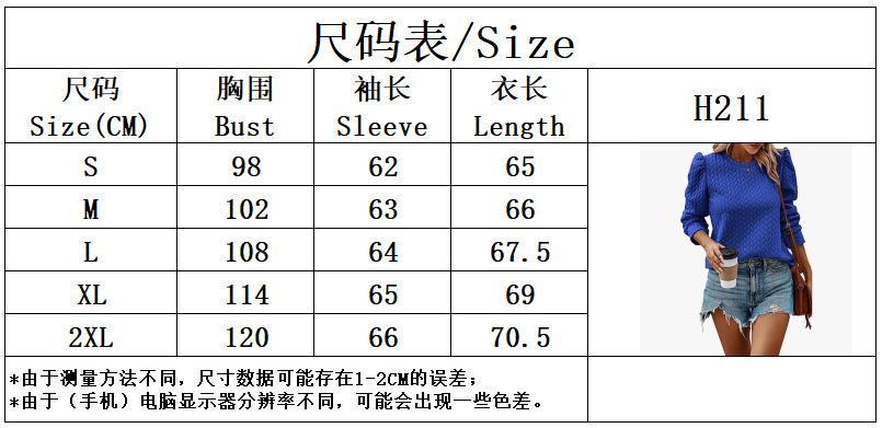 Ropa de mujer transfronteriza europea y americana 2025 Amazon otoño e invierno nuevo top de manga larga abullonada de cuello redondo suéter de punto de aire