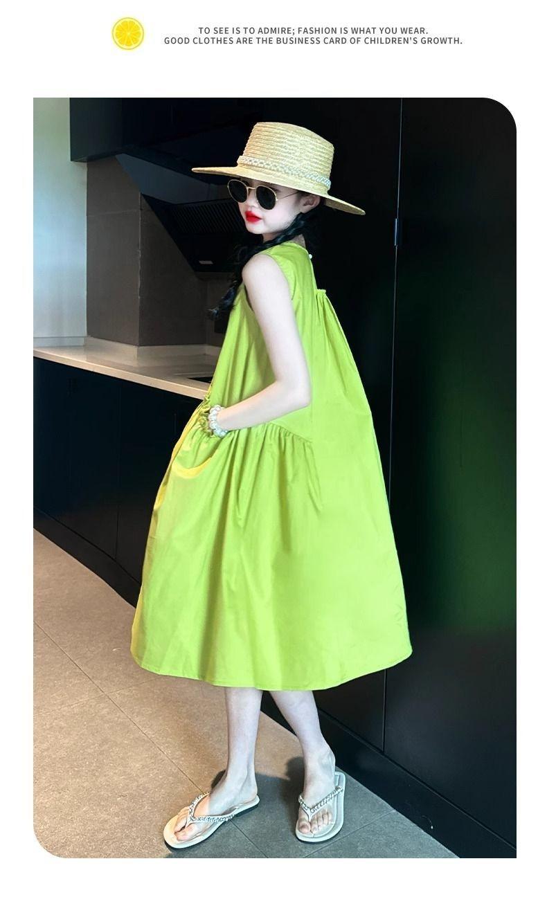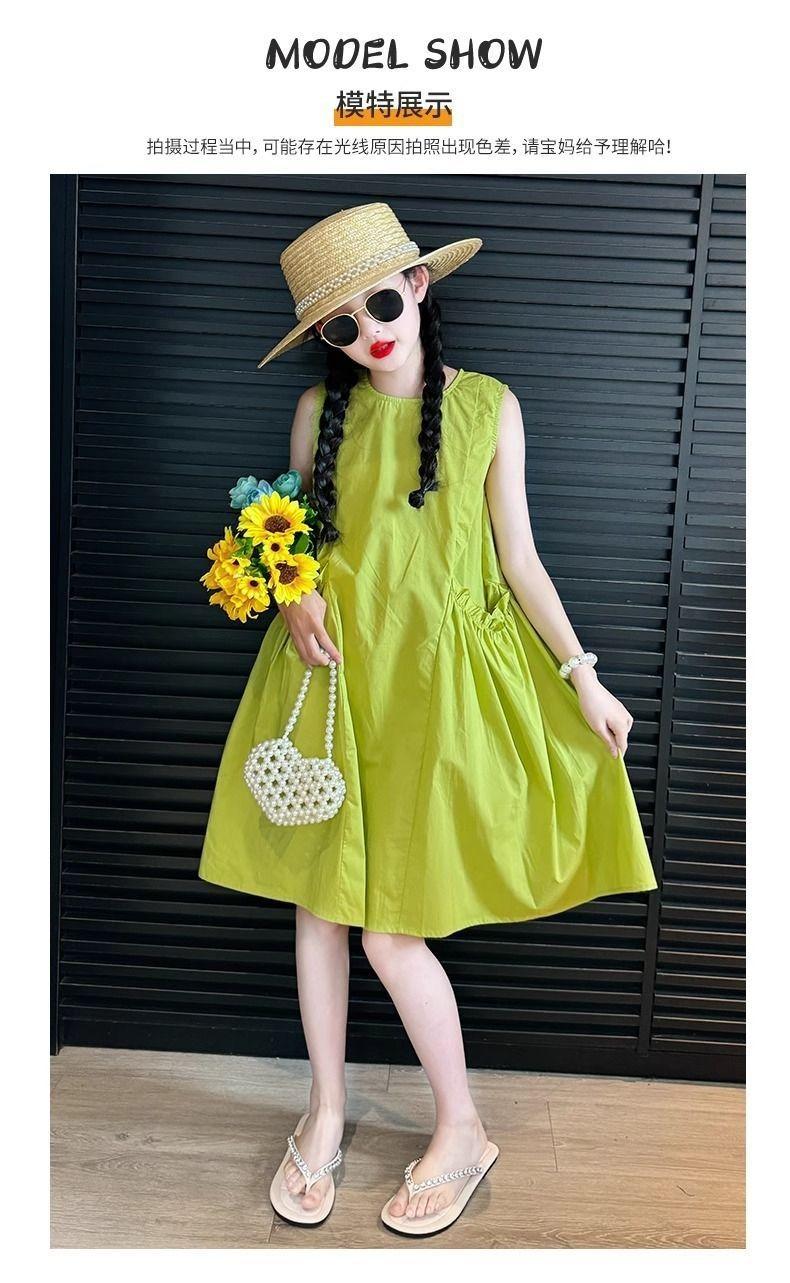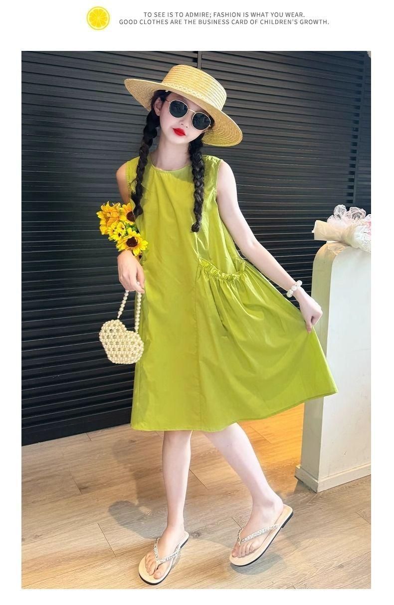 Vestido de Verano para Niña 2025 Nuevo Estilo Moda Vestido sin Mangas para Niña Fresco Ropa de Verano para Niños Grandes Vestido Delgado