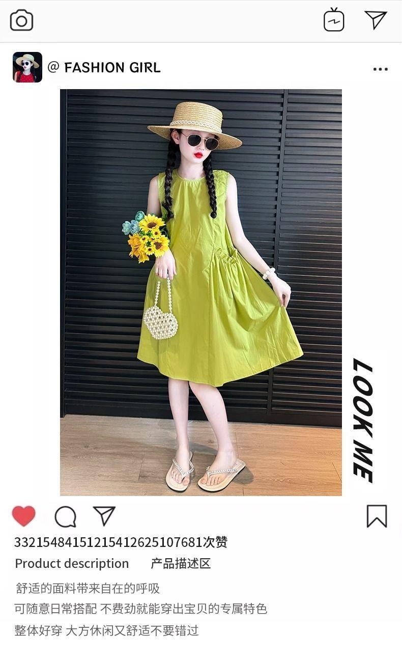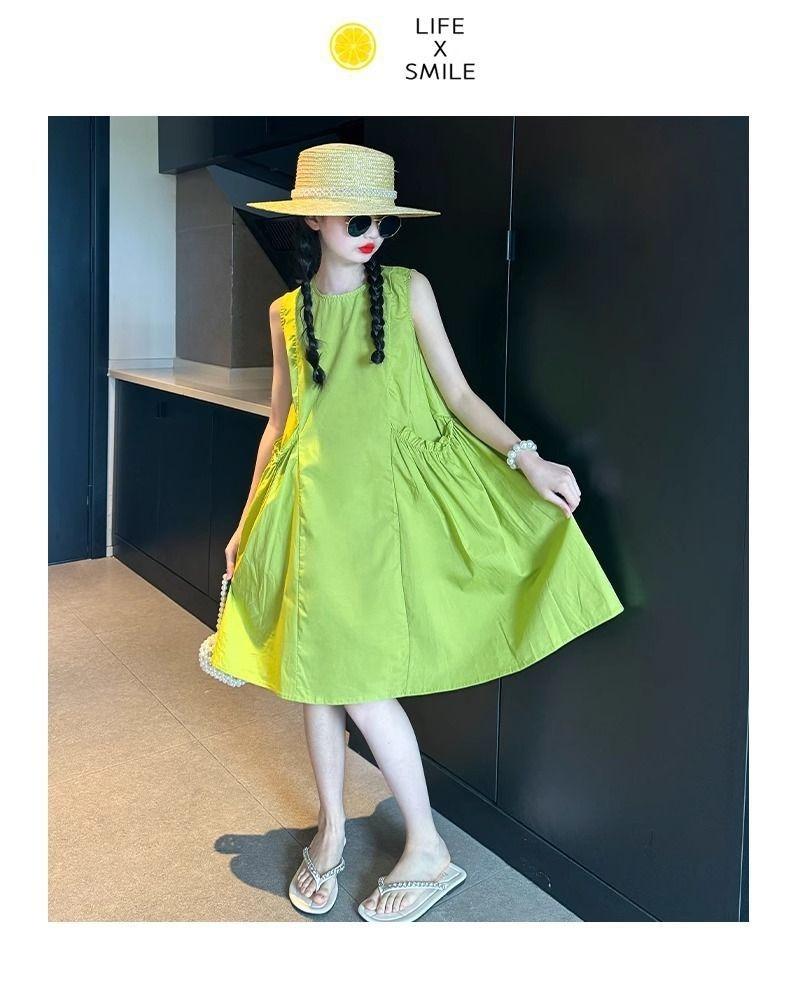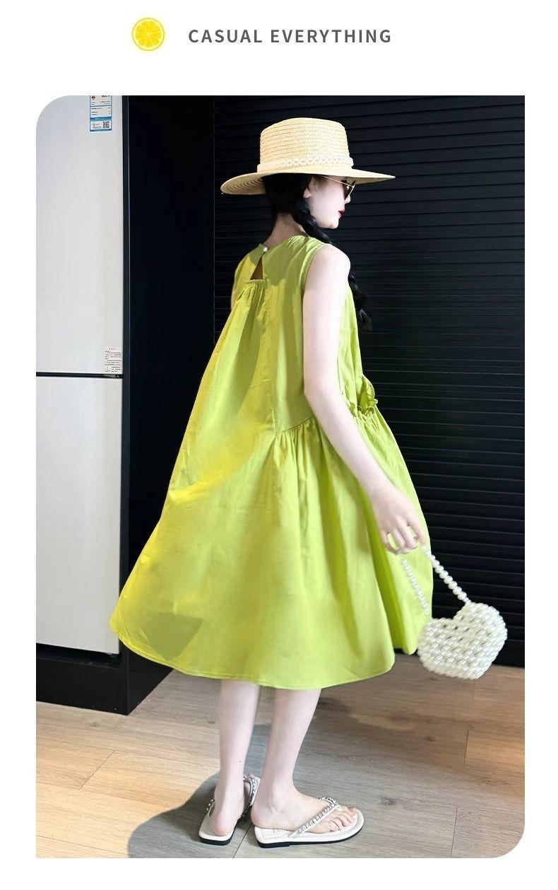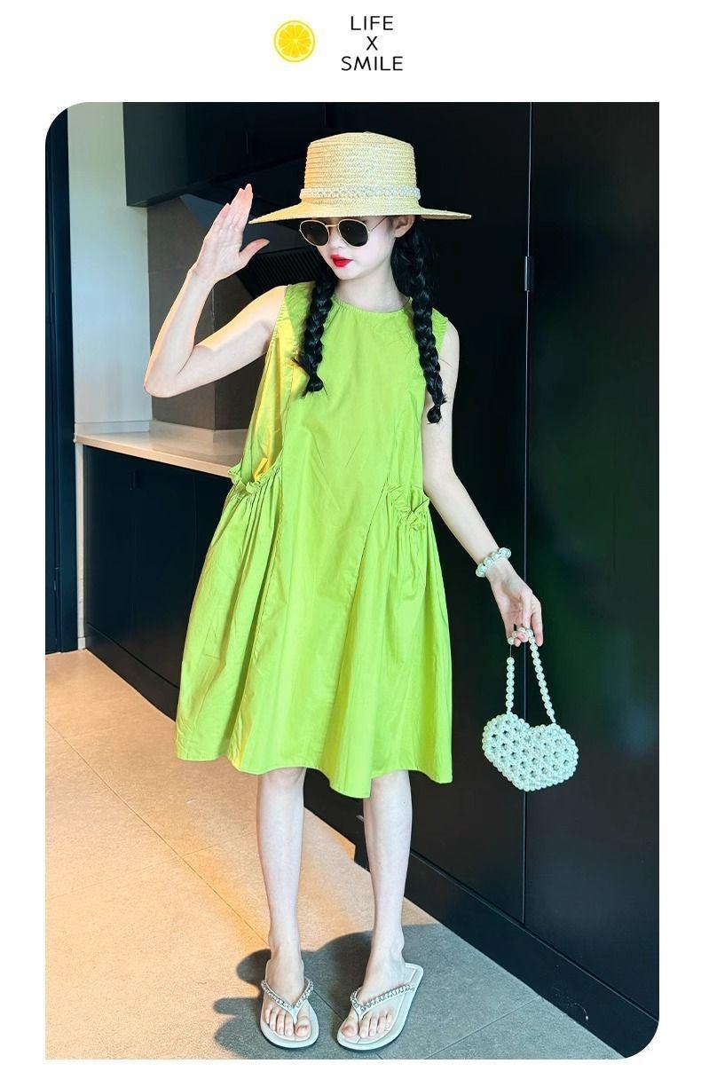 Vestido de Verano para Niña 2025 Nuevo Estilo Moda Vestido sin Mangas para Niña Fresco Ropa de Verano para Niños Grandes Vestido Delgado