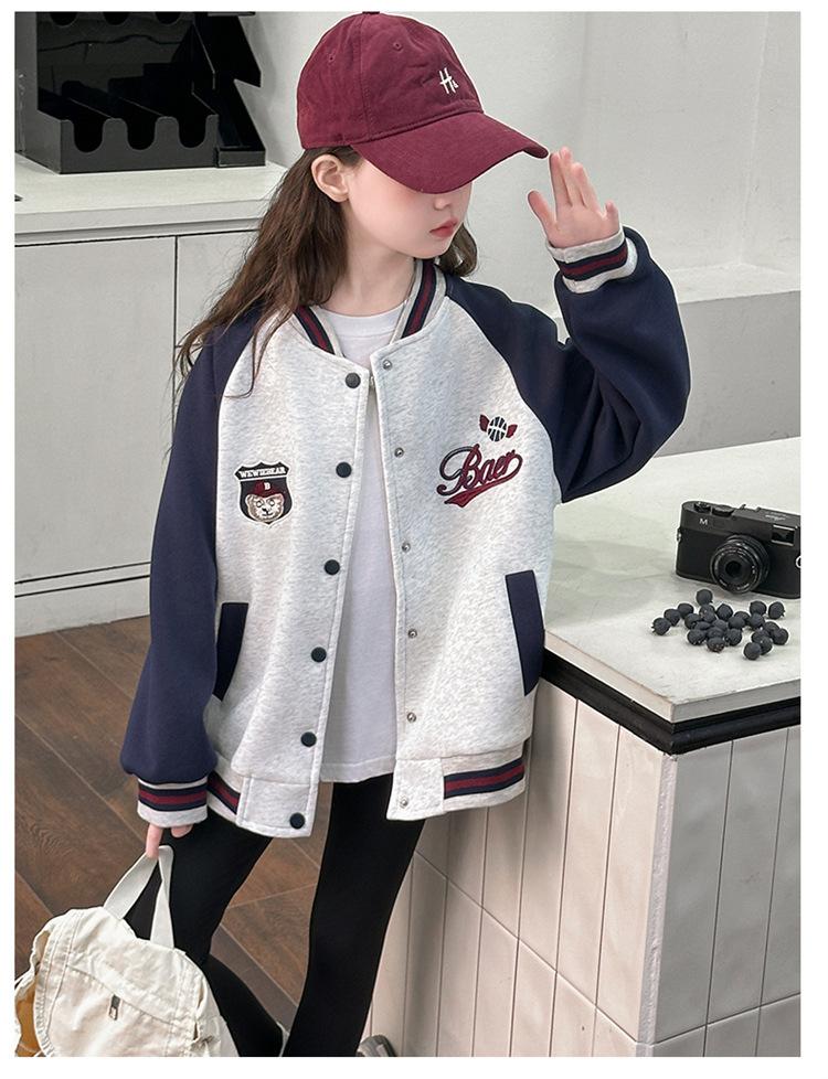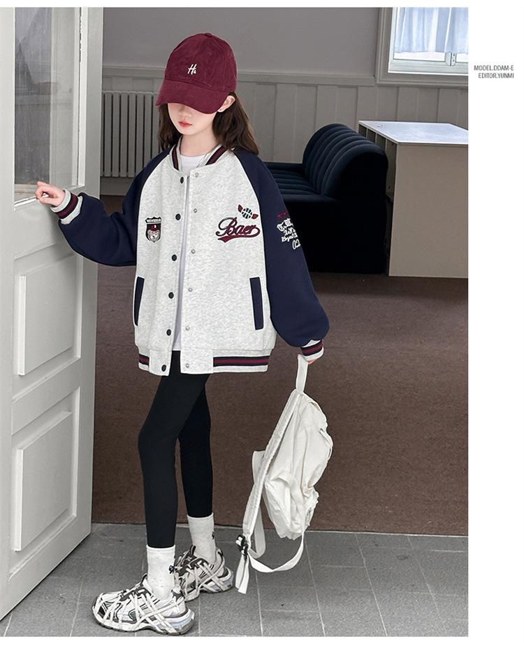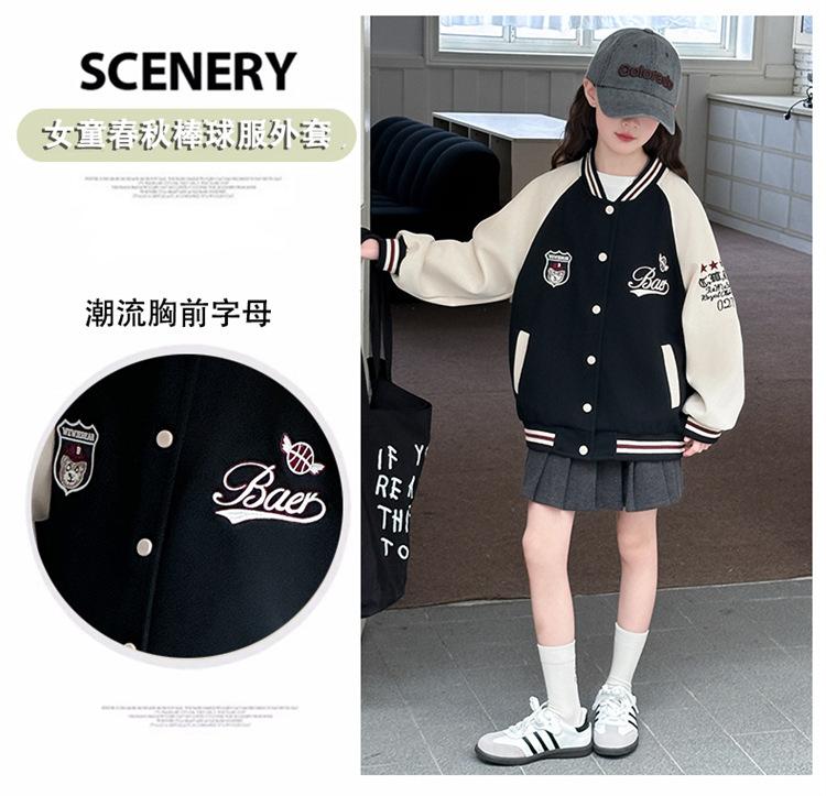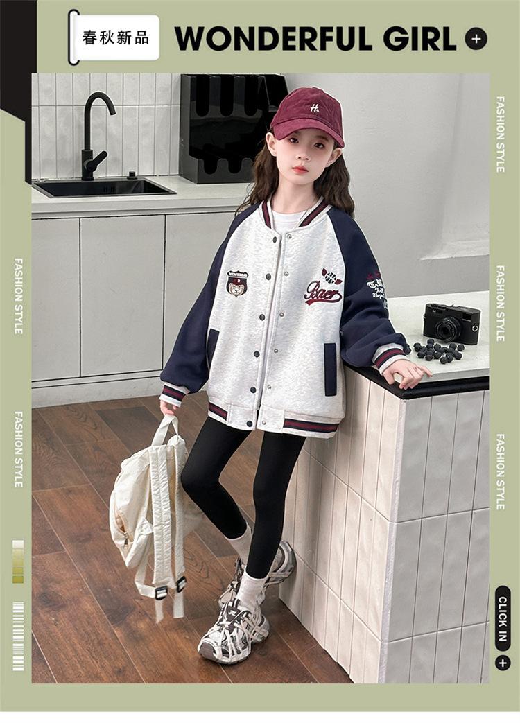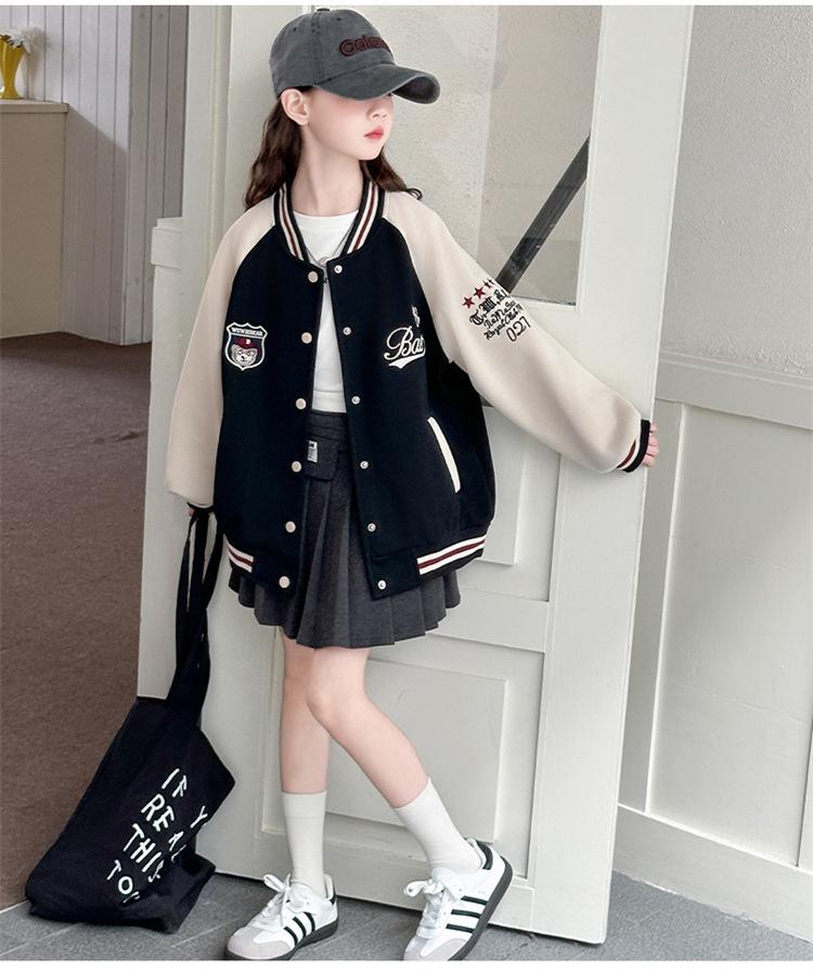Abrigo para niñas Primavera y Otoño 2025 Nuevo Top de Celebridad de Internet Estilo Occidental para Niños Medianos y Grandes Ropa de Béisbol de Primavera de Calle Frita