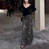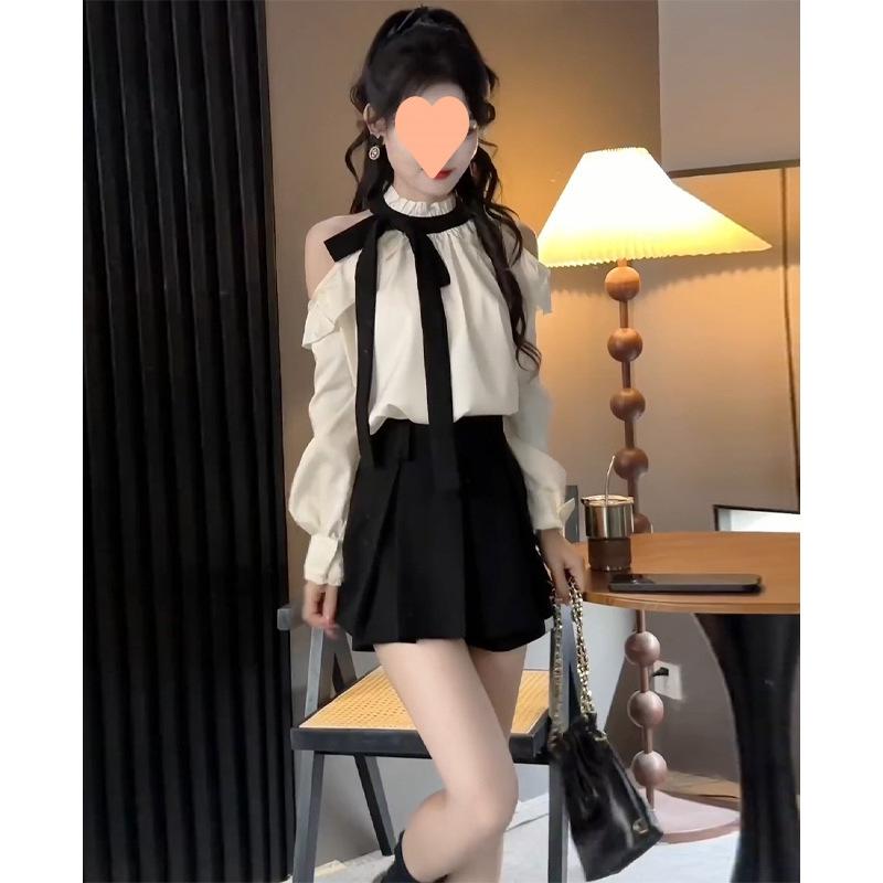 Conjunto a juego estilo francés Falda Mujer 2025 Nuevo Ropa de Mujer Diseño Sensual Camisa Top Hombro Descubierto Falda Midi Conjunto de Dos Piezas Moderno