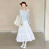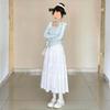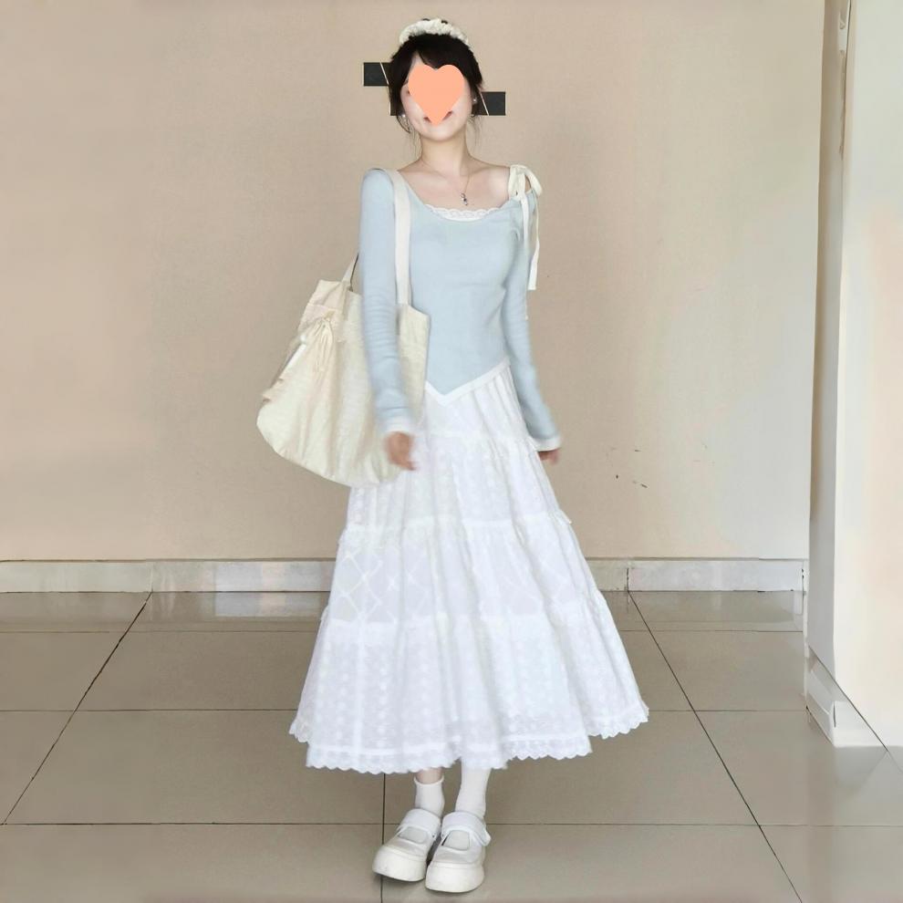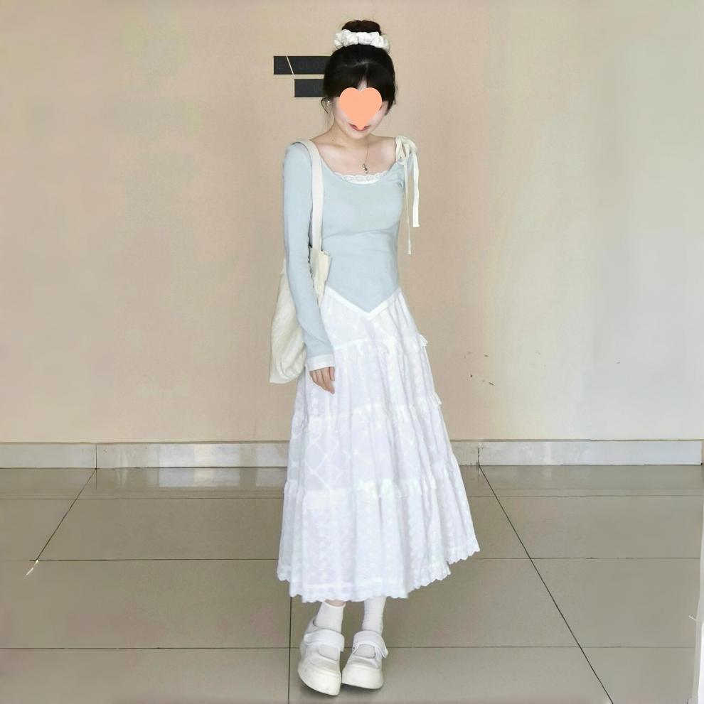 Camiseta de temperamento francés puro y suave irregular de dos piezas falsas para mujer falda blanca media falda de pastel otoño e invierno
