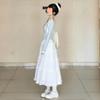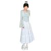 One-piece blue top, One-piece white skirt, Top + Skirt Set