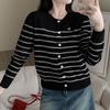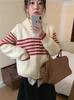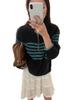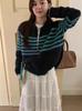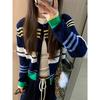 Cárdigan de Punto para Mujer a Rayas Color Block Estilo Holgado Perezoso Suéter para Mujer 2025 Nuevo Manga Larga Otoño Ropa Abrigo