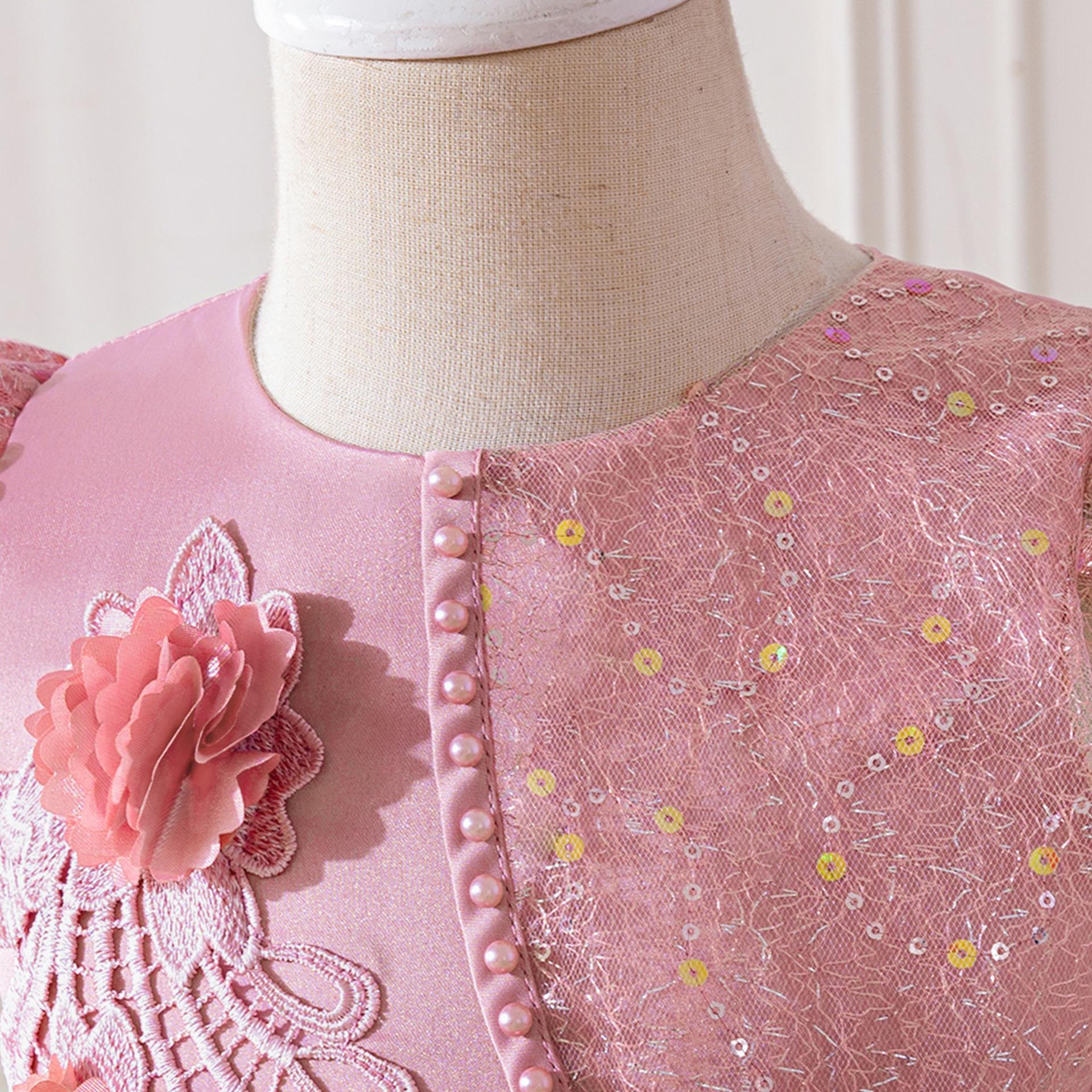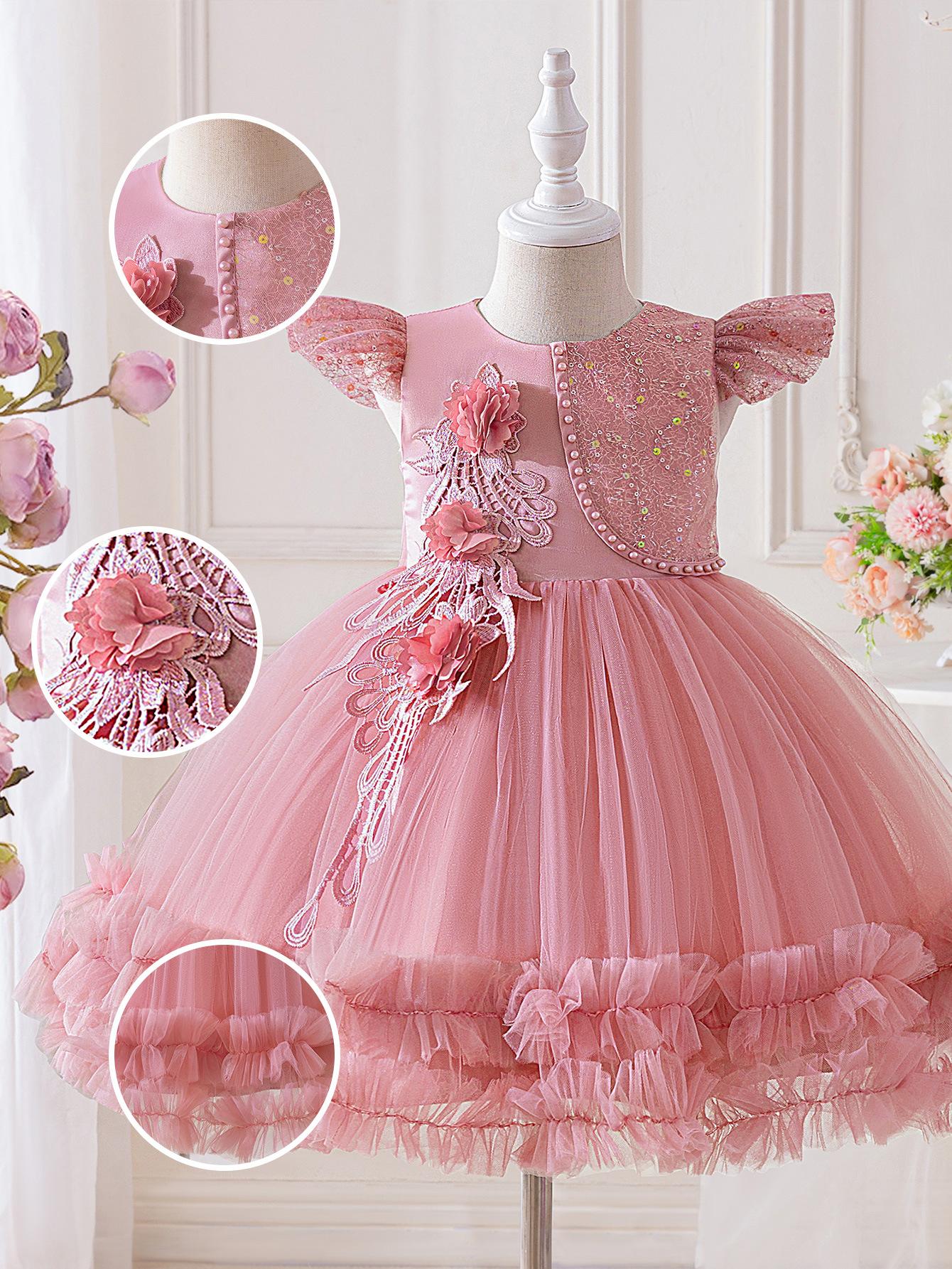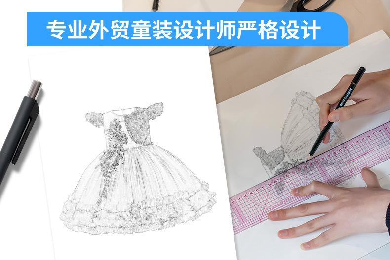 Vestido de niña transfronterizo nuevo vestido formal para niños manga corta abullonada falda de tul abullonada apliques vestido de princesa vestido de noche