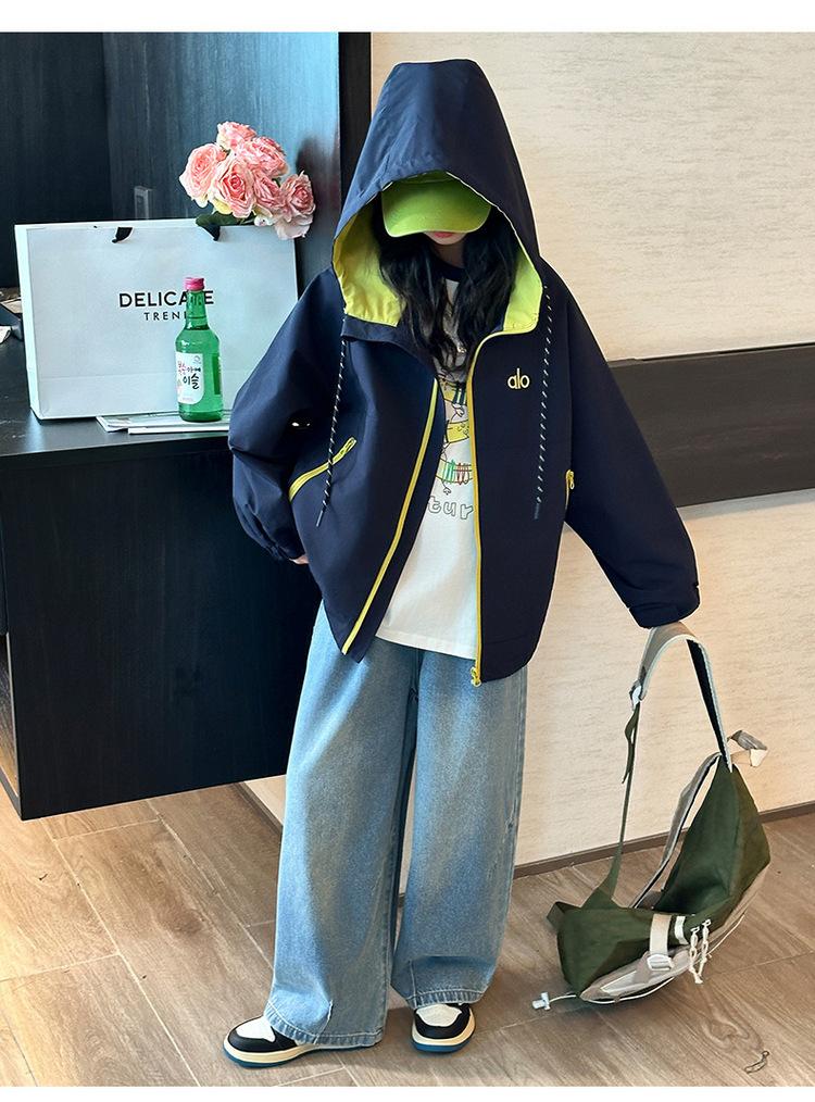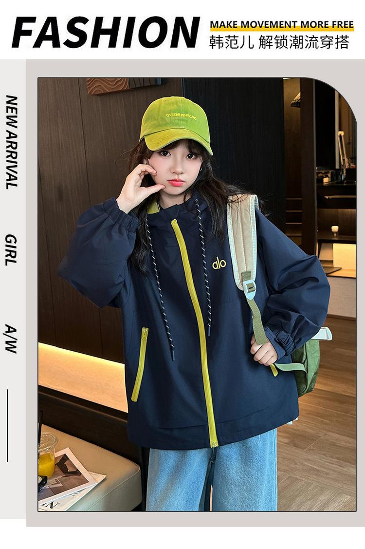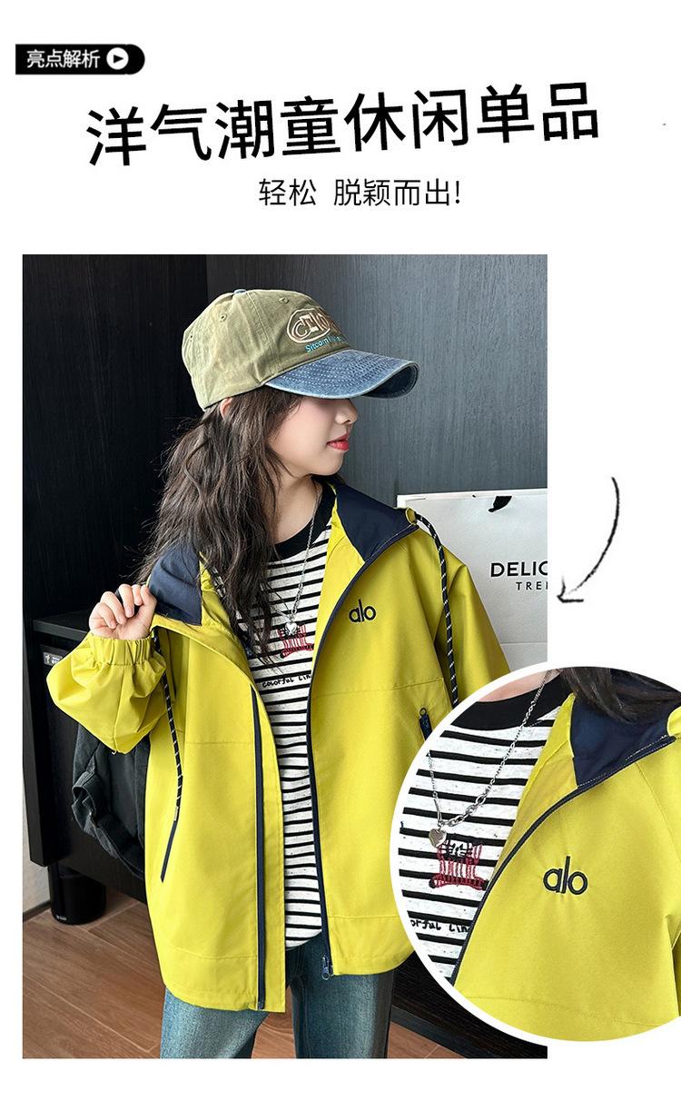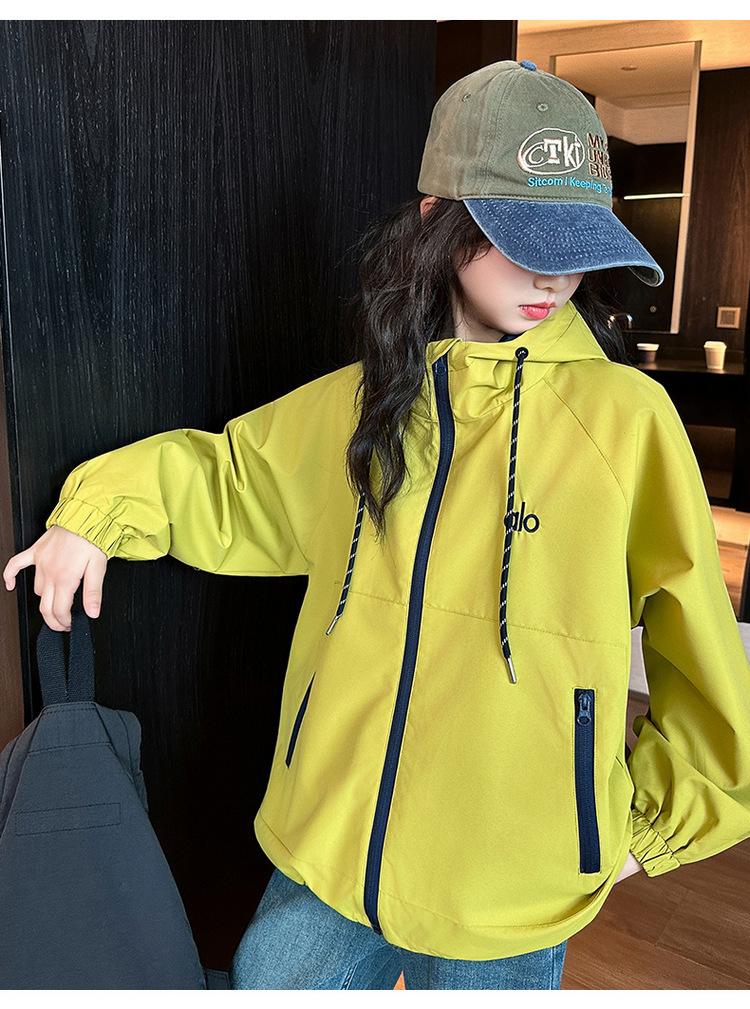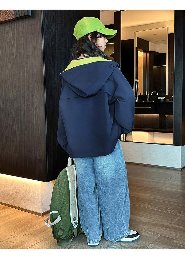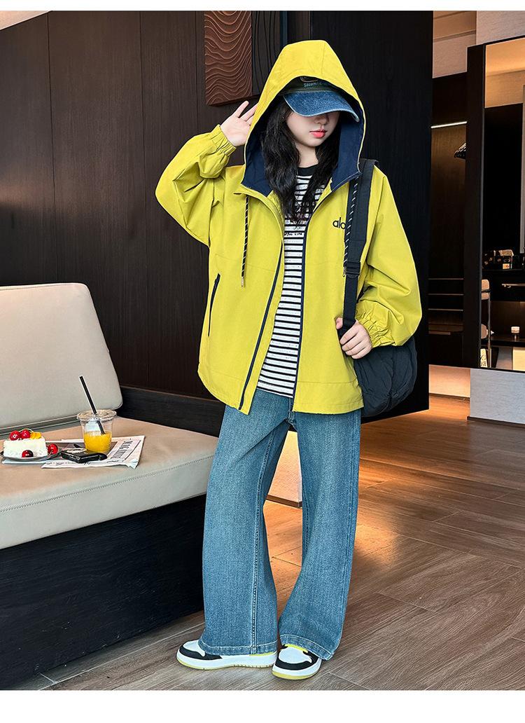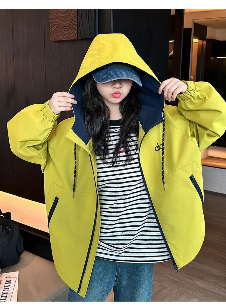 Chaqueta para Niñas Estilo Primavera y Otoño 2025 Nueva Moda Infantil Rompevientos con Capucha para Otoño 10 Niños Medianos y Grandes Top Casual