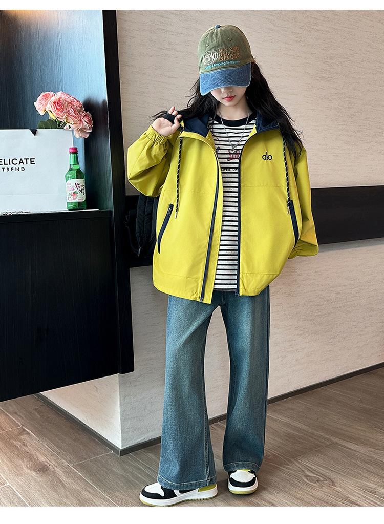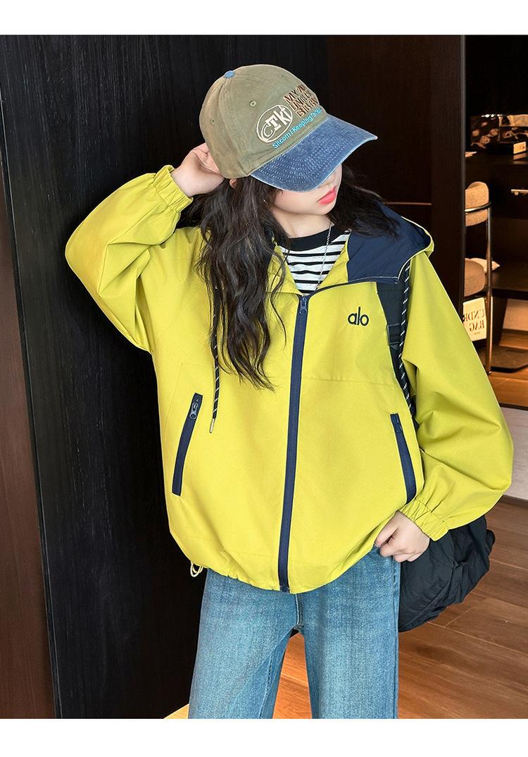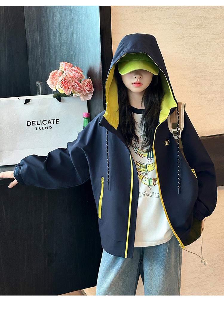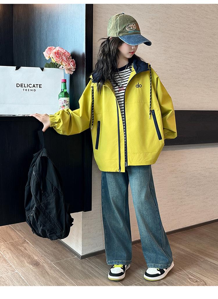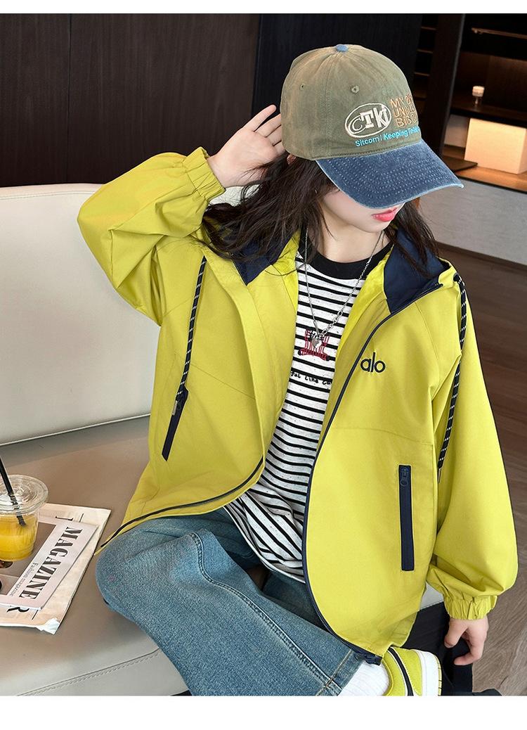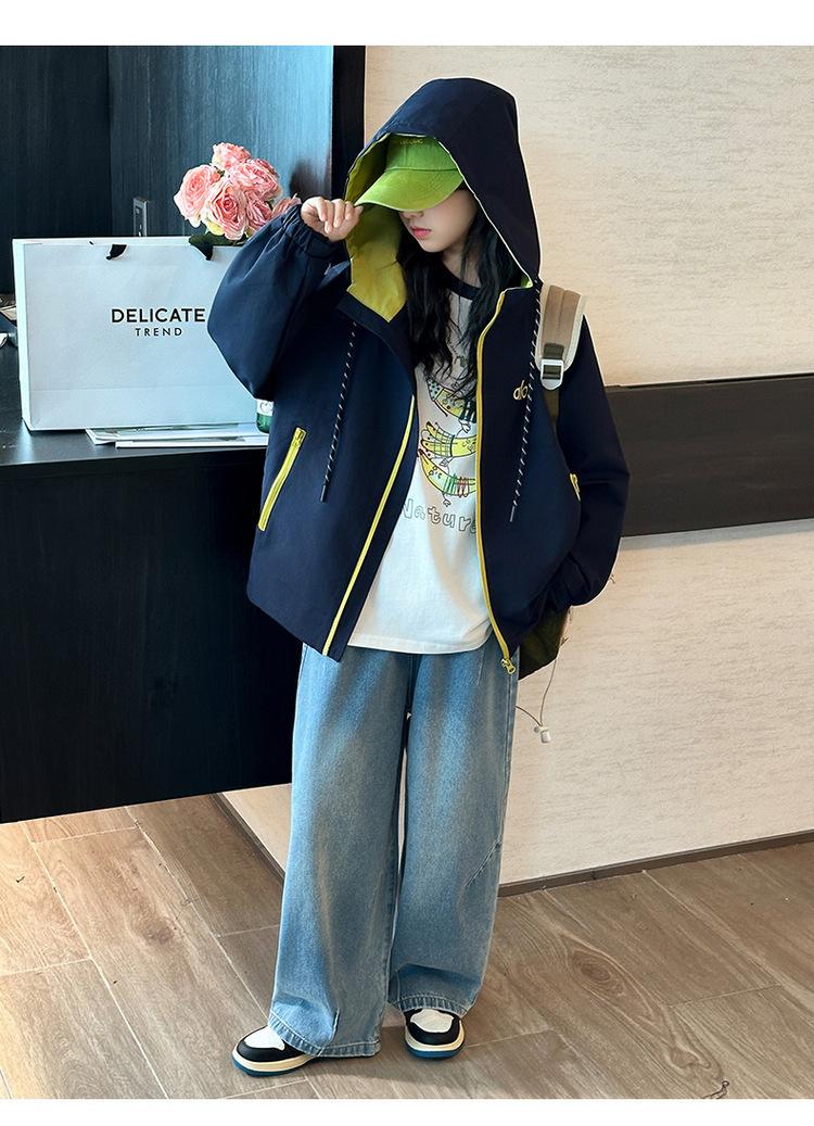 Chaqueta para Niñas Estilo Primavera y Otoño 2025 Nueva Moda Infantil Rompevientos con Capucha para Otoño 10 Niños Medianos y Grandes Top Casual