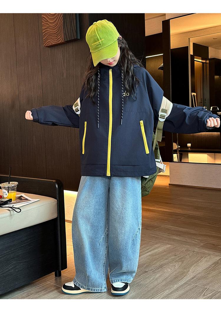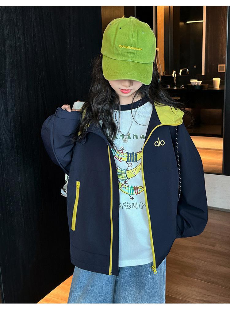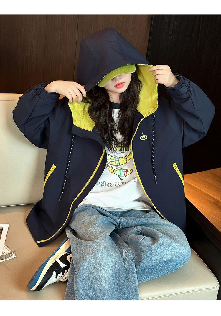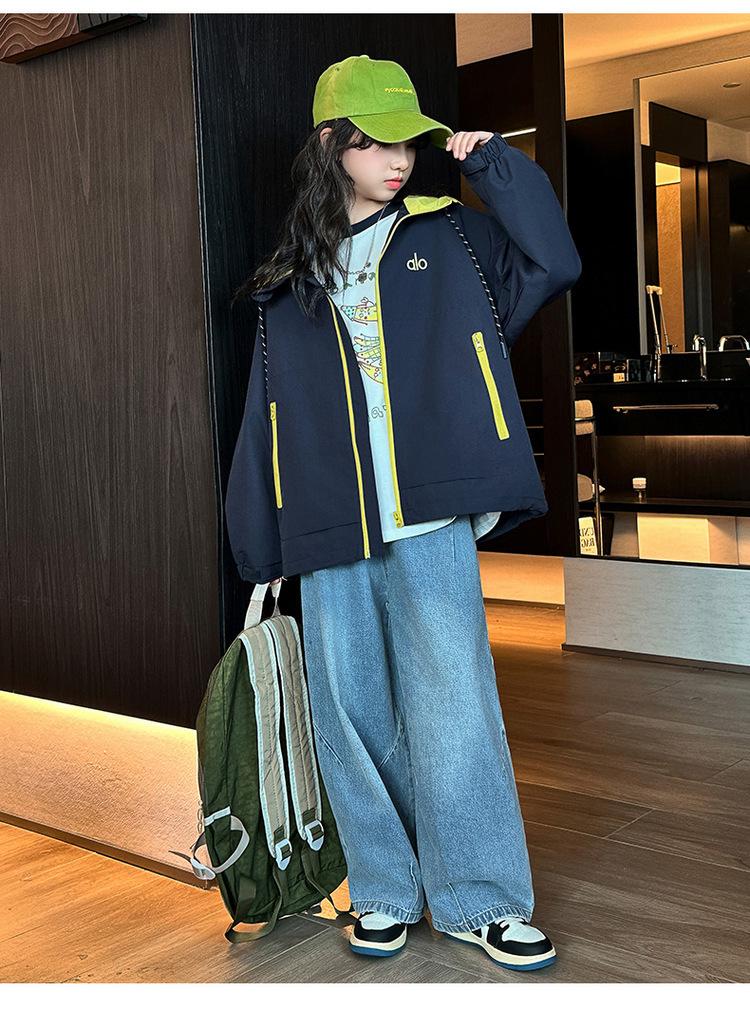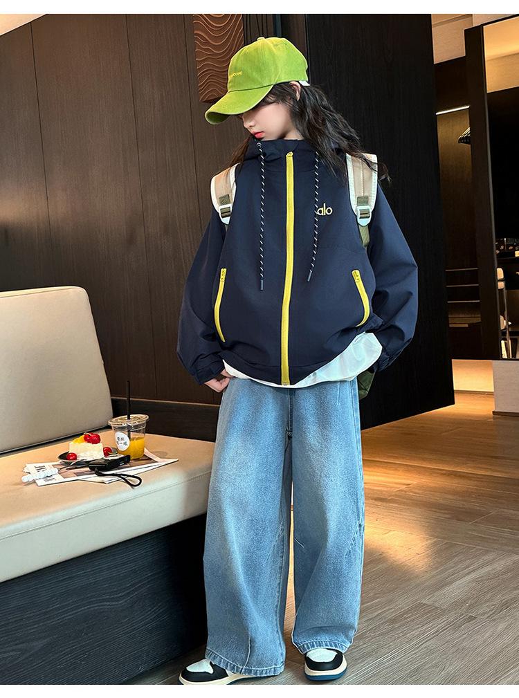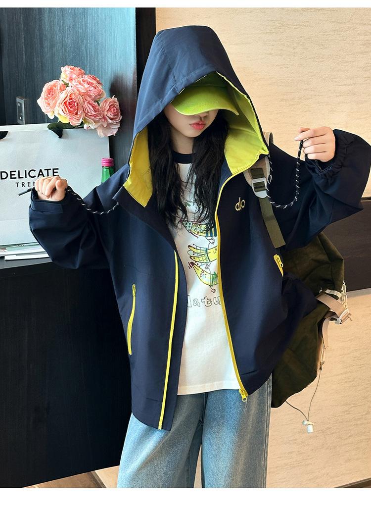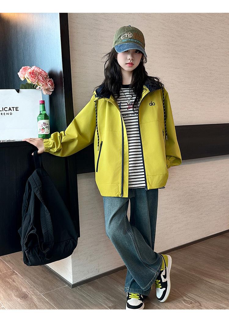 Chaqueta para Niñas Estilo Primavera y Otoño 2025 Nueva Moda Infantil Rompevientos con Capucha para Otoño 10 Niños Medianos y Grandes Top Casual