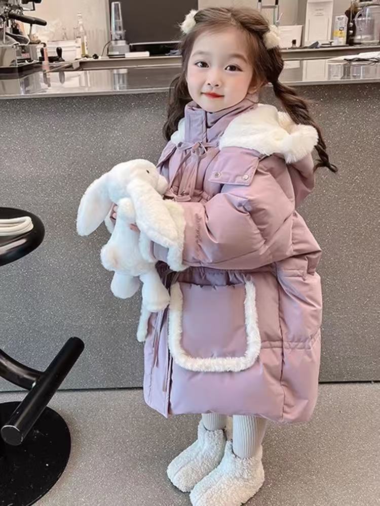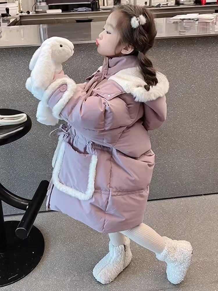 Abrigo de Algodón para Niñas Ropa de Abrigo Invierno Nueva Moda Estilo Coreano Chaqueta Acolchada de Algodón Gruesa y Cálida para Niñas Chaqueta Acolchada de Algodón de Longitud Media Invierno